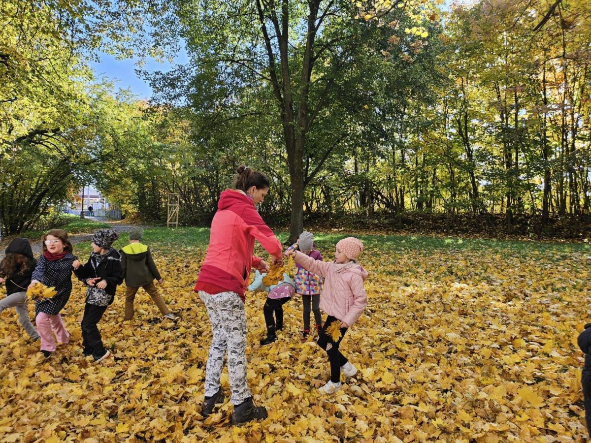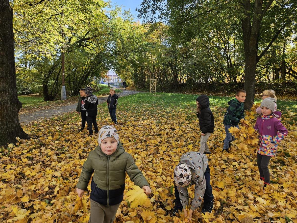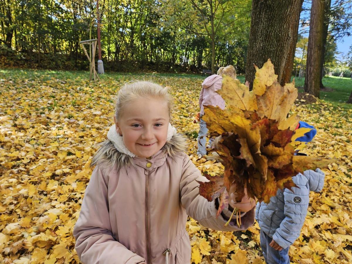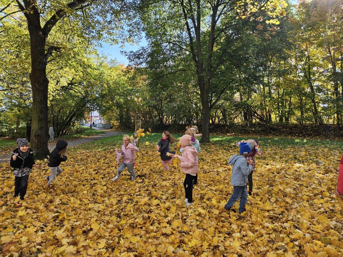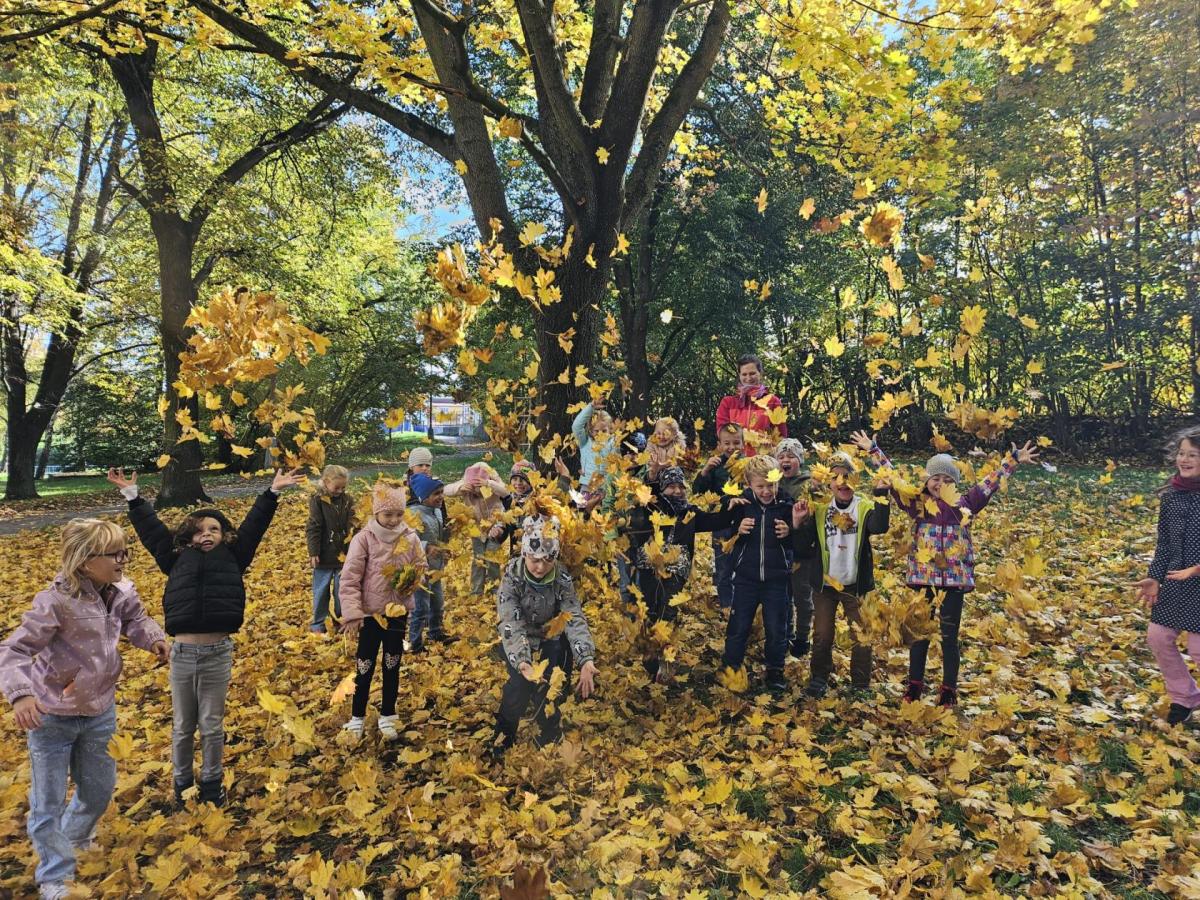 Dnes jsme o prvouce šli do parku, sbírali a pojmenovávali listy, stromy, stavěli domečky z přírodnin a užívali si podzimních barev.