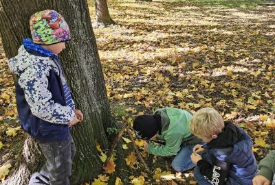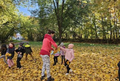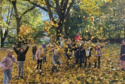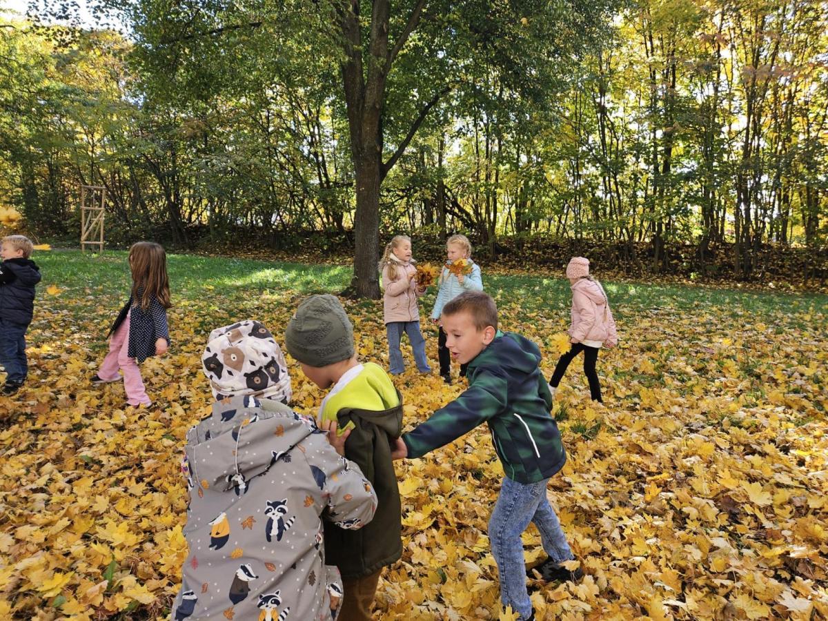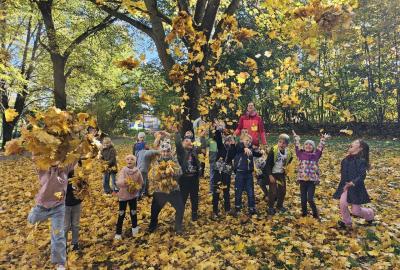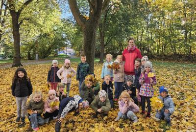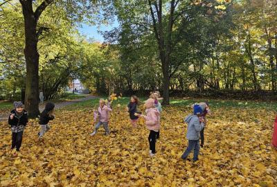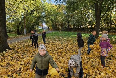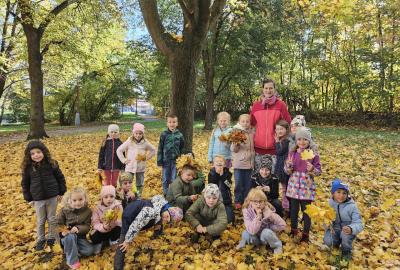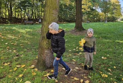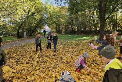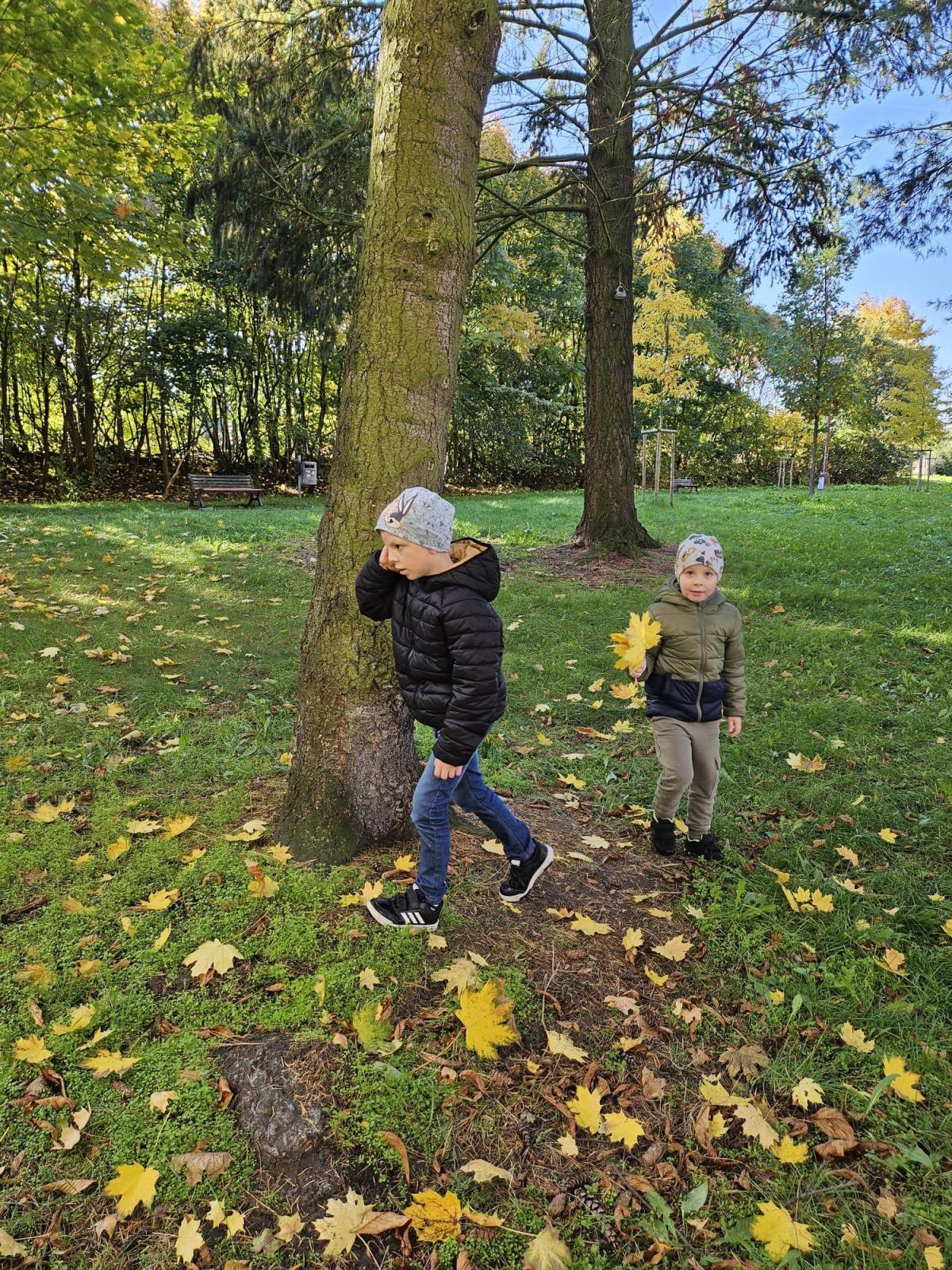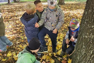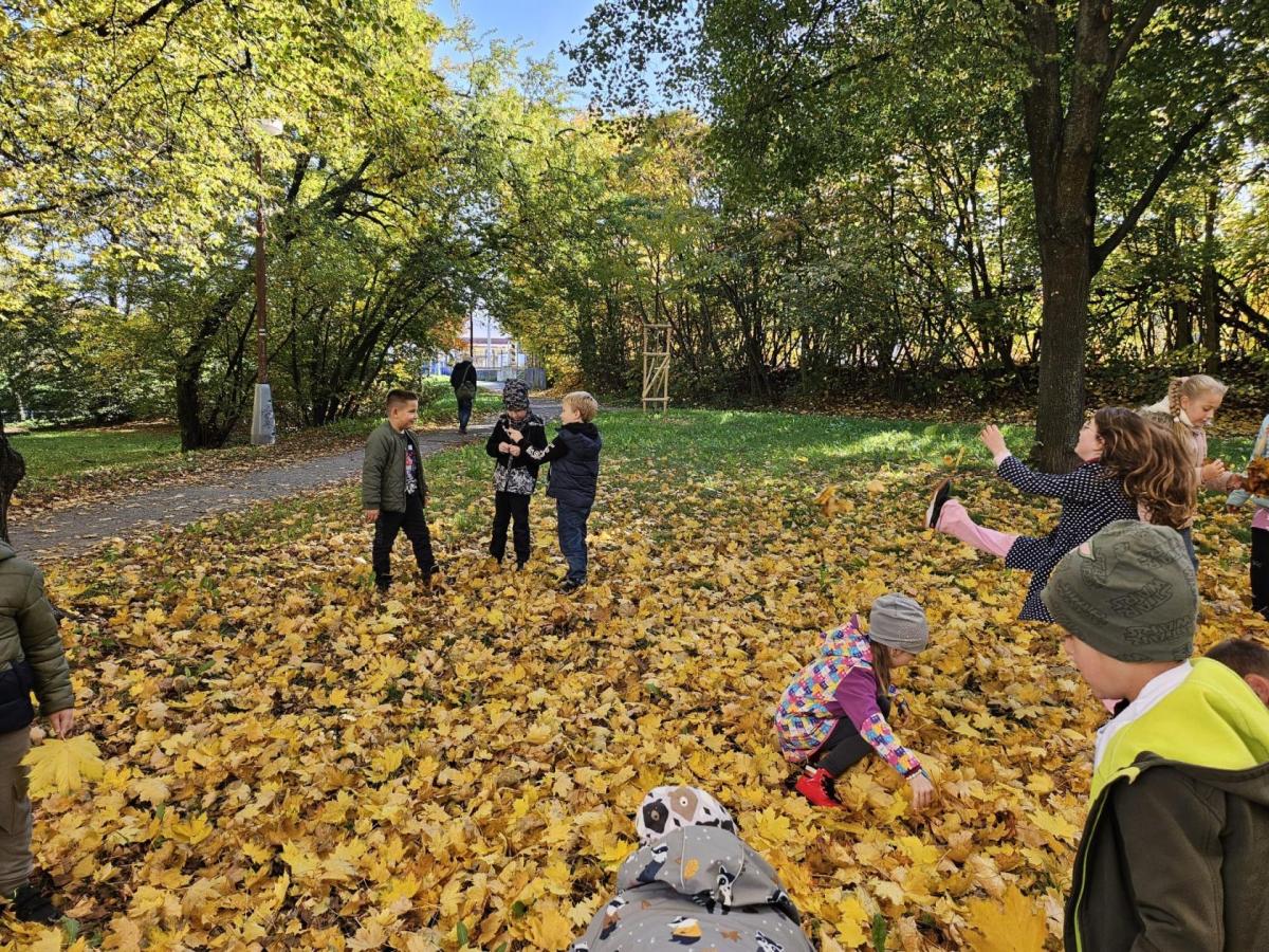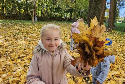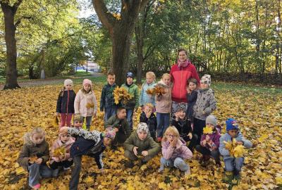 Dnes jsme o prvouce šli do parku, sbírali a pojmenovávali listy, stromy, stavěli domečky z přírodnin a užívali si podzimních barev.