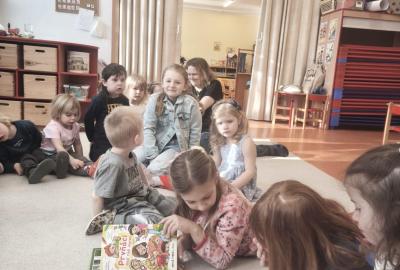Naše děvčátka - Mia, Štěpánka a Eliška šly v pátek číst dětem do školky, aby předškoláčkům ukázaly, co všechno už se naučily a co znají.