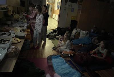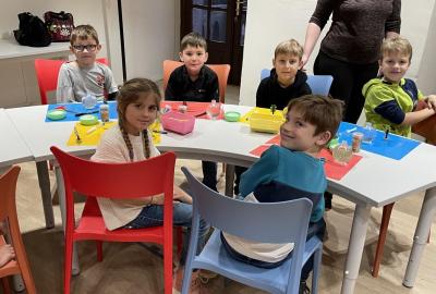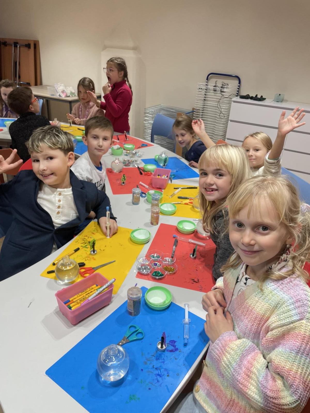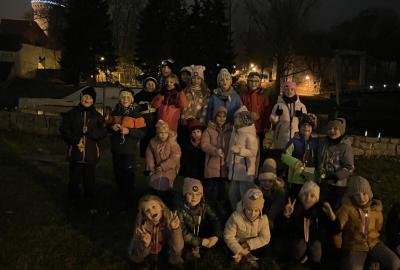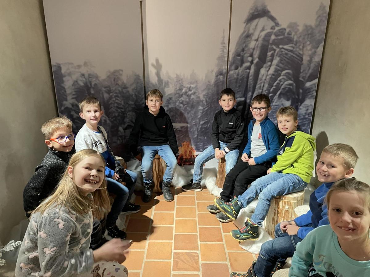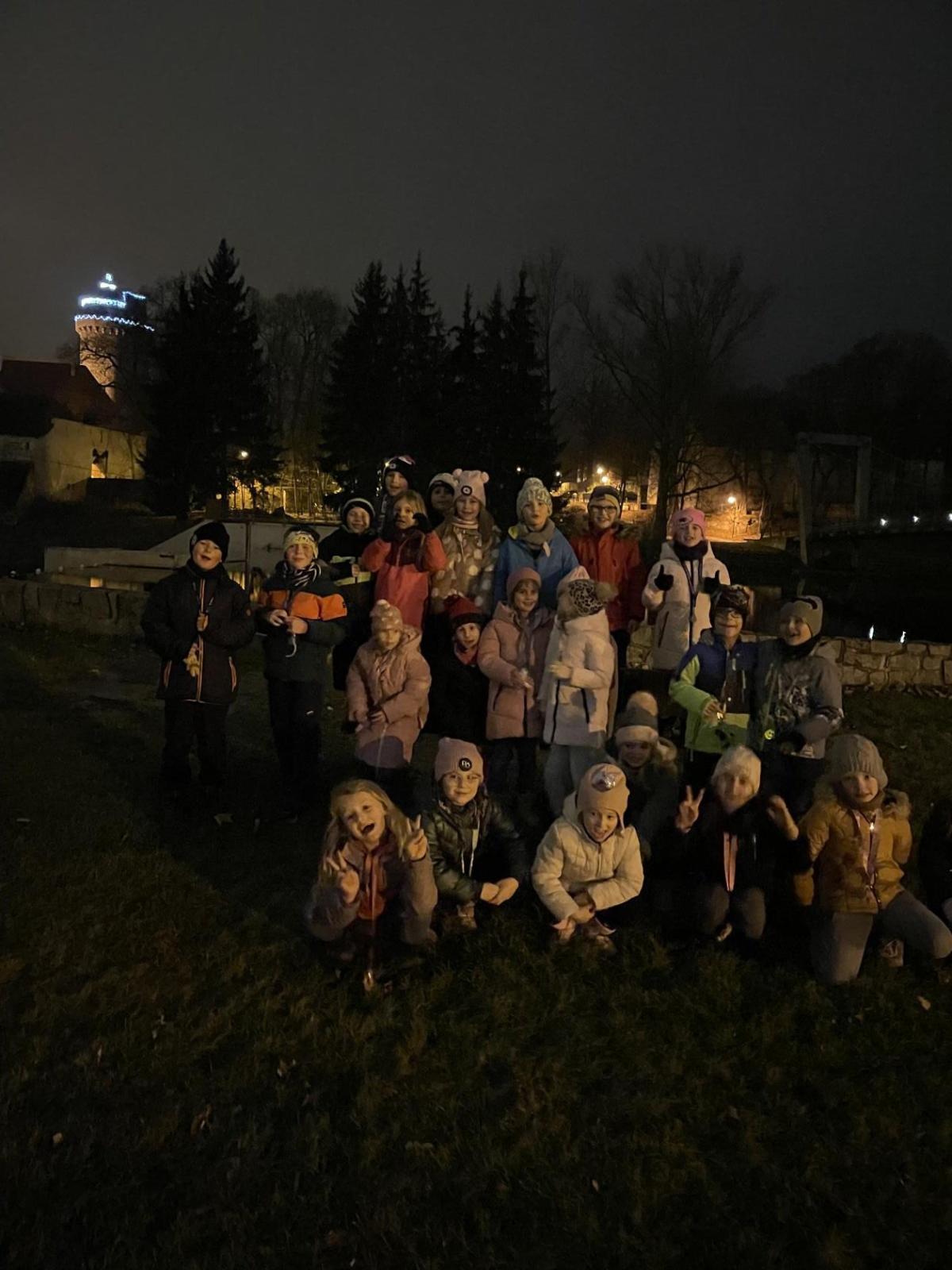 Odpoledne jsme si připravili třídu na spaní, na přední lavice dali naše jídelní all inclusive - mamky jsou opravdu šikovné :) a tvořili dárek pro rodiče. K večeru jsme se šli projít obdivovat vánoční světelnou výzdobu do města i na hrad. Hrad jsme zahnali Boom pizzou dle vlastního výběru. A protože energie bylo pořád dost, šli jsme se vyřádit do gymnastického sálu a někdo na počítače.
