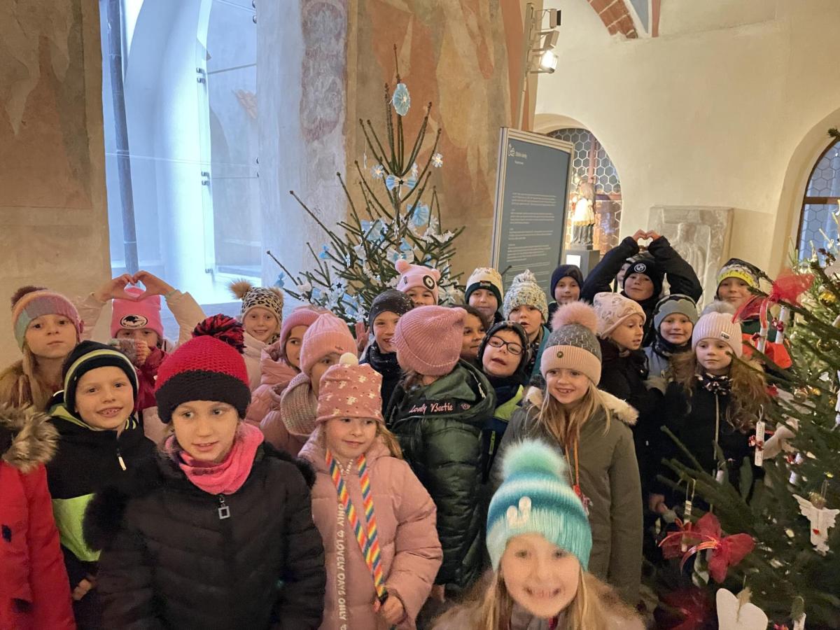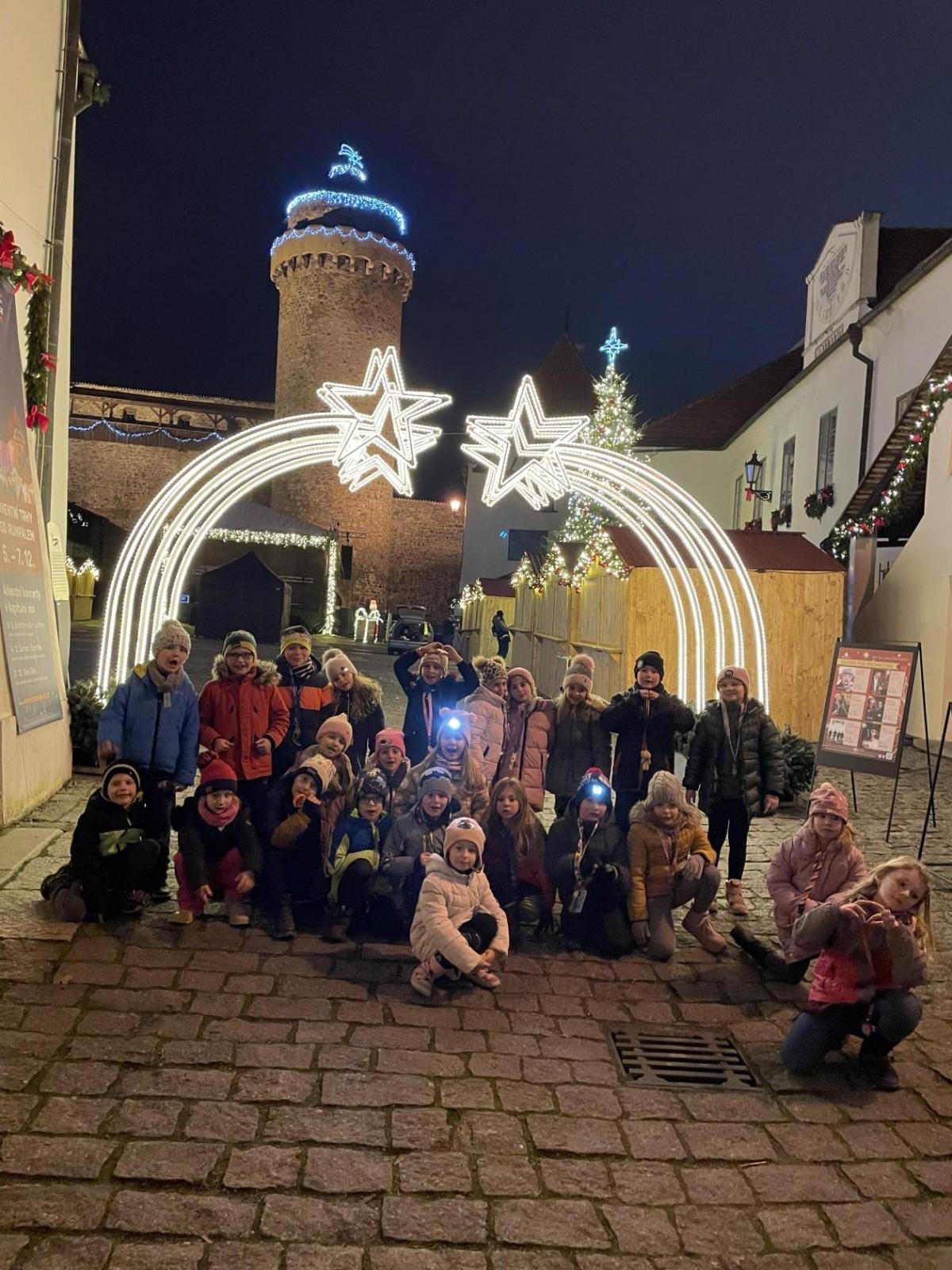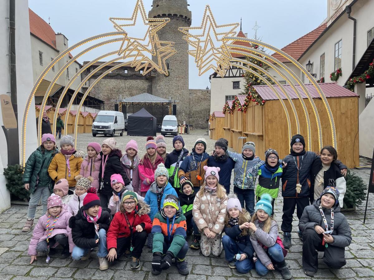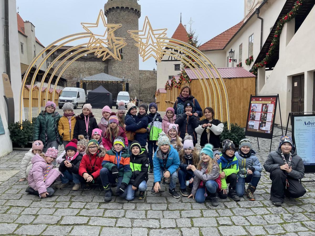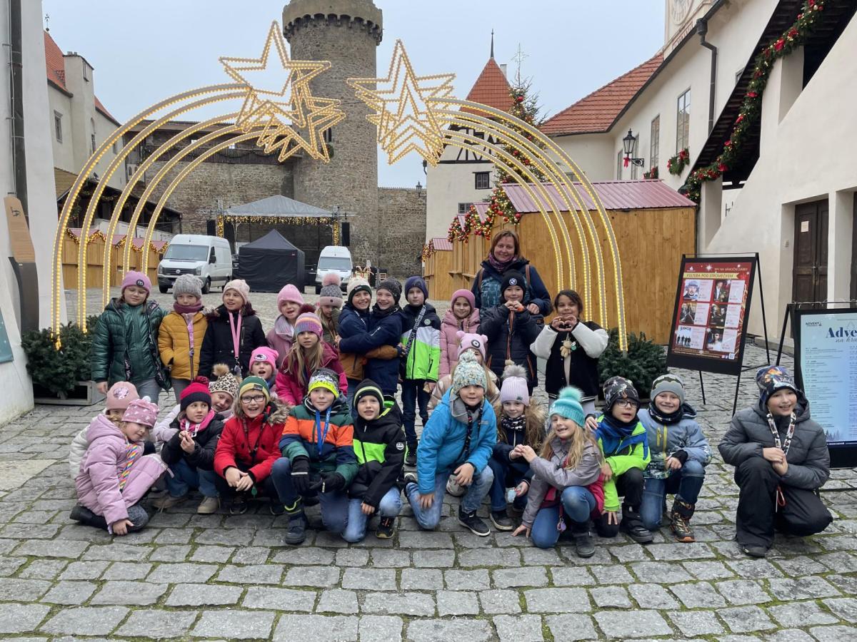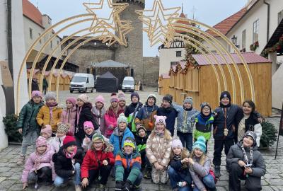 Šli jsme do dílničky na hrad, abychom si vyrobili krásná těžítka, navštívili jsme pohádkovou výstavu, Betlém a stromky zdobené školami a školkami. Na pohádkové výstavě jsme si hráli s kulisami z pohádky Tři bratři, Kouzla králů, Šípková Růženka. Na výstavě stromků jsme hravě našli náš školní stromek.