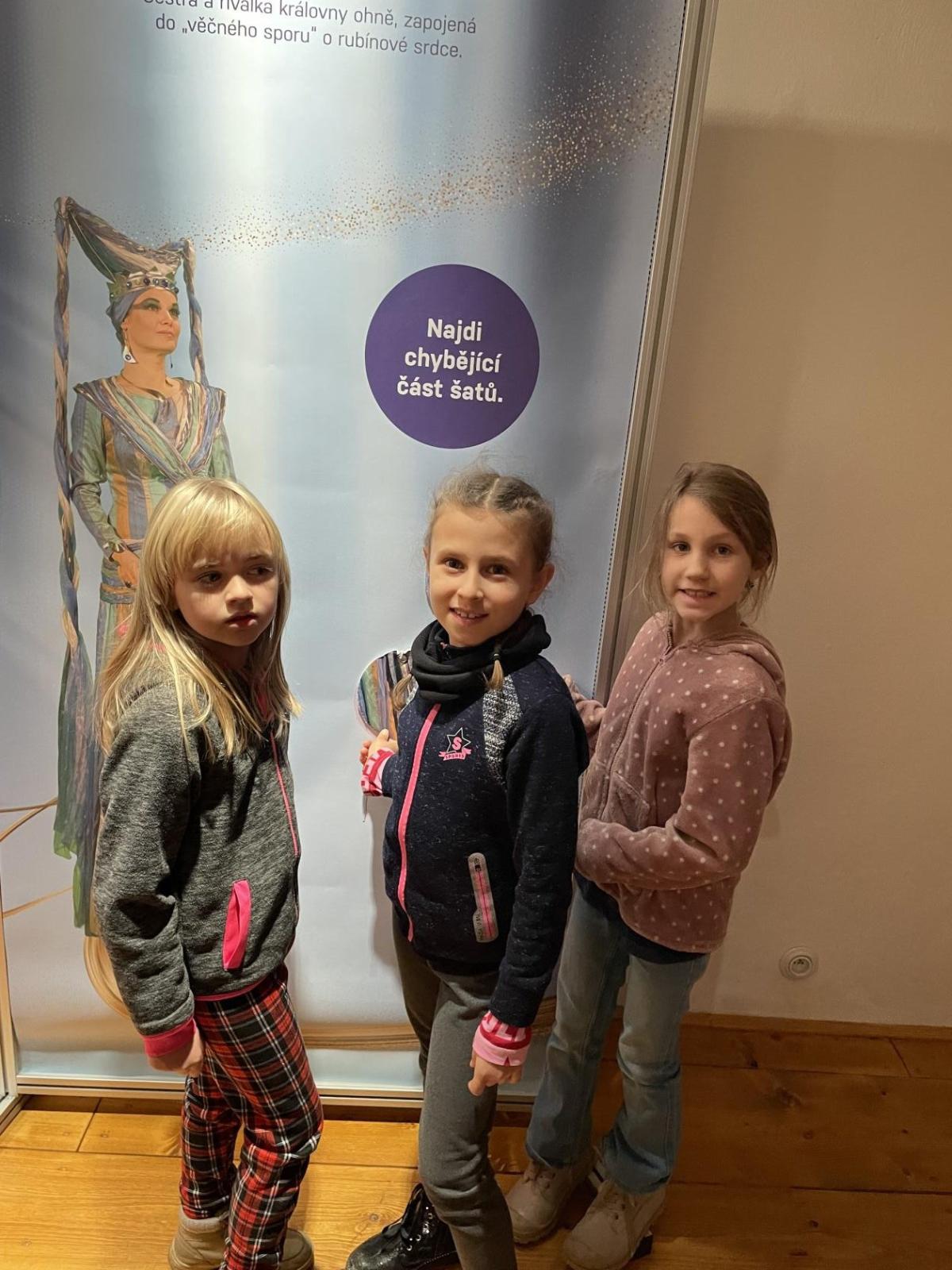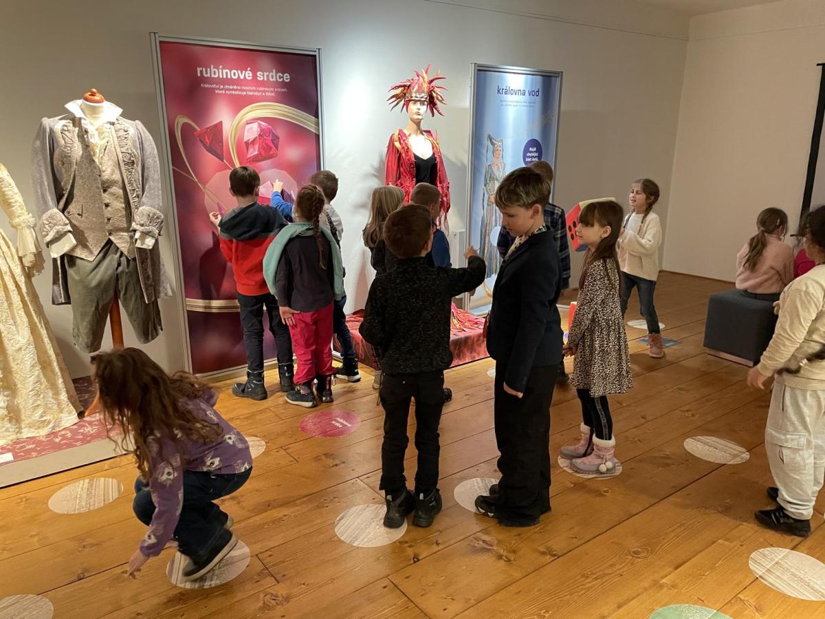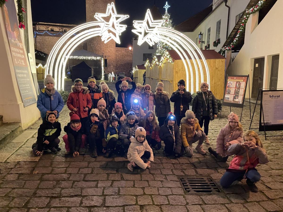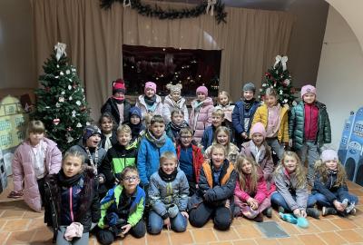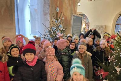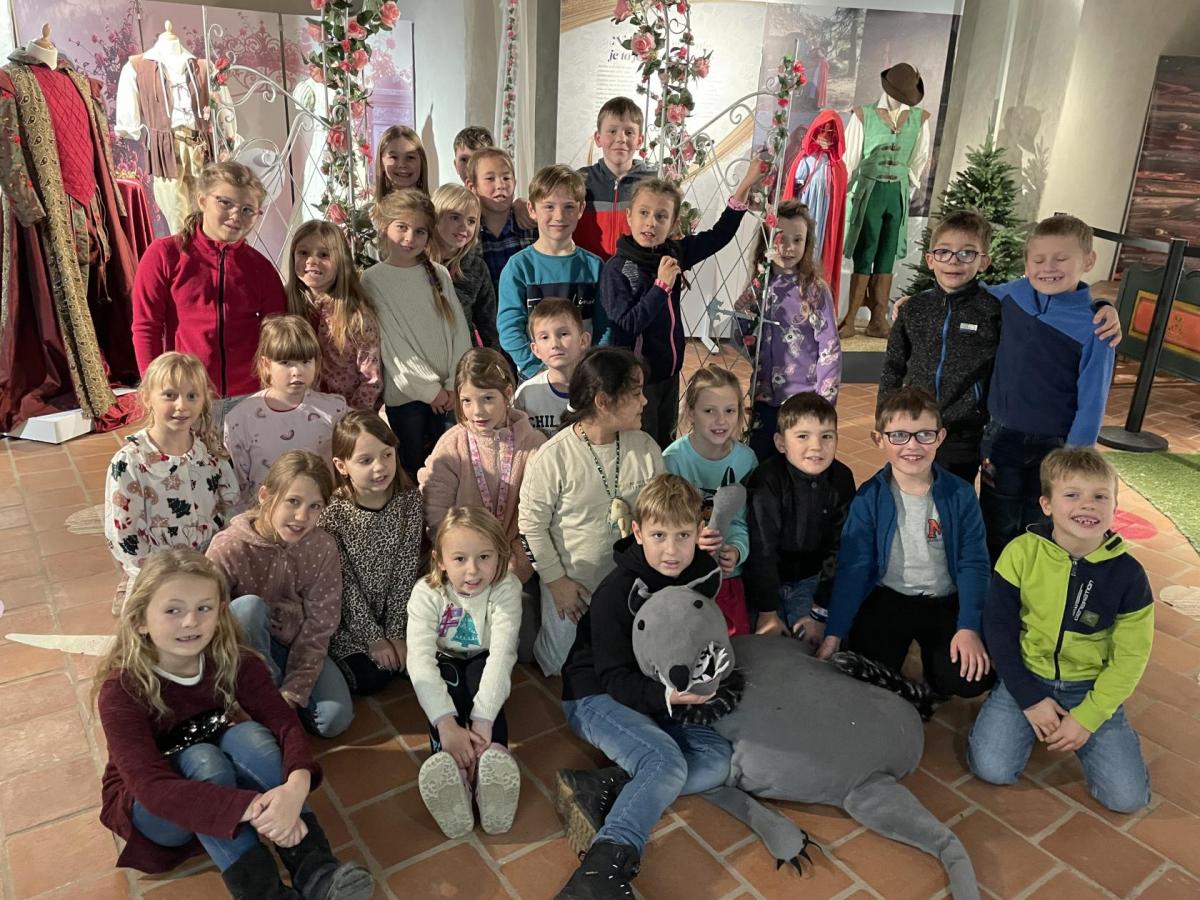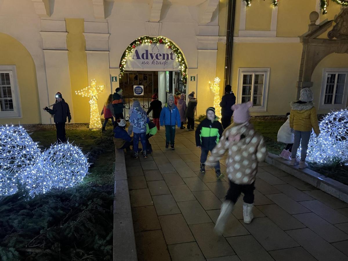 Šli jsme do dílničky na hrad, abychom si vyrobili krásná těžítka, navštívili jsme pohádkovou výstavu, Betlém a stromky zdobené školami a školkami. Na pohádkové výstavě jsme si hráli s kulisami z pohádky Tři bratři, Kouzla králů, Šípková Růženka. Na výstavě stromků jsme hravě našli náš školní stromek.