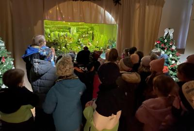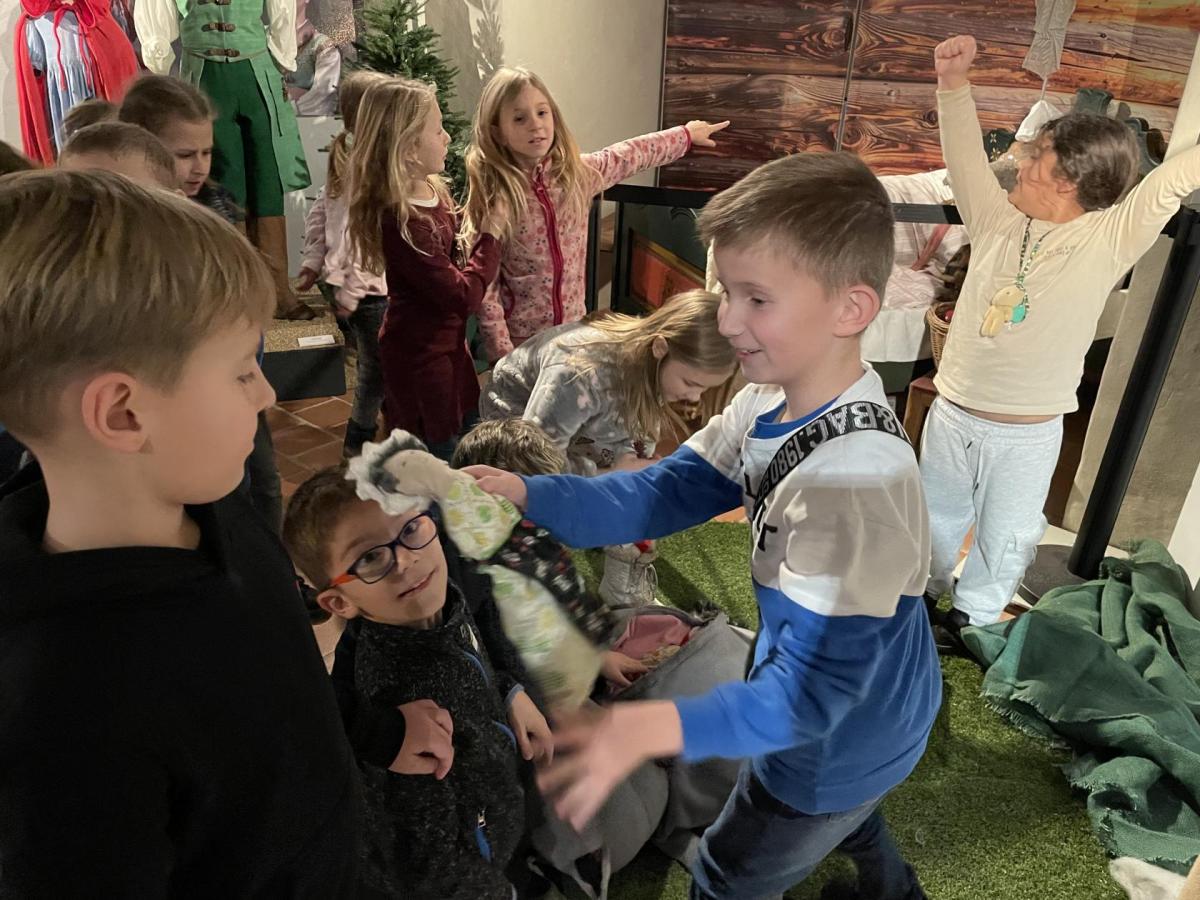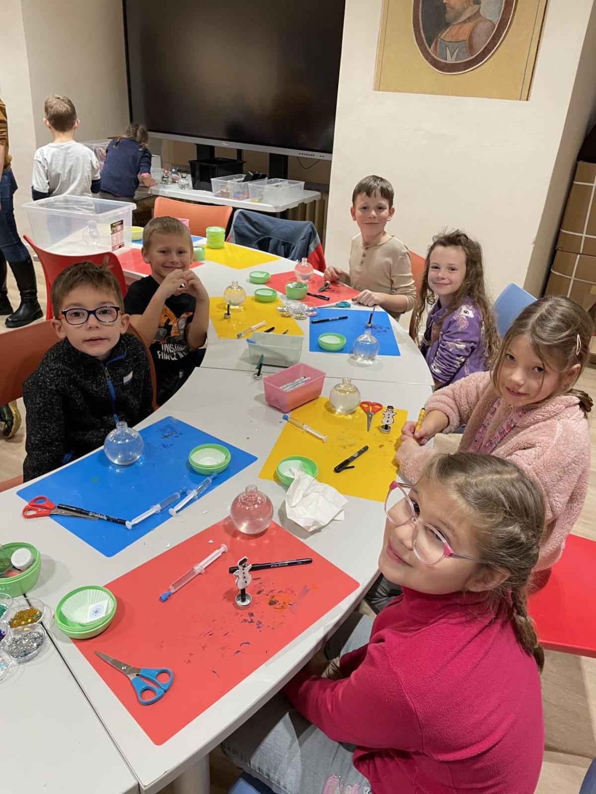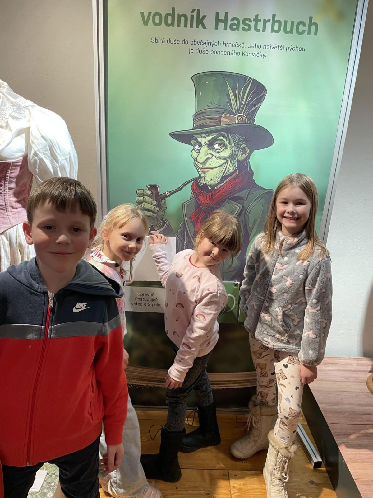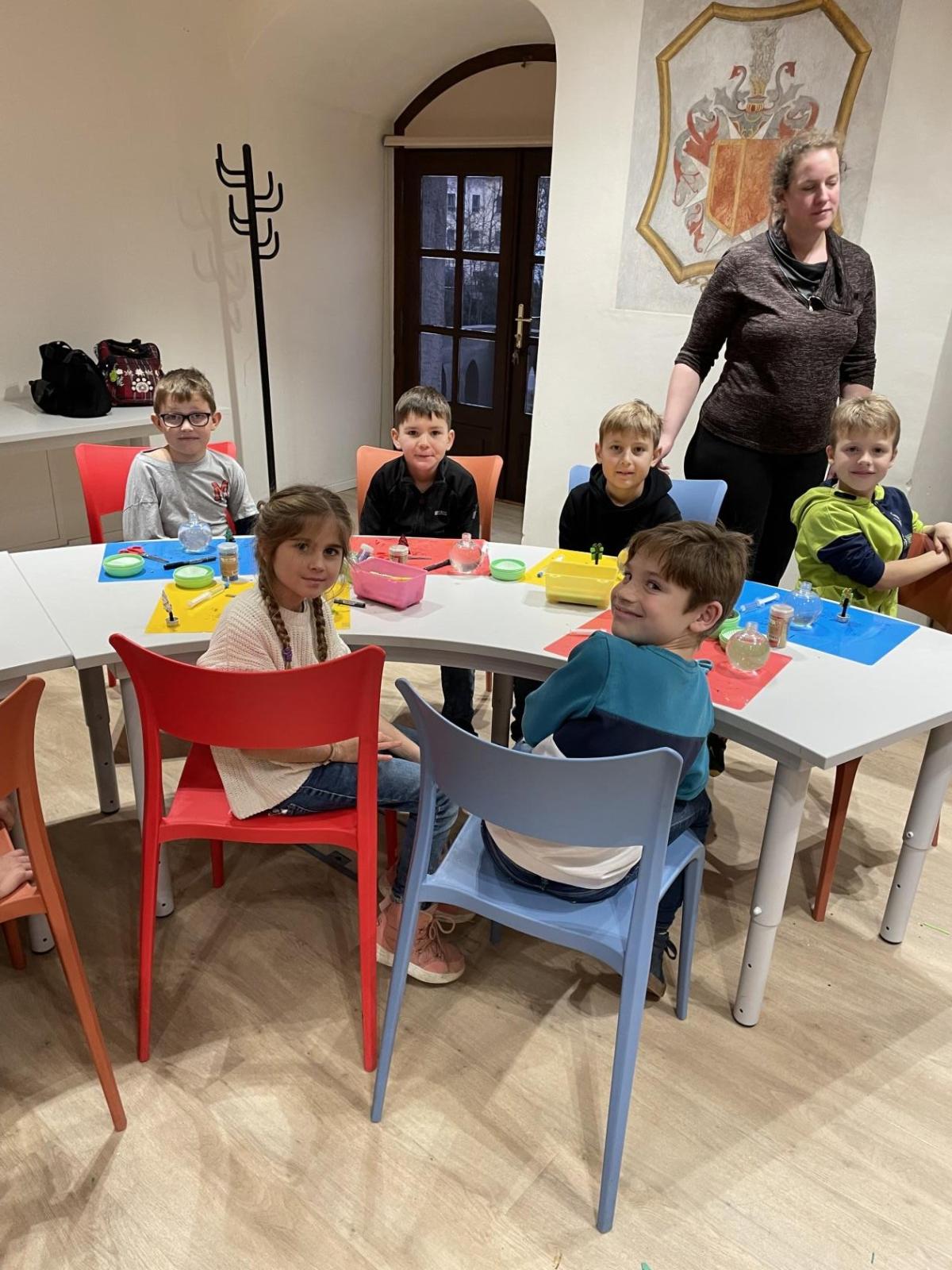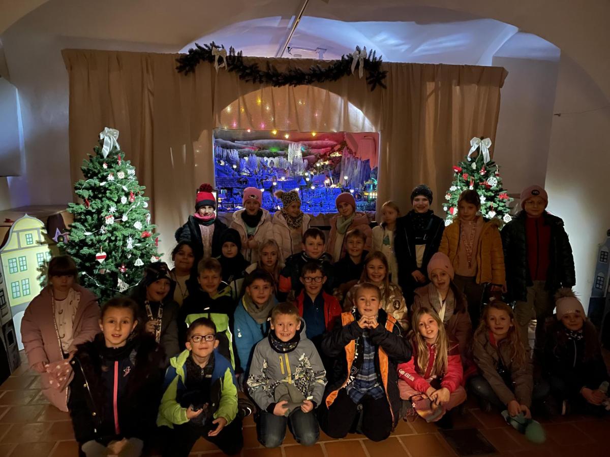 Šli jsme do dílničky na hrad, abychom si vyrobili krásná těžítka, navštívili jsme pohádkovou výstavu, Betlém a stromky zdobené školami a školkami. Na pohádkové výstavě jsme si hráli s kulisami z pohádky Tři bratři, Kouzla králů, Šípková Růženka. Na výstavě stromků jsme hravě našli náš školní stromek.