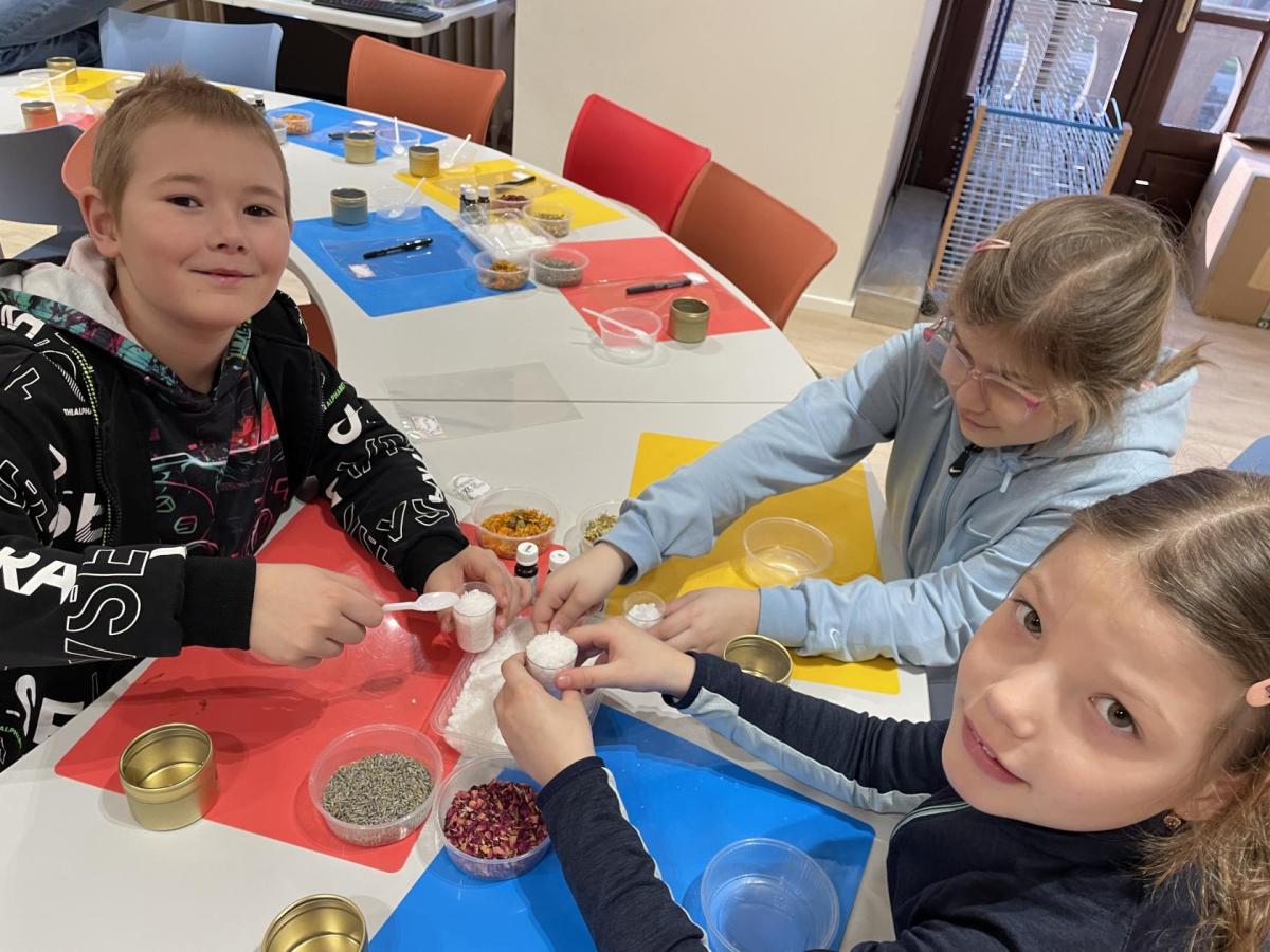 Vyráběli jsme koupelovou sůl, do které jsme dle vlastního výběru dali bylinky a vůni. Potom jsme si vybarvili a vystřihli vlaštovku, která je příslibem jara. Na velikonoční výstavě jsme si prohlédli výzdobu, očichali bylinky, hledali motýlky, kytičky....Zkrátka zase jsem si to užili.