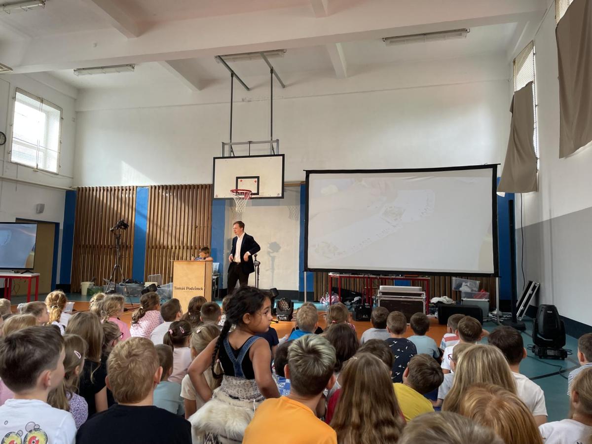 Do školy přijel kouzelník - Tomáš Podzimek, který se zúčastnil i Česko Slovensko má talent. Jeho kouzelnický program byl prokládán cestopisnými zážitky a obrázky.
