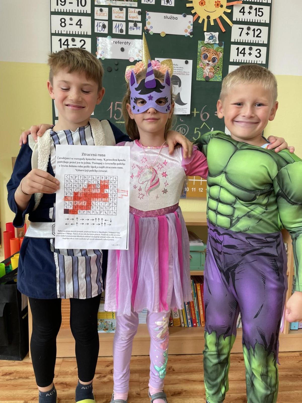 Na konci září jsme si užili 1. pohádkový den. Jelikož jsem byla tentokrát pomocnicí kouzelnice, tak jsme prvně chodili po stopách a runách. Na základě dobré odpovědi jsme získali písmena na důležité zaklínadlo.