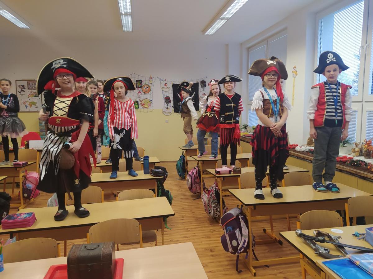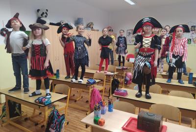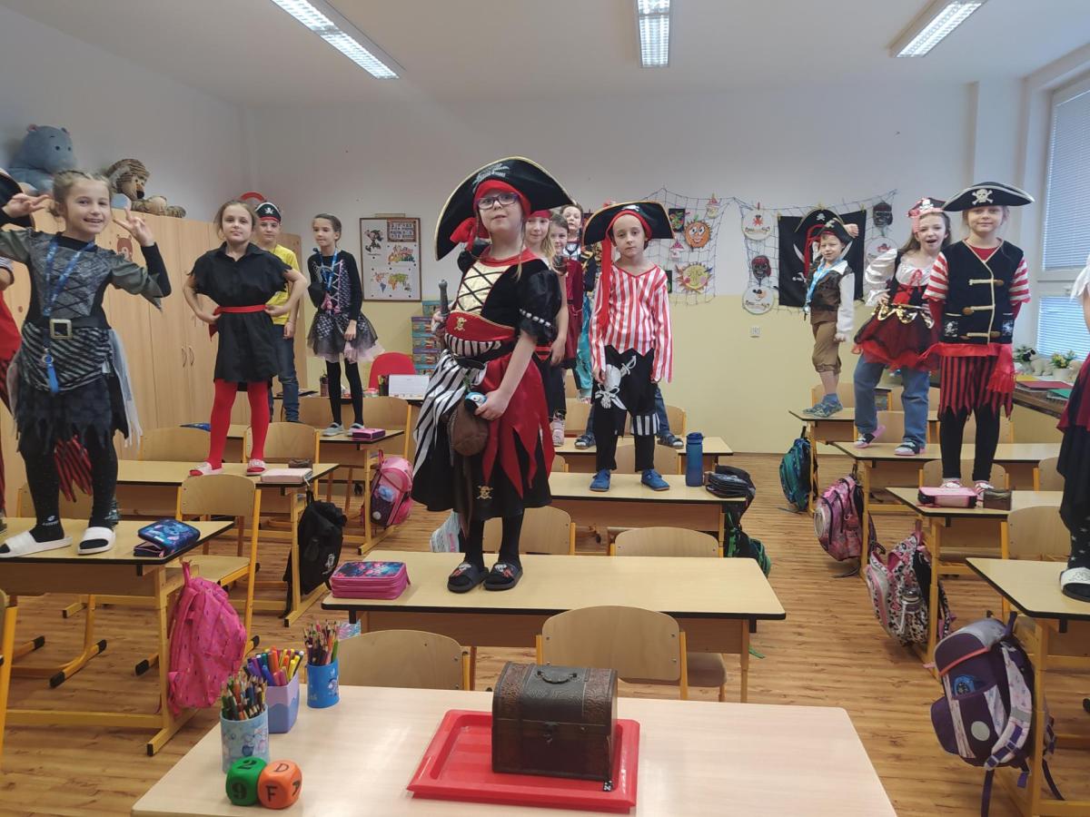 V pondělí 15. 12. 2025 se konal PIRÁTSKÝ DEN č. 10. Piráti bojovali v tělocvičně i ve třídě, vyplnili listiny, prošli pirátskou stezku, hráli v kostky atd. Měli jsme hezký den.