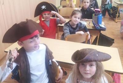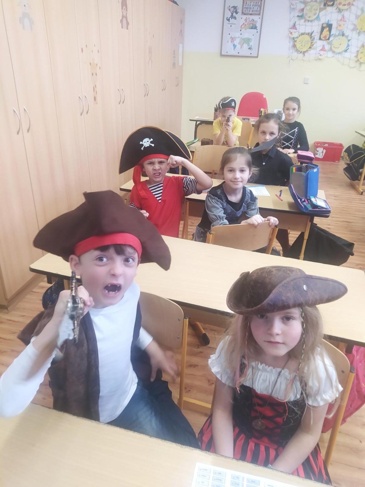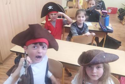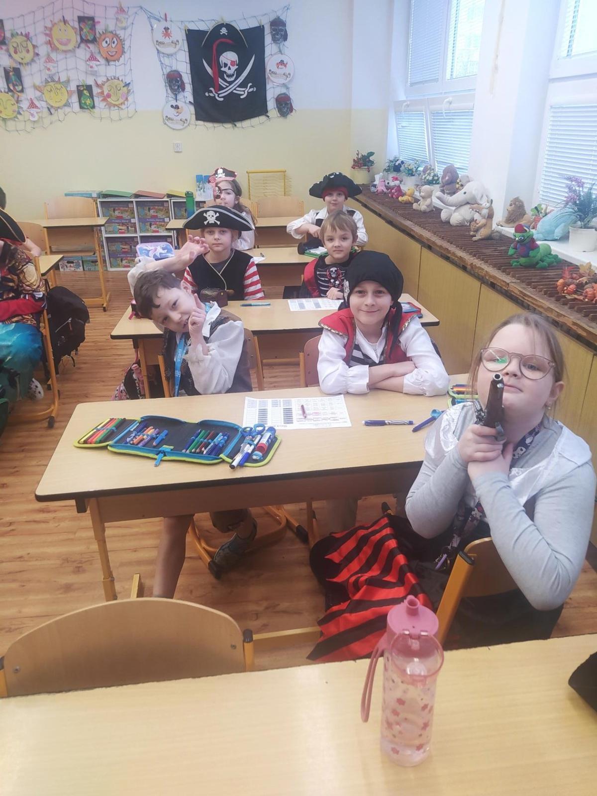 V pondělí 9. 2. 2026 proběhl v naší třídě - PIRÁTSKÝ DEN č. 11. Piráti opět srdnatě bojovali v mnoha disciplínách. (pirátské listiny, hra v malé kostky, hra ve velké kostky, běhací soutěže, pirátská stezka atd.)