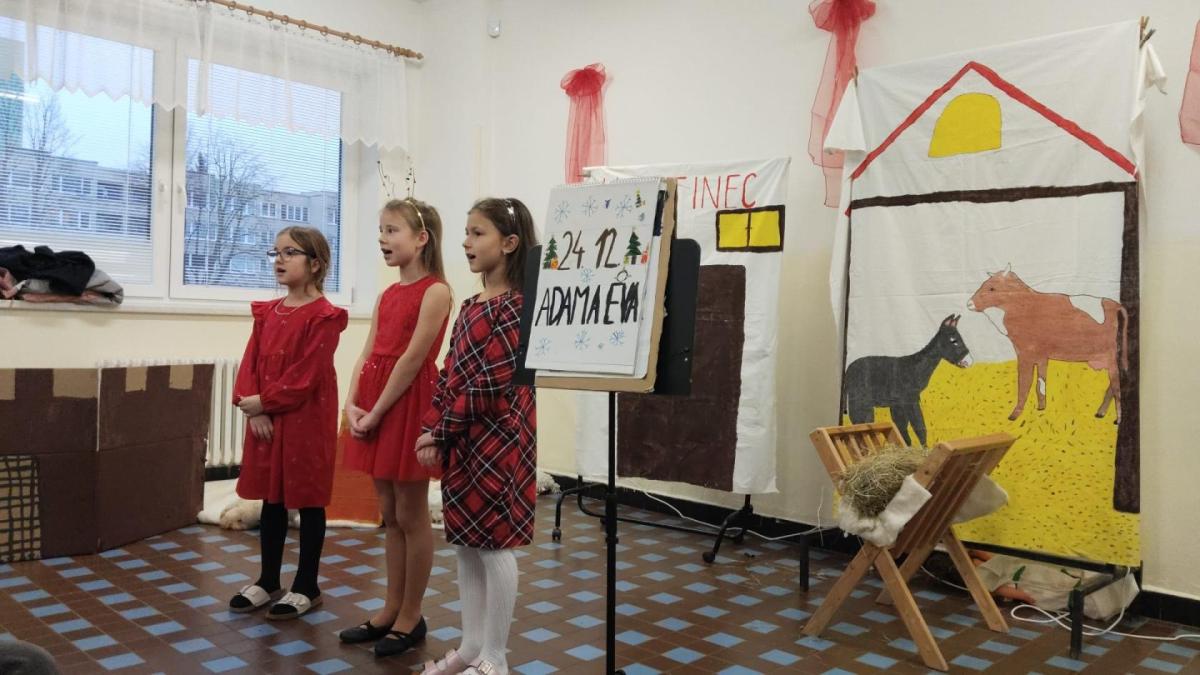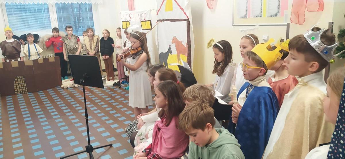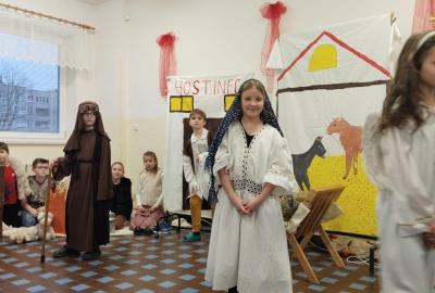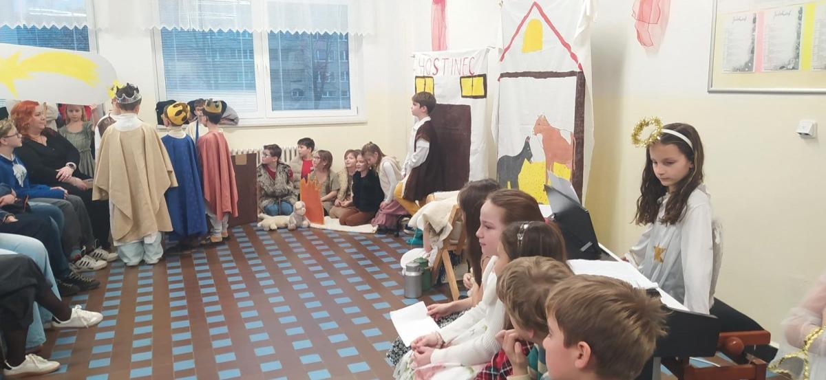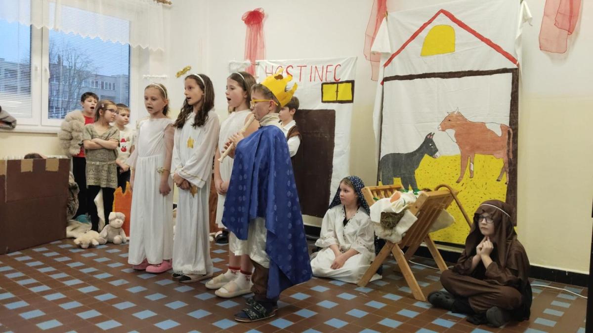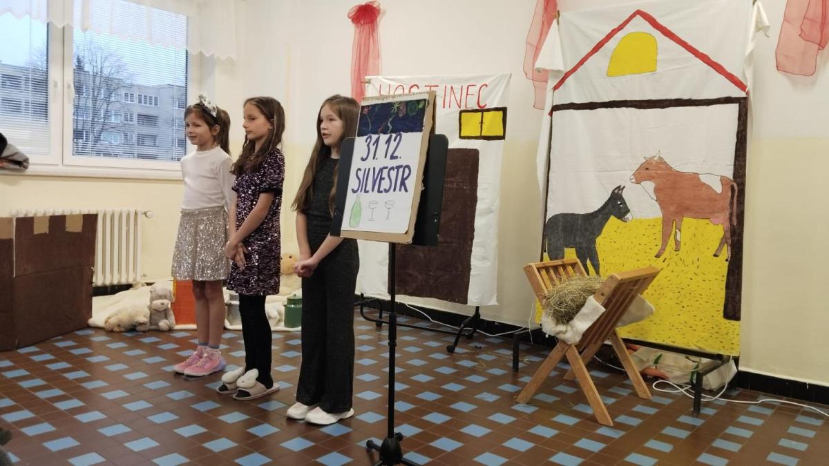 Na vánoční besídku se všichni těšili. Děti předvedly své řečnické umění. Nechybělo divadlo o narození Ježíška a díky kamarádům, kteří nás doprovodili na hudební nástroje se nám povedly i koledy. Děkujeme četnému publiku za návštěvu.