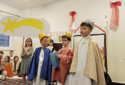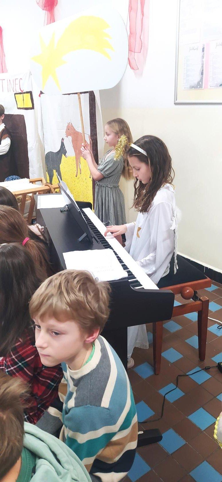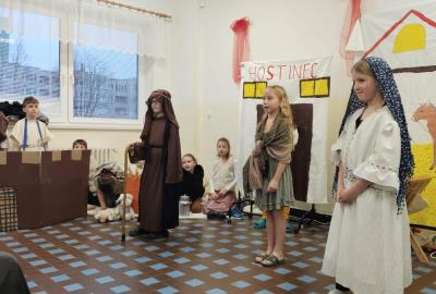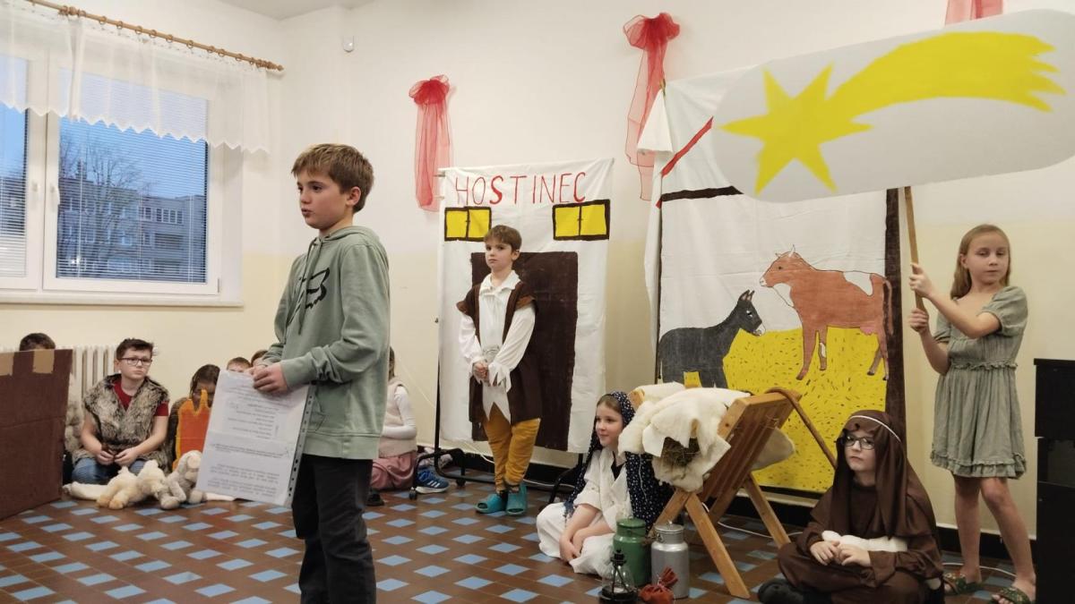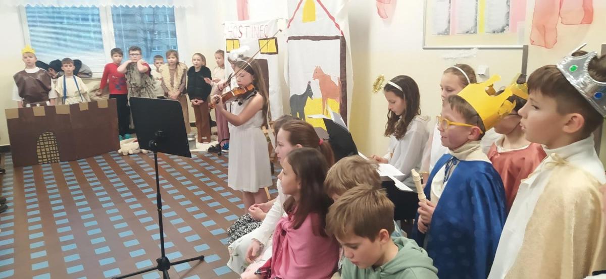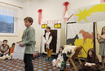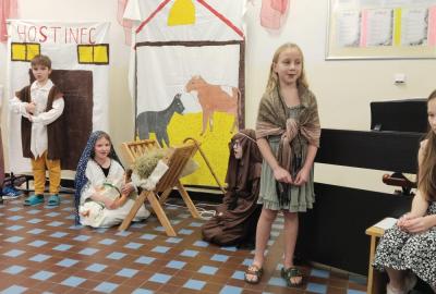 Na vánoční besídku se všichni těšili. Děti předvedly své řečnické umění. Nechybělo divadlo o narození Ježíška a díky kamarádům, kteří nás doprovodili na hudební nástroje se nám povedly i koledy. Děkujeme četnému publiku za návštěvu.