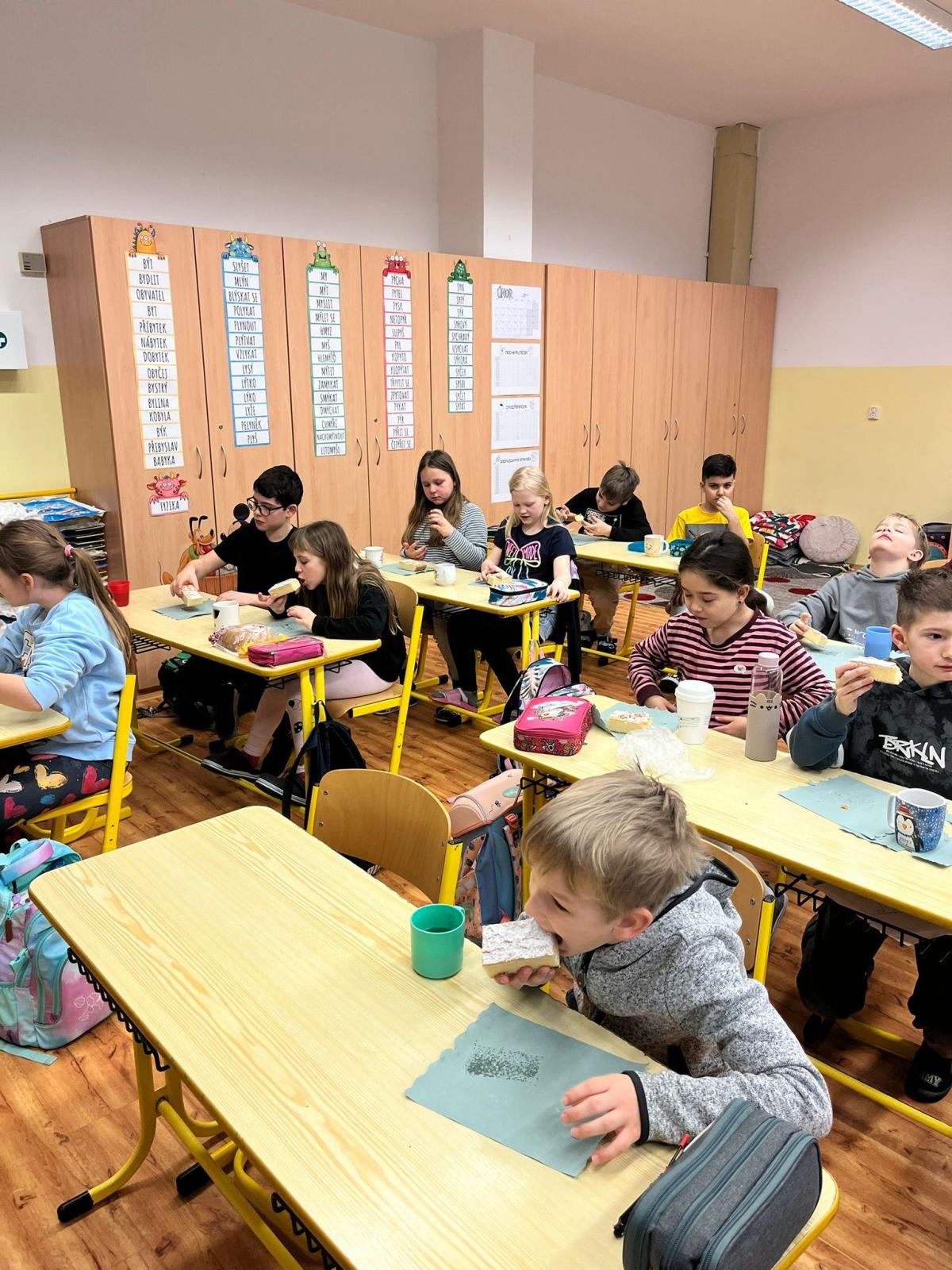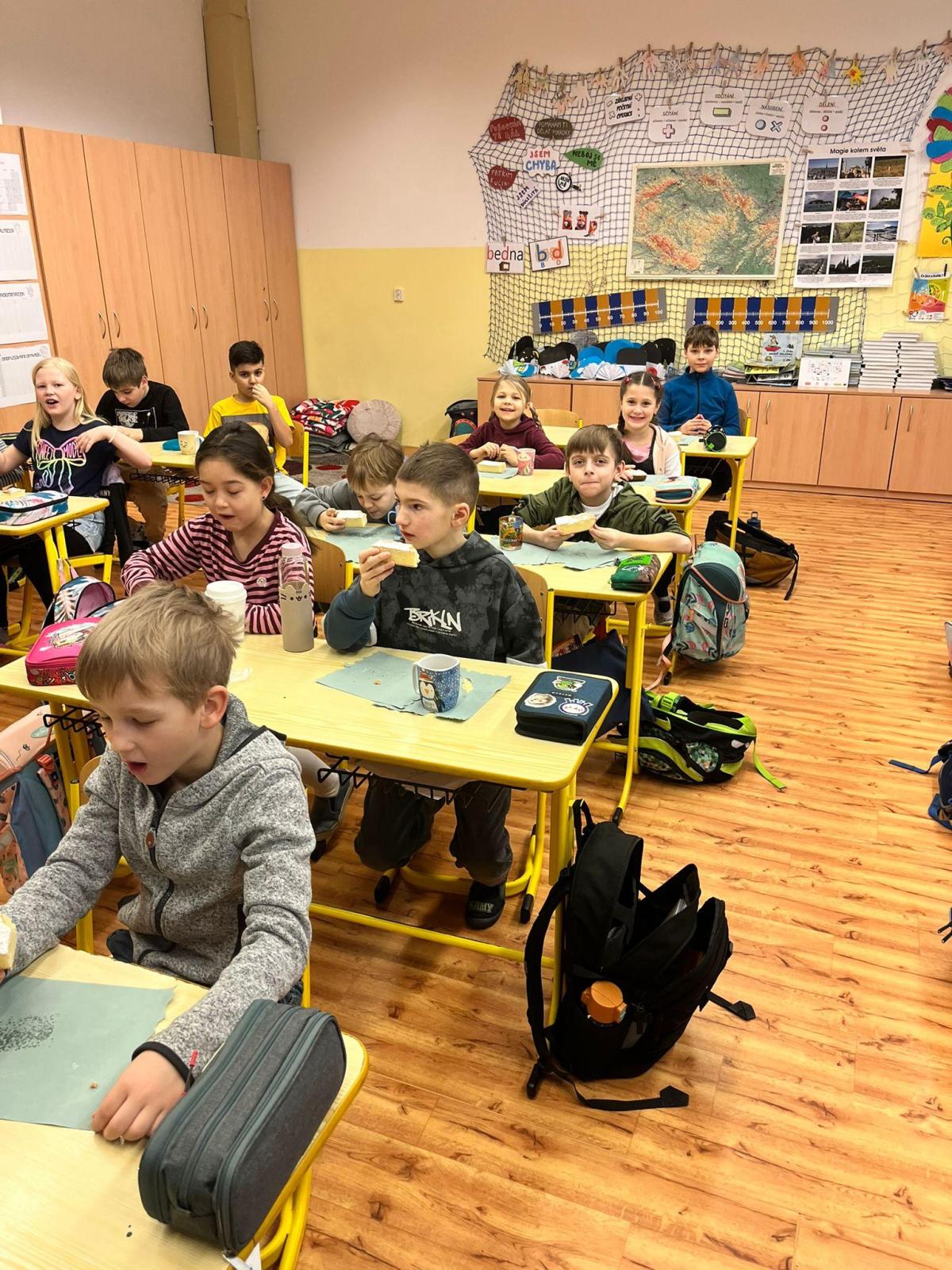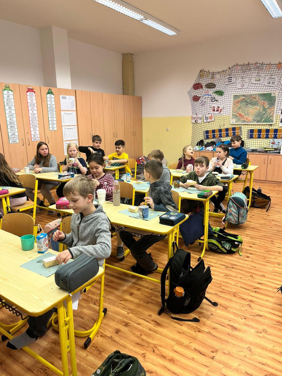 Ve čtvrtek 26. 2. probíhal na naší škole wellbeingový den. Pohodu nám pomohla nastartovat společná snídaně ve formě čaje / mléka a buchty, kterou pro nás připravily milé paní kuchařky. V dalších hodinách jsme vyučování prokládali hrami, tancem, pracovními listy, aktivitami na posílení pozitivních vztahů ve třídě a řízenou dětskou meditací (u které se někteří promeditovali až ke spánku). Byl to moc milý a příjemný den.