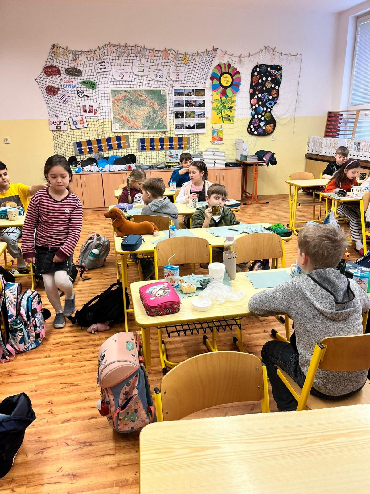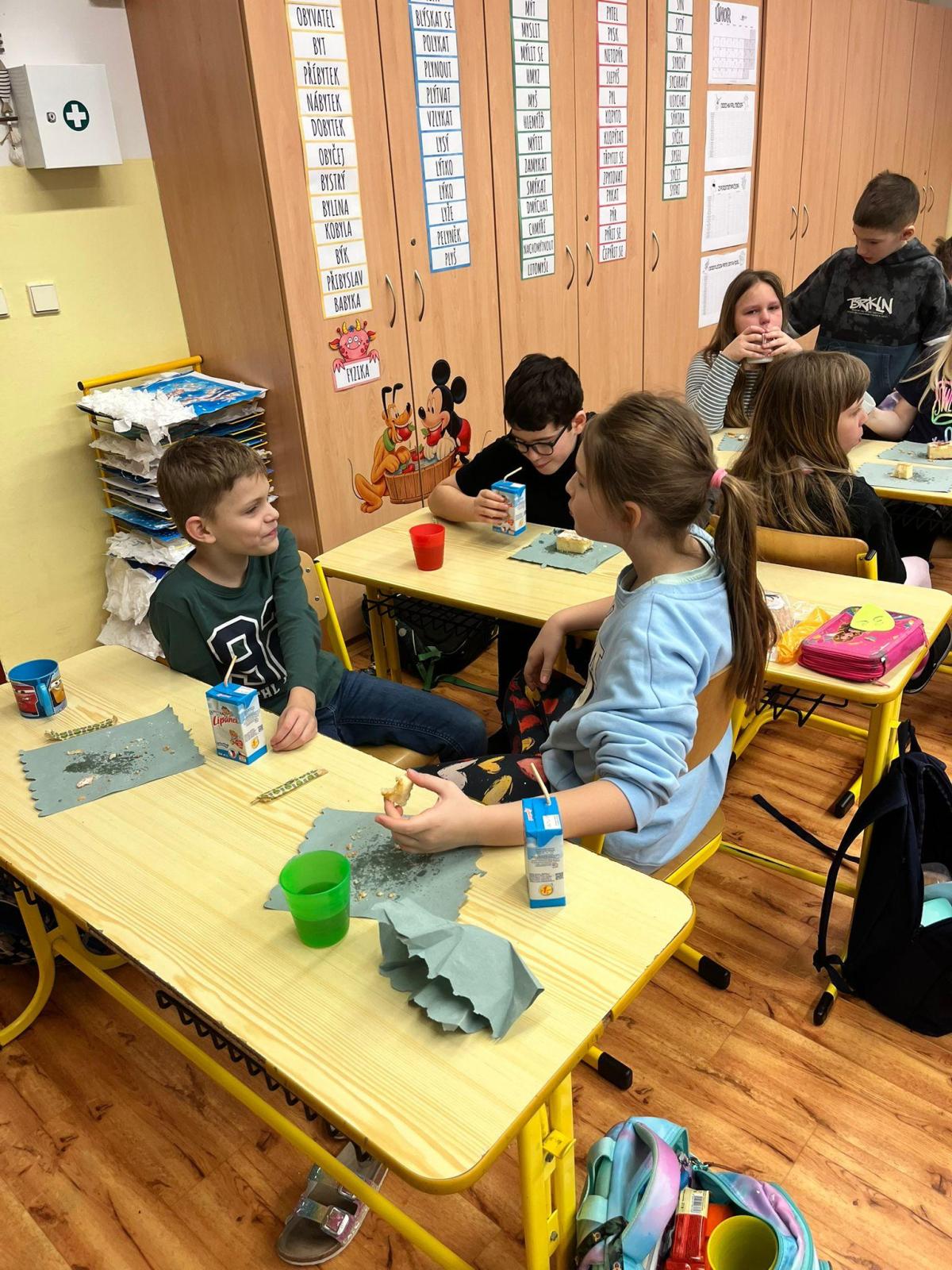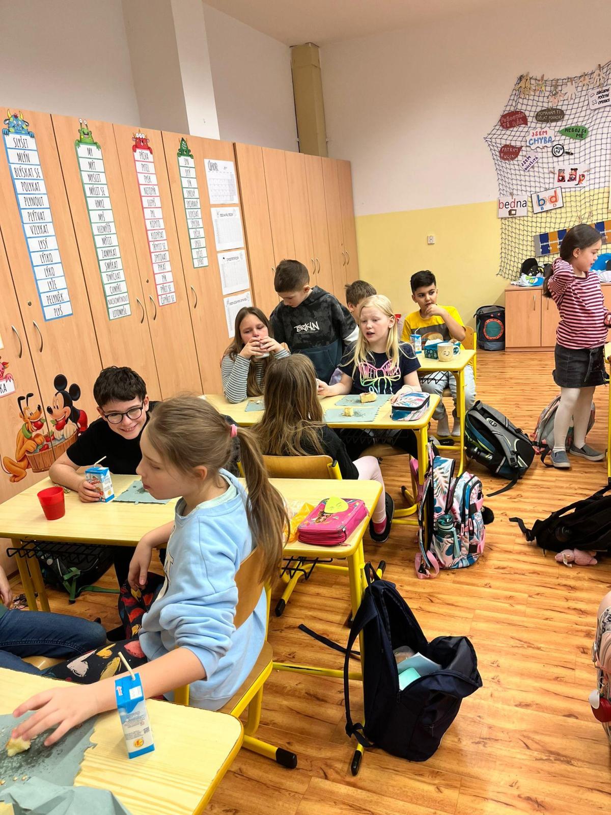 Ve čtvrtek 26. 2. probíhal na naší škole wellbeingový den. Pohodu nám pomohla nastartovat společná snídaně ve formě čaje / mléka a buchty, kterou pro nás připravily milé paní kuchařky. V dalších hodinách jsme vyučování prokládali hrami, tancem, pracovními listy, aktivitami na posílení pozitivních vztahů ve třídě a řízenou dětskou meditací (u které se někteří promeditovali až ke spánku). Byl to moc milý a příjemný den.