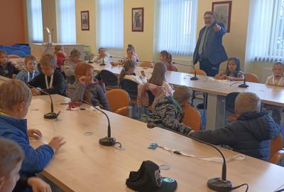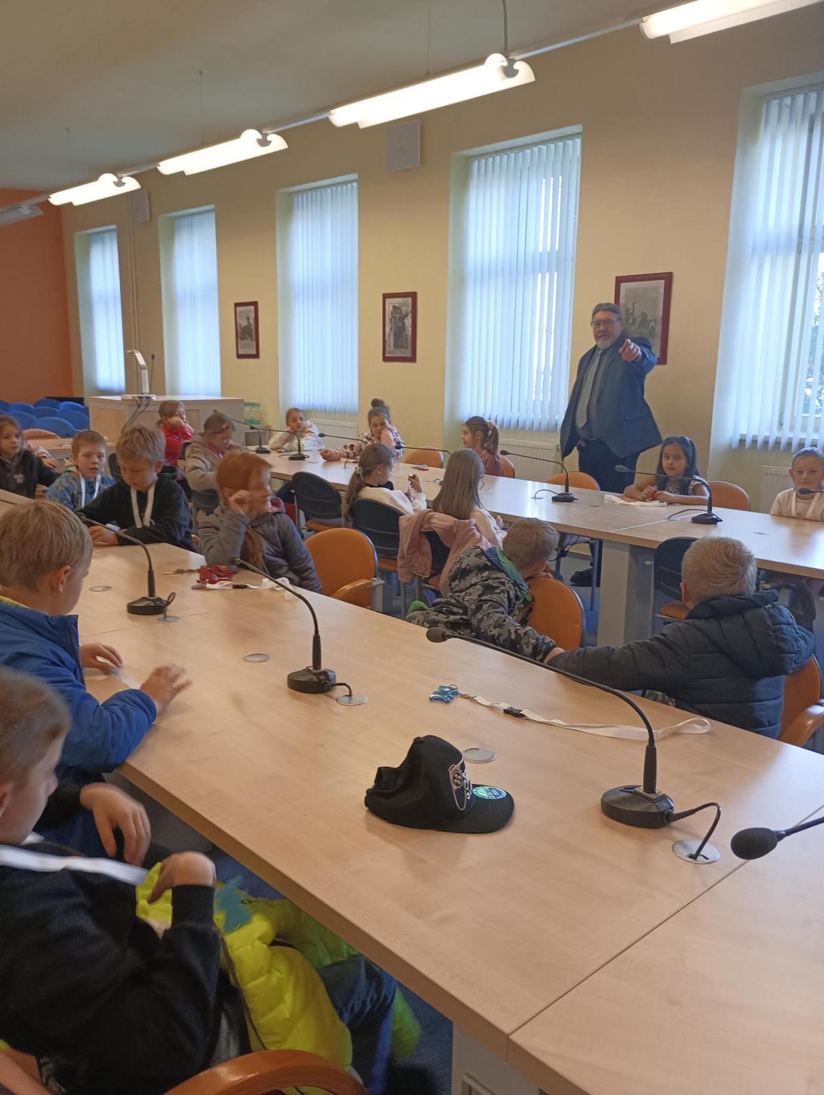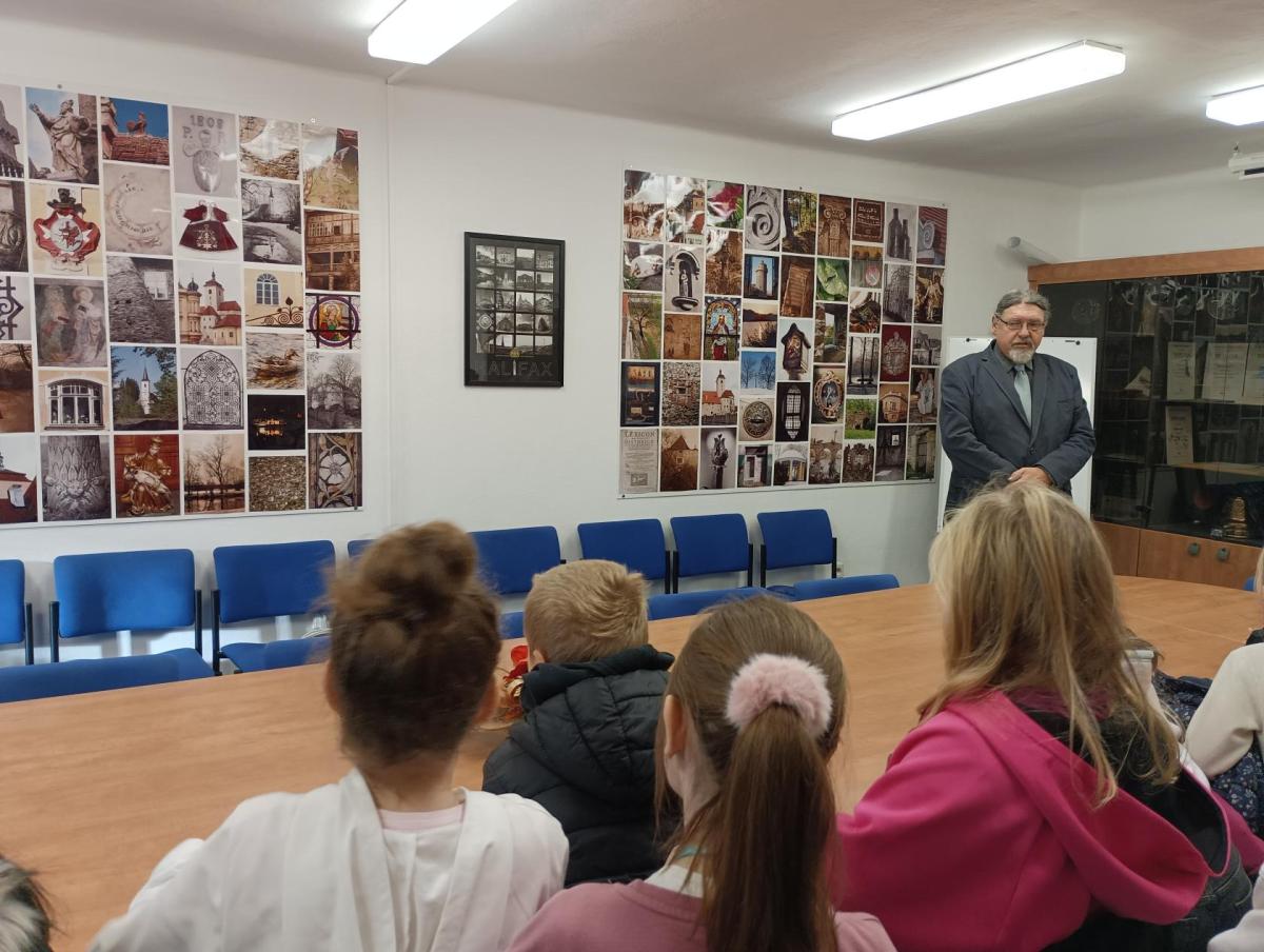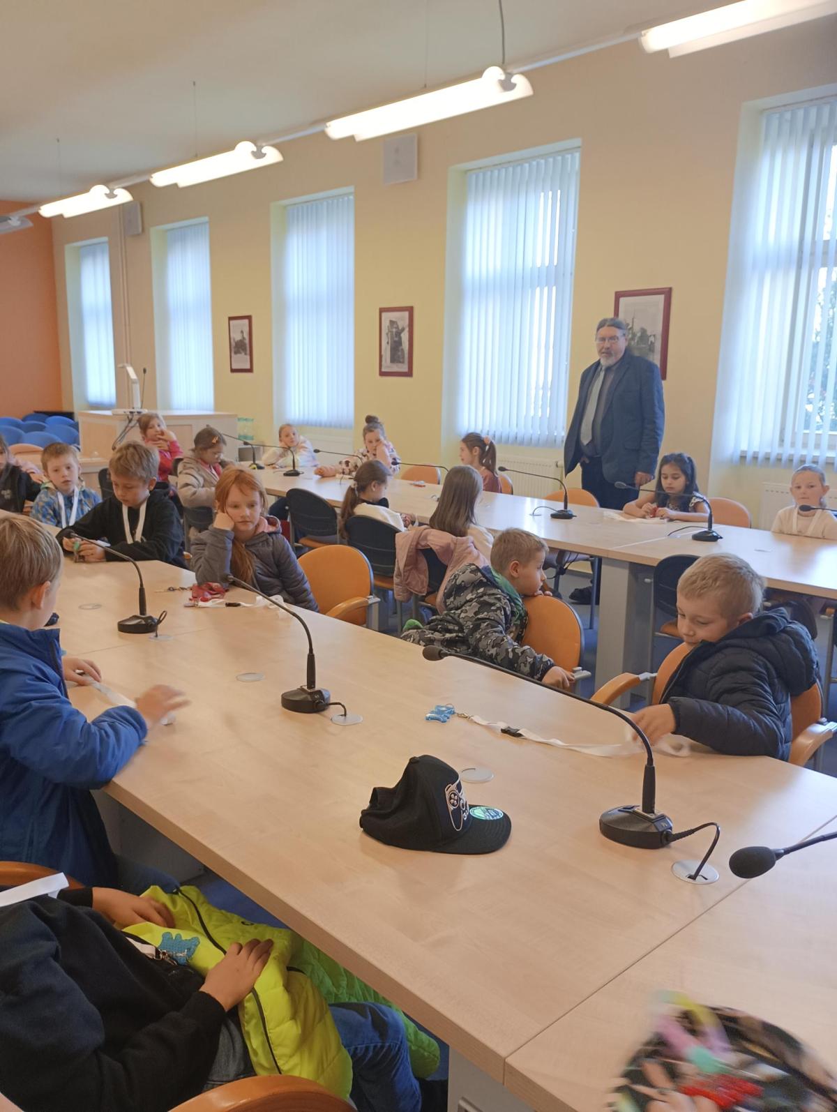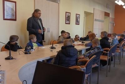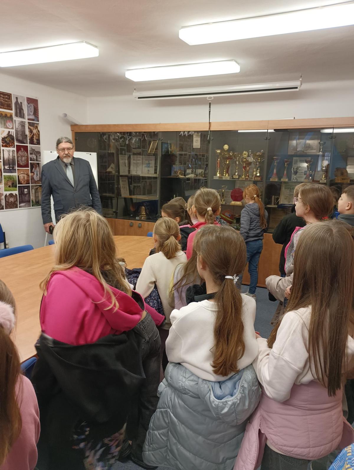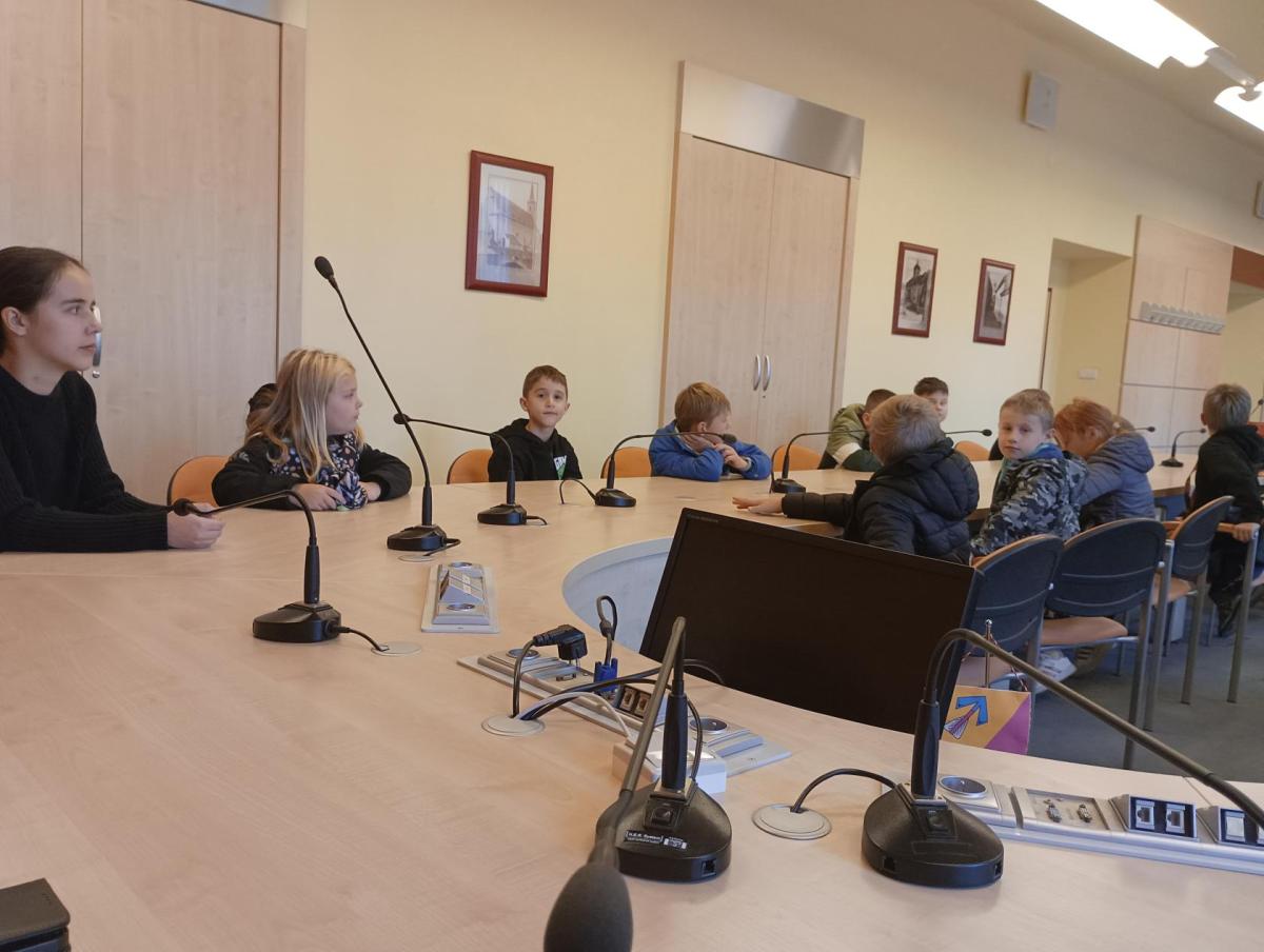 V rámci prvouky jsme šli na besedu s panem starostou na městský úřad. Zjistili jsme, co dělá pan starosta, paní tajemnice a místostarostové. V malé i velké zasedací místnosti jsme si vyzkoušeli, jaké je to sedět u stolu, kde se rozhoduje... Zahráli jsme si kvíz o městě a uspěli jsme na jedničku. Za odměnu jsme si odnesli drobné dárečky. Panu starostovi jsme nakreslili jeho portrét, který se mu moc líbil.