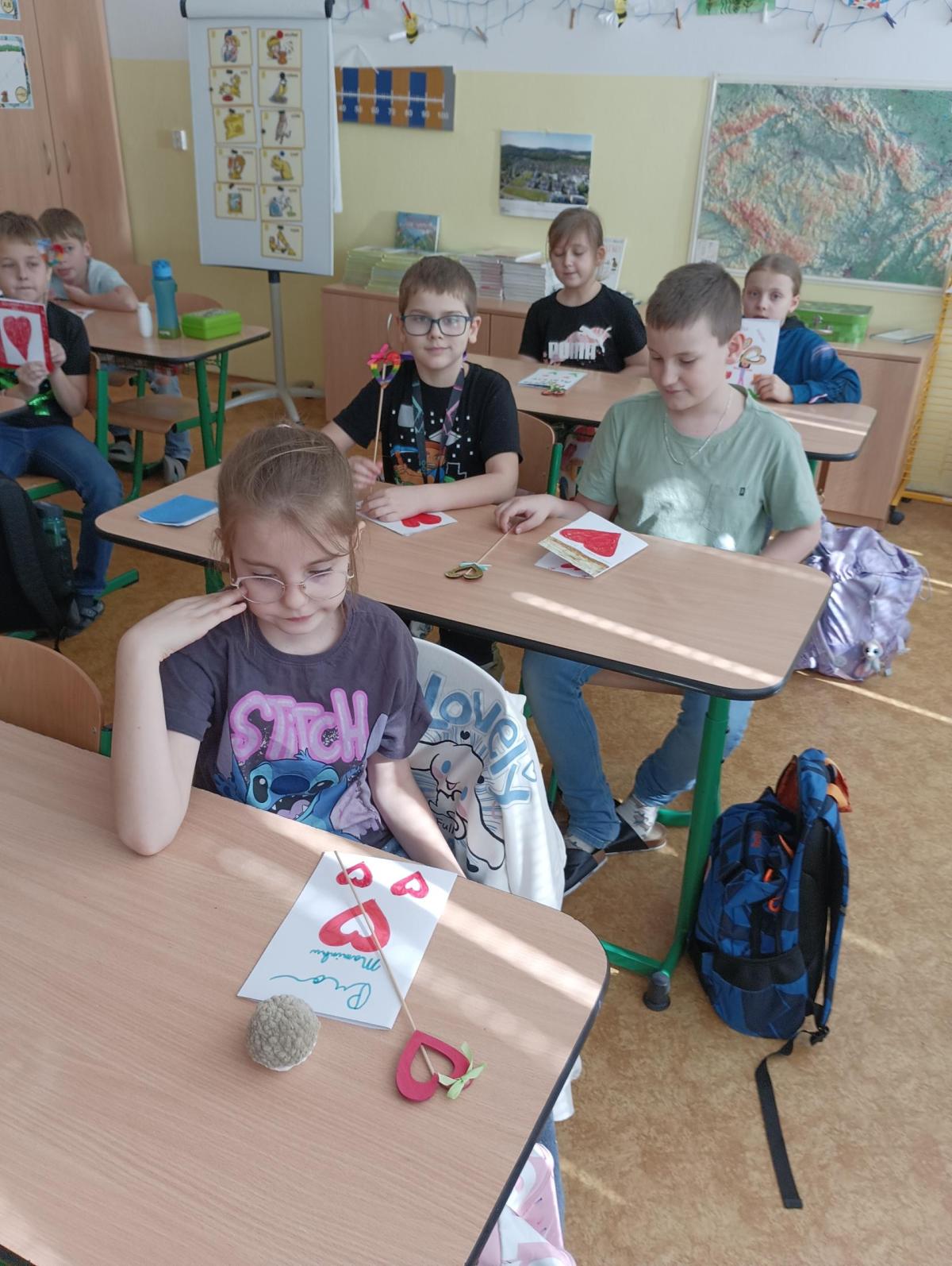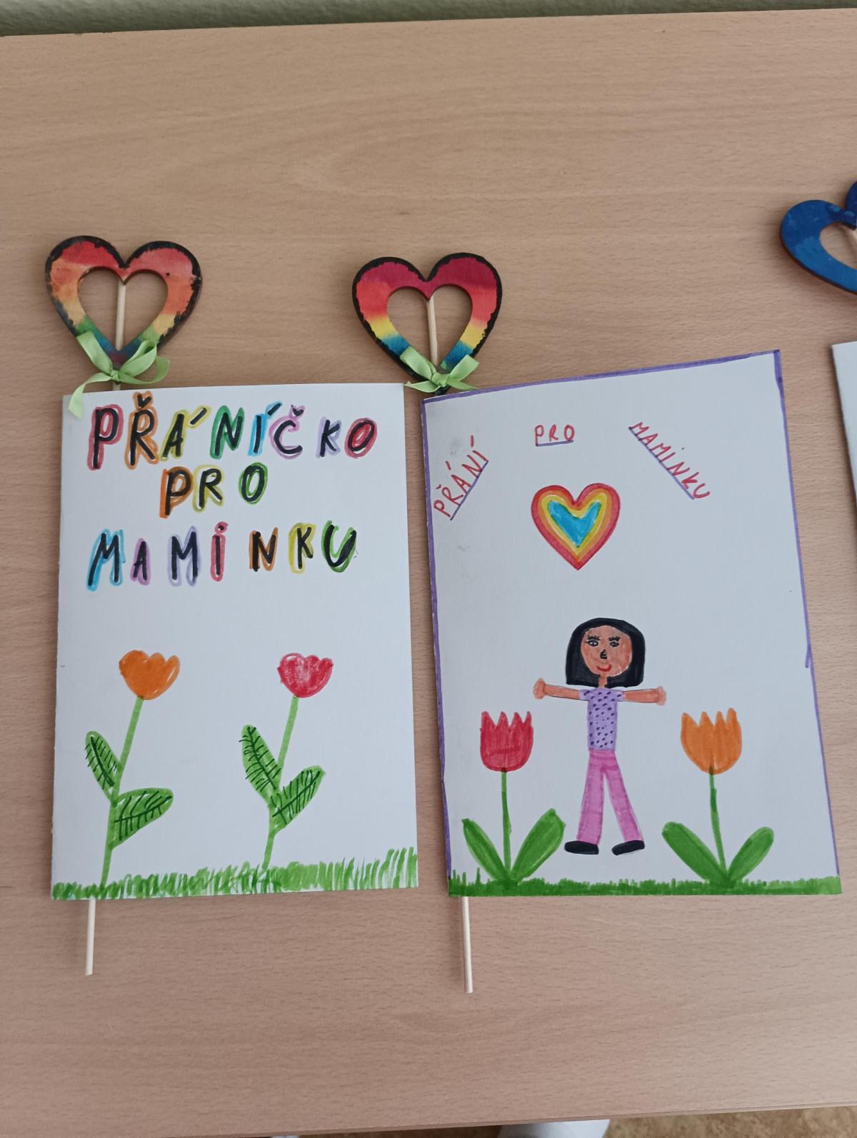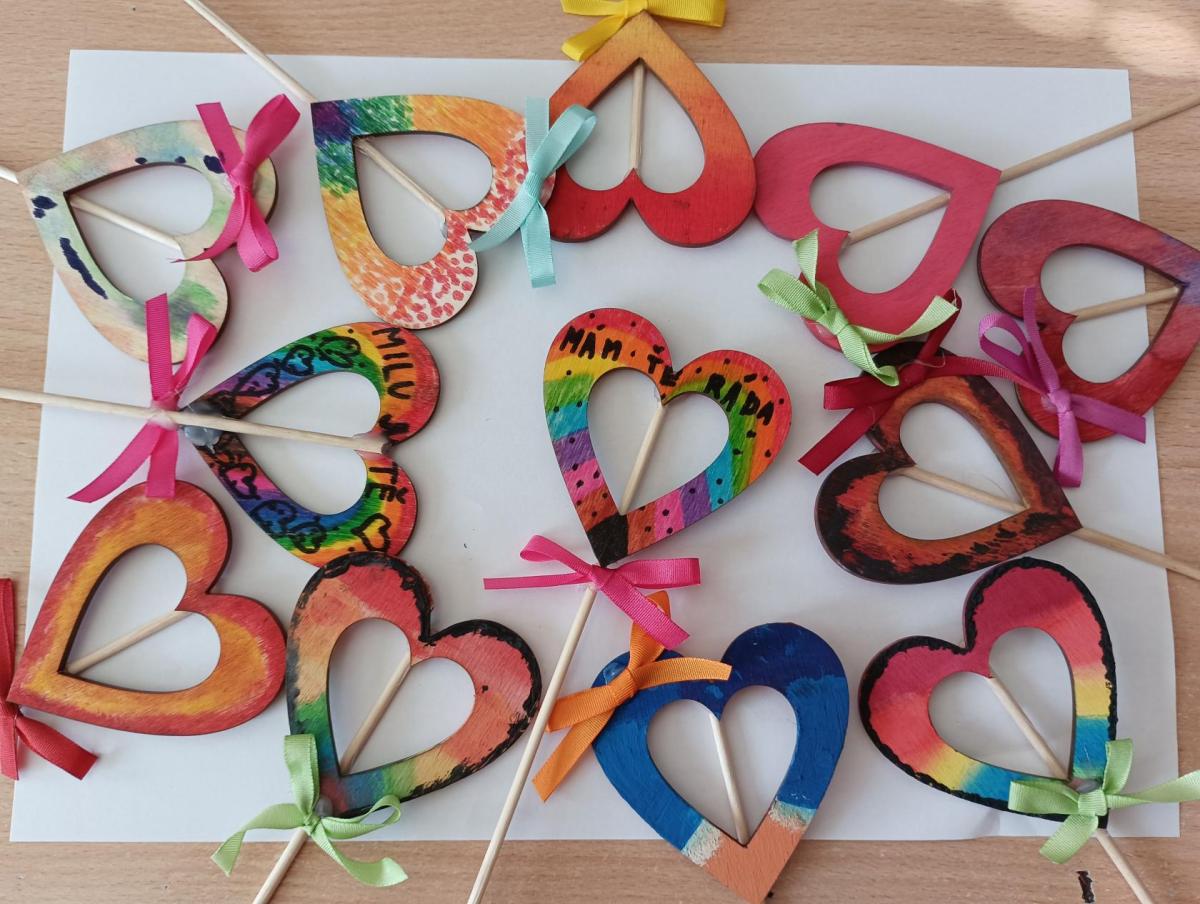 Mezinárodní den žen je svátek všech žen. My jsme si pro naše maminky, babičky a tety připravili srdíčkový zápich ze dřeva a přáníčko. Zápich jsme nedříve vyzdobili fixami, temperami nebo vodovkami. Každý si vybral techniku, se kterou se mu dobře pracuje. Následovalo upevnění na lipovou špejli a dokončení mašličkou. Přáníčka jsme vyzdobili také srdíčky, která se nám moc dařila. Myslíme si, že uděláme radost našim nejbližším.