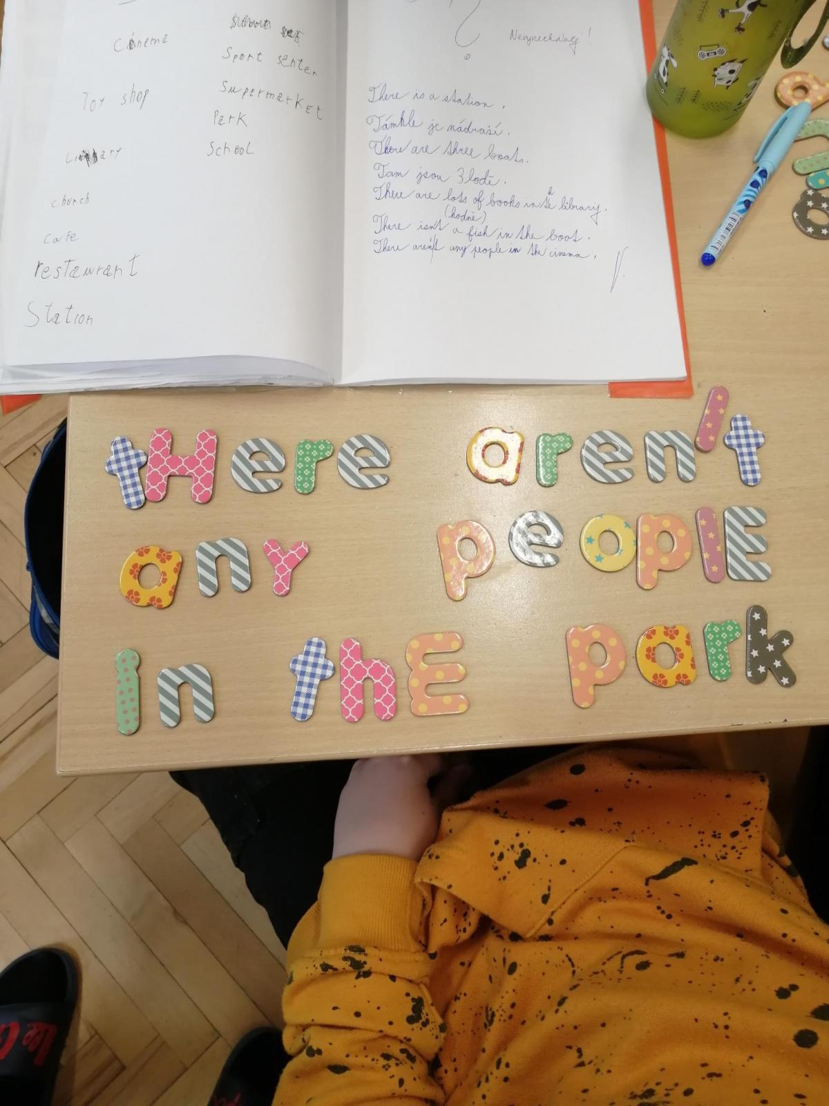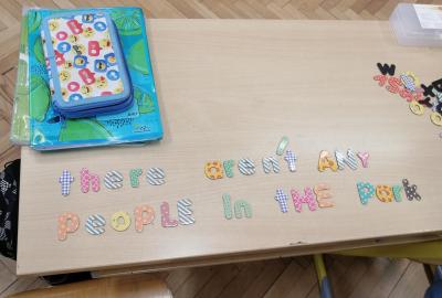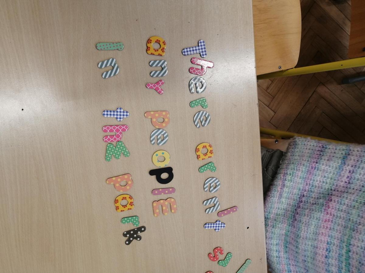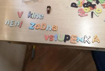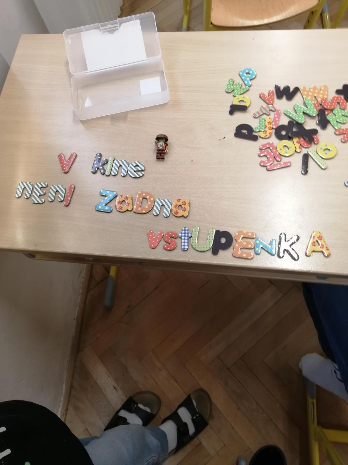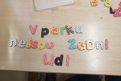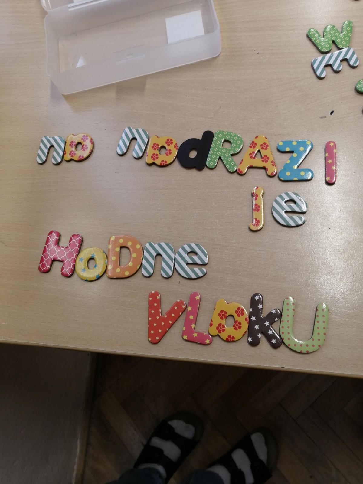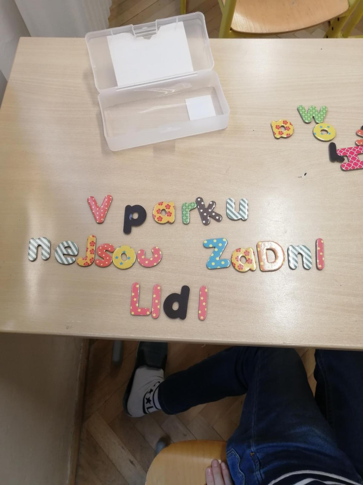 Pomocí magnetických písmen jsme dnes tvořili a procvičovali věty.
