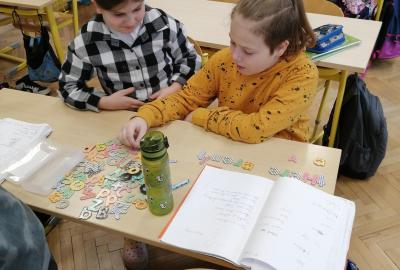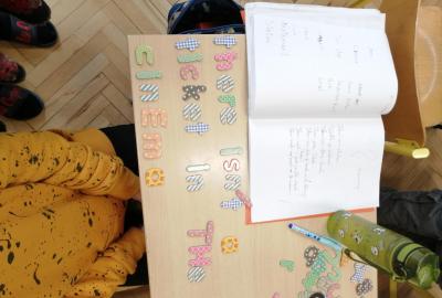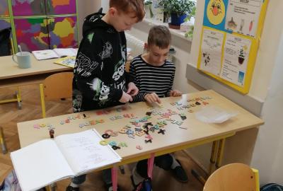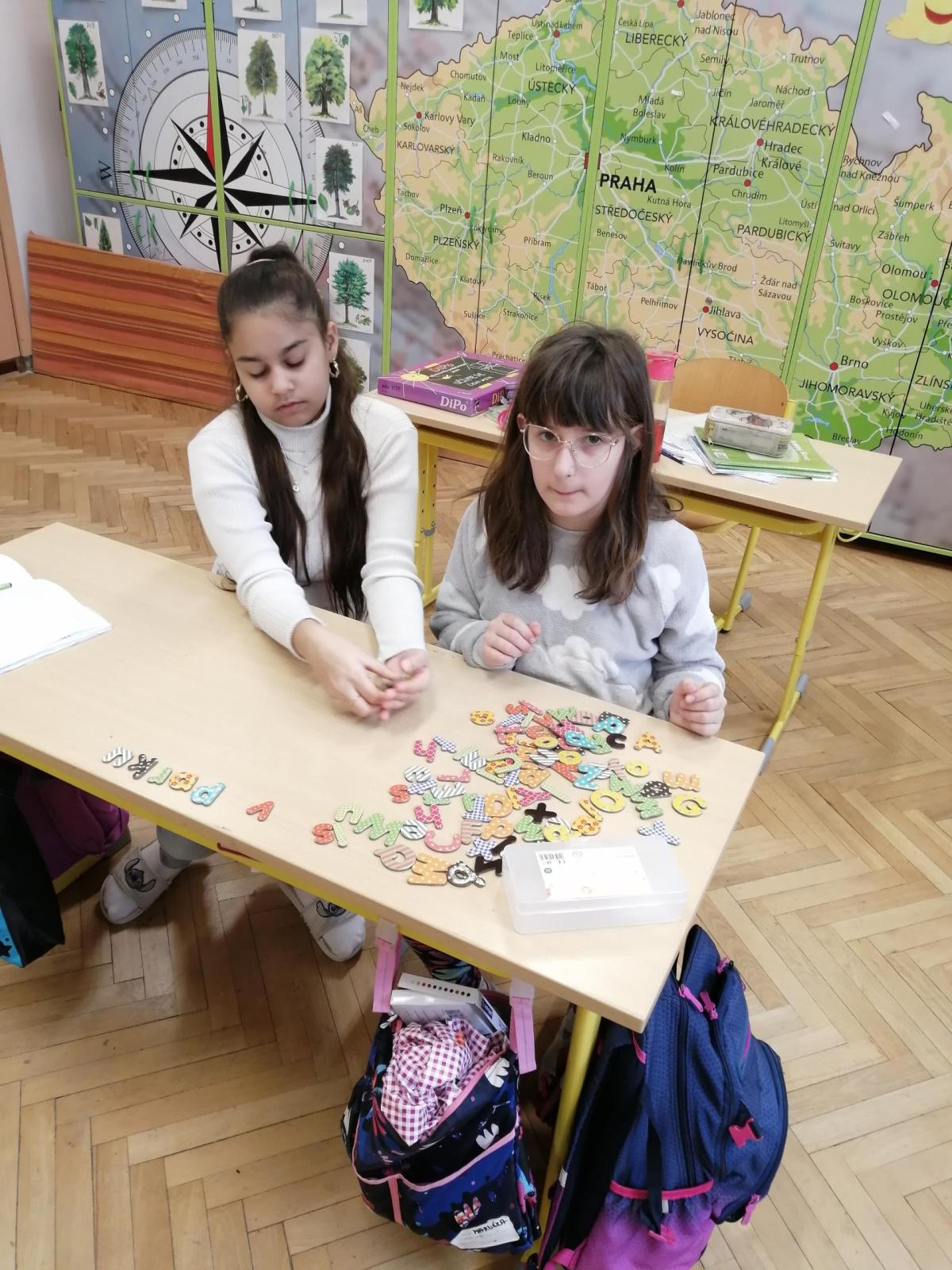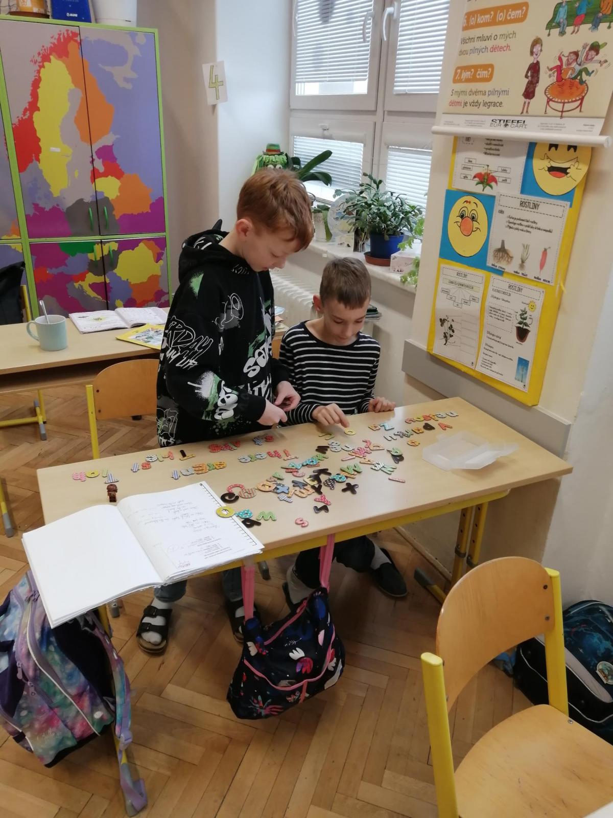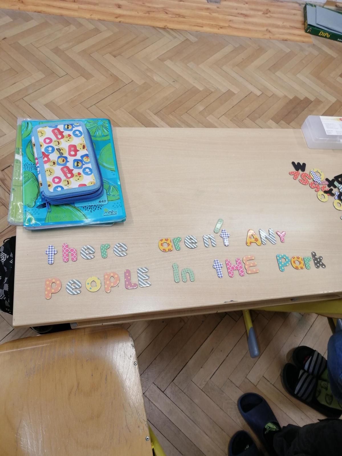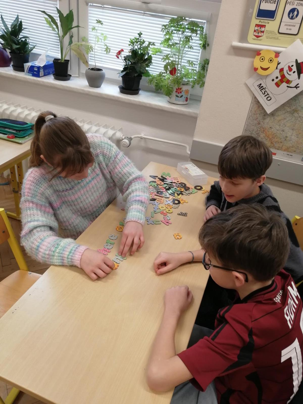 Pomocí magnetických písmen jsme dnes tvořili a procvičovali věty.