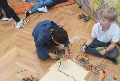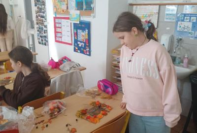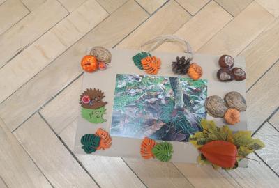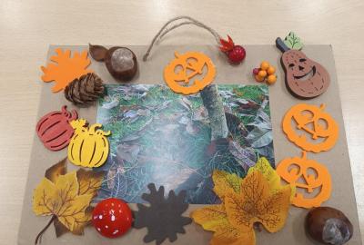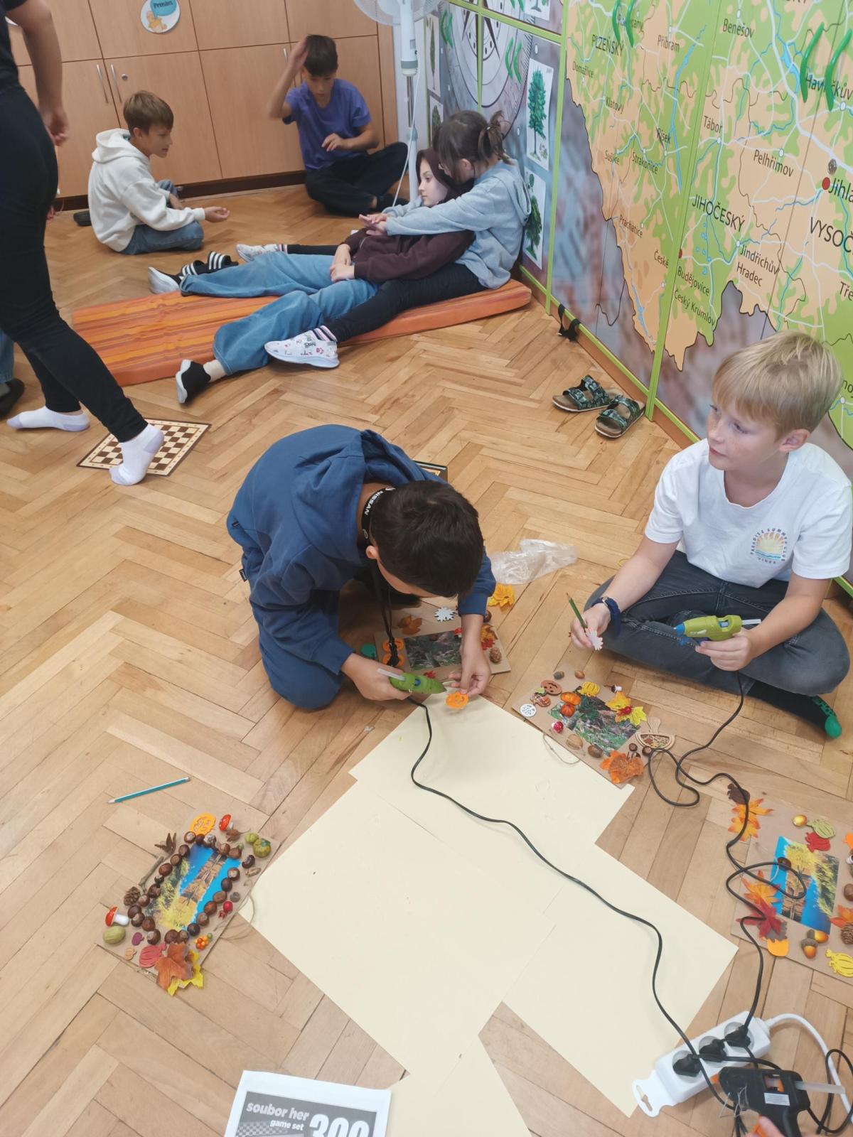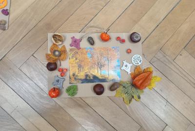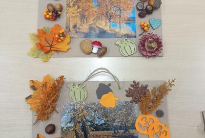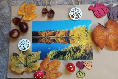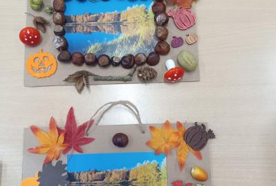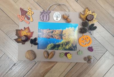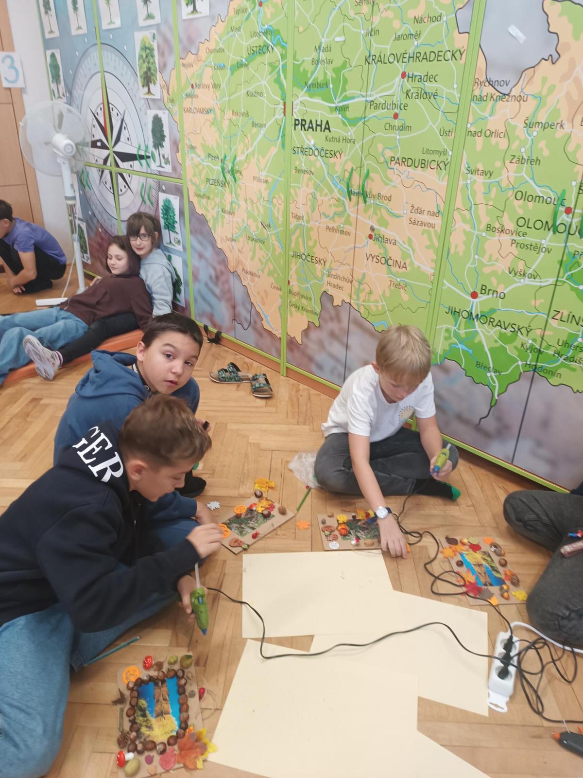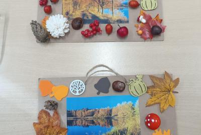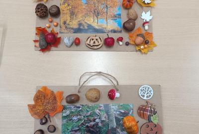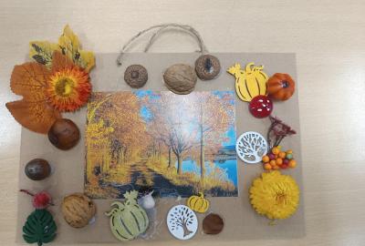 Podzimní aranžmá - výroba obrázku - práce s přírodninami