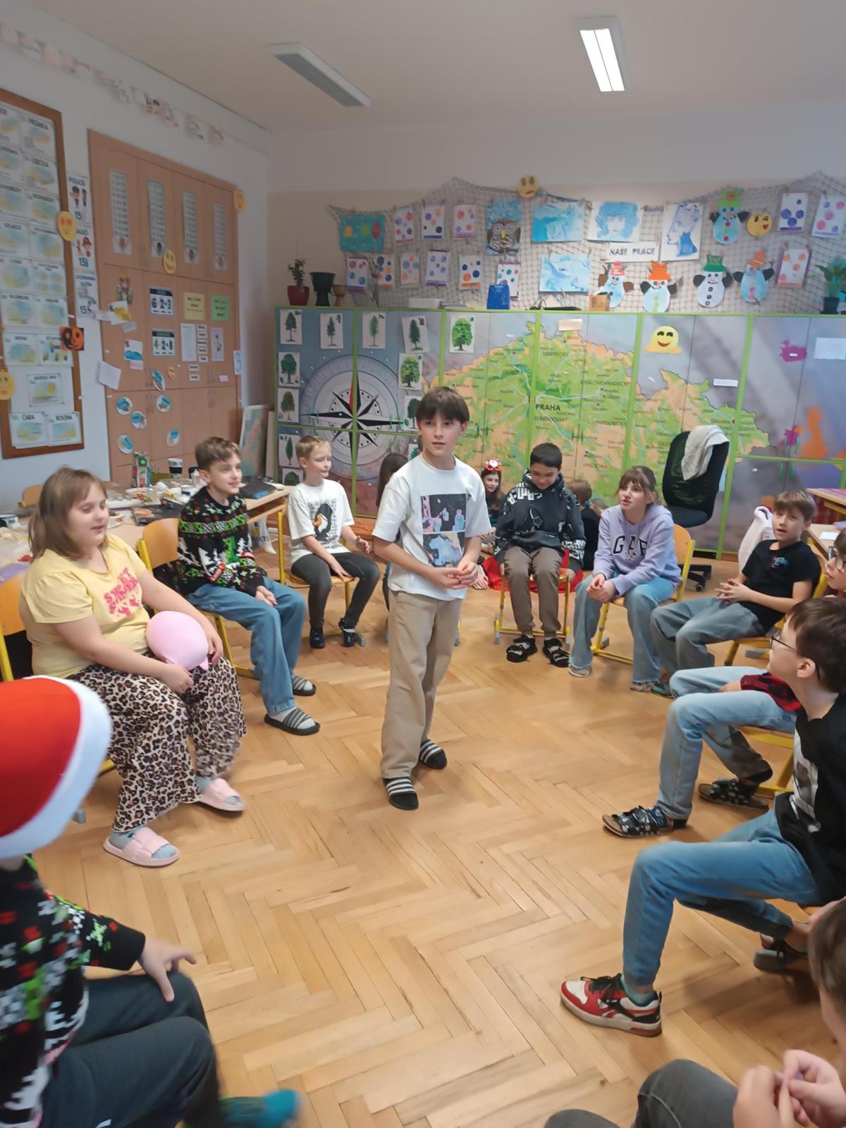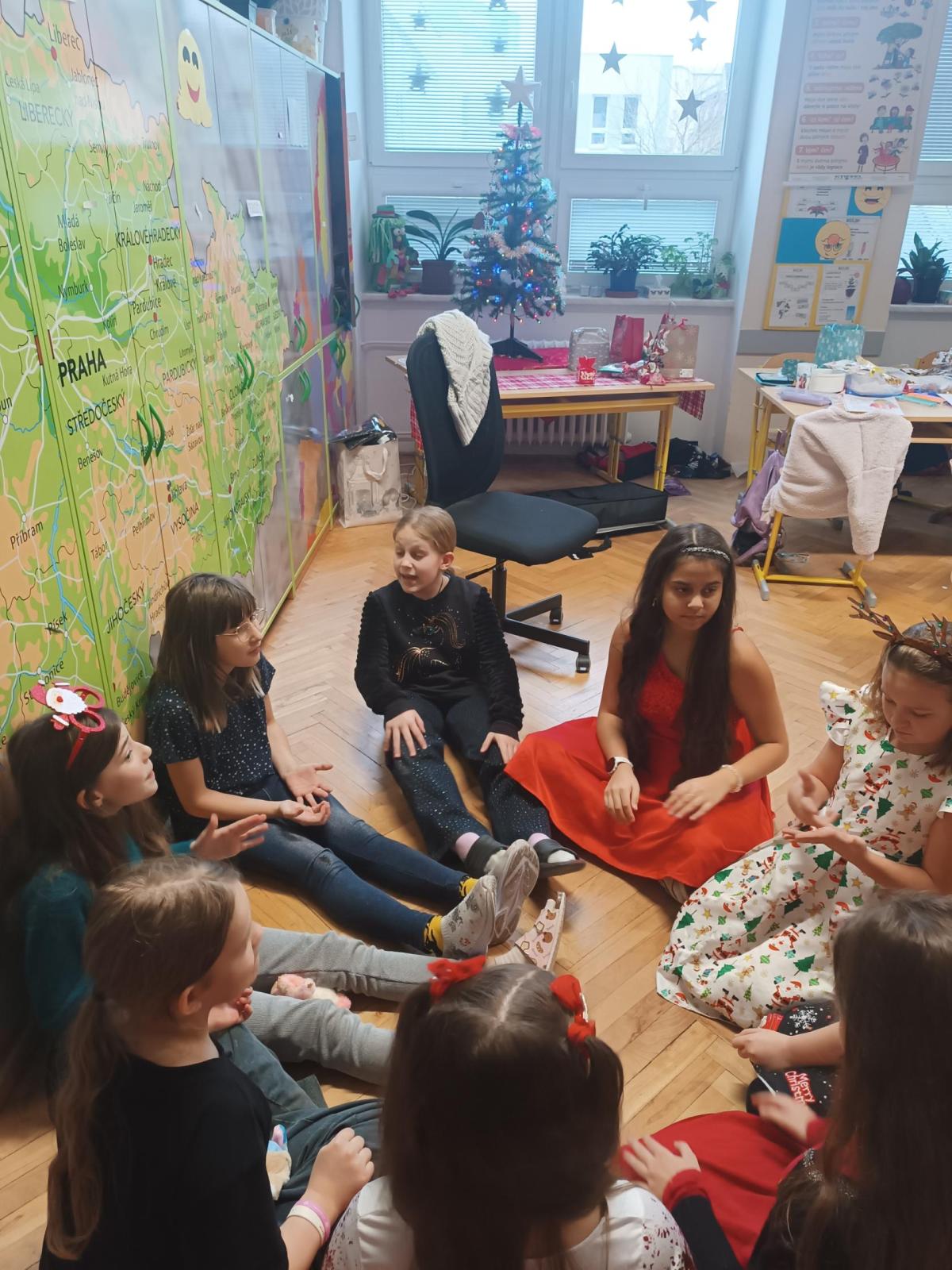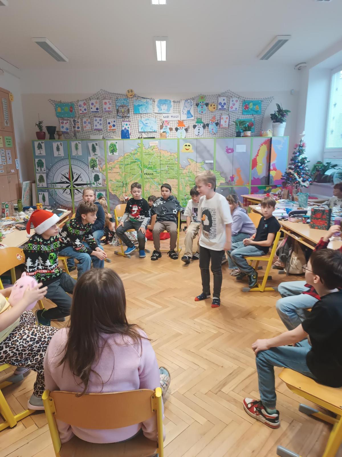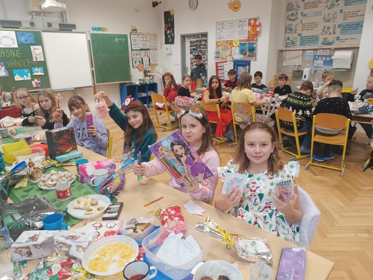 Při projektovém dnu jsme hráli hry, soutěžili jsme, vyzkoušeli si některé vánoční zvyky a tradice a nejvíc jsme se těšili na dárečky. Zpívali jsme koledy a někteří spolužáci si pro nás připravili zábavnou scénku nebo zpívali koledy s doprovodem. Ochutnávali jsme cukroví, které nám poslali některé maminky.