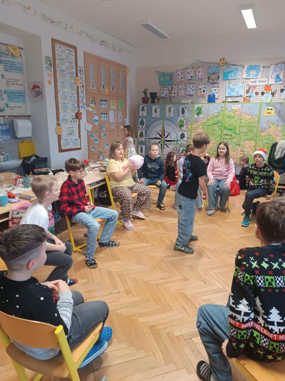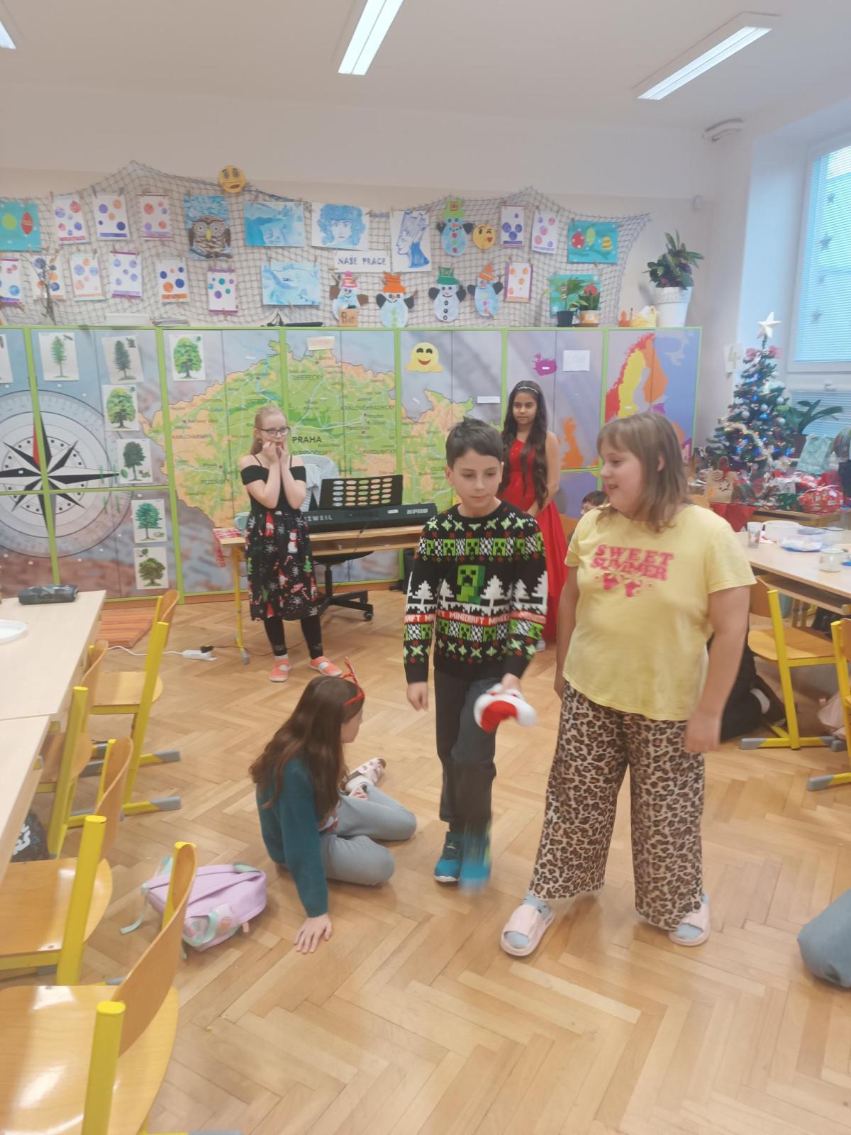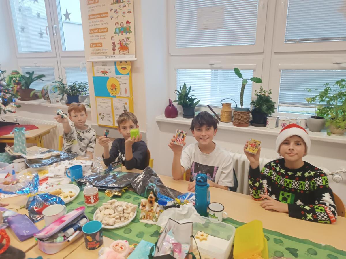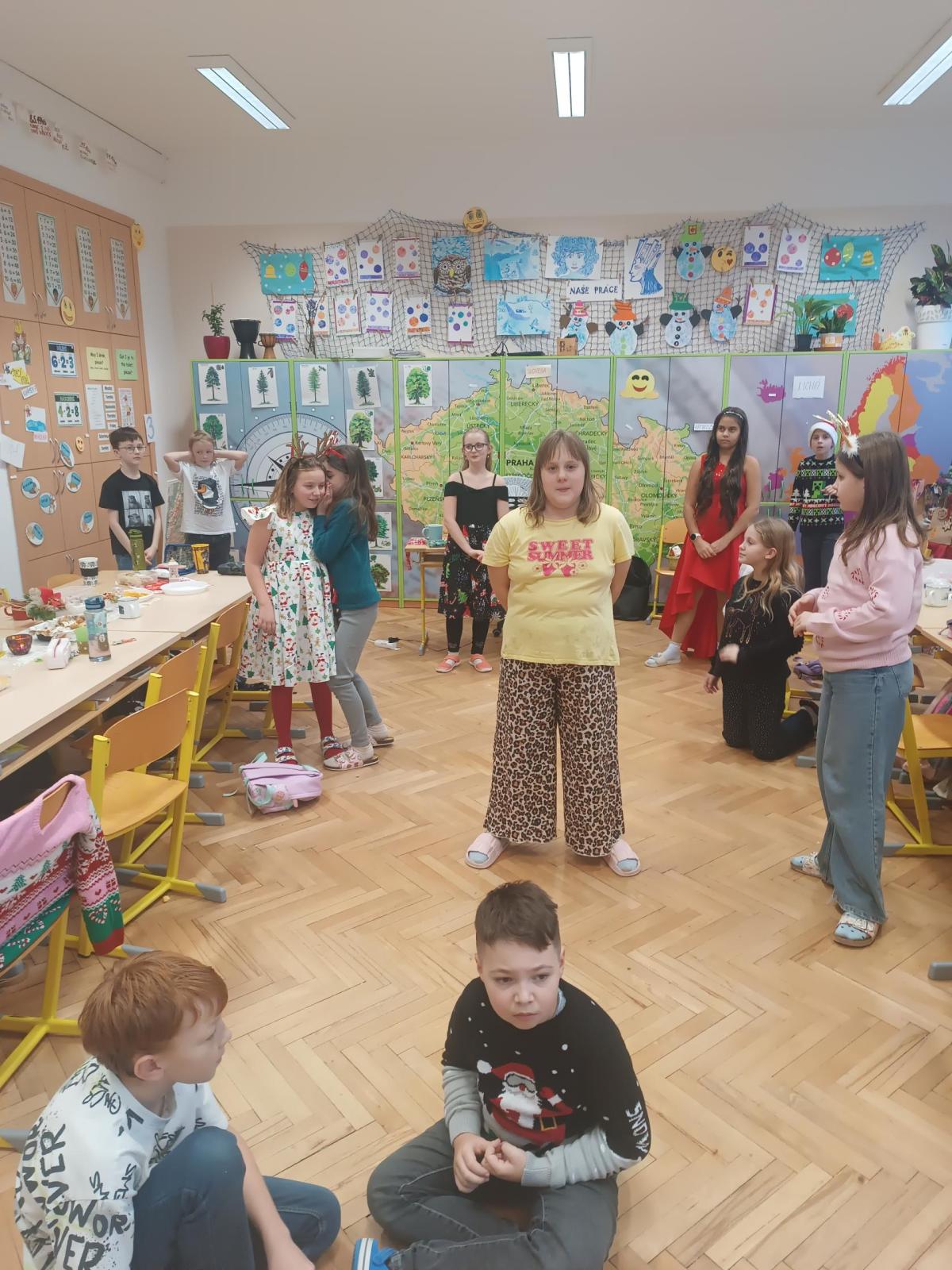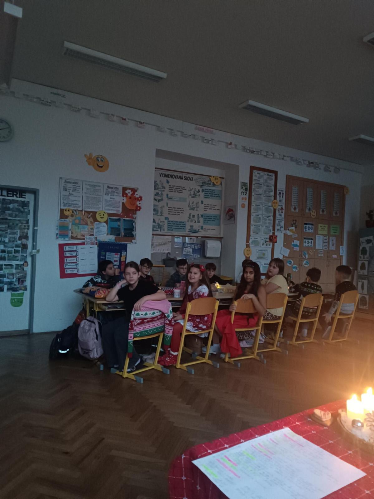Při projektovém dnu jsme hráli hry, soutěžili jsme, vyzkoušeli si některé vánoční zvyky a tradice a nejvíc jsme se těšili na dárečky. Zpívali jsme koledy a někteří spolužáci si pro nás připravili zábavnou scénku nebo zpívali koledy s doprovodem. Ochutnávali jsme cukroví, které nám poslali některé maminky.
