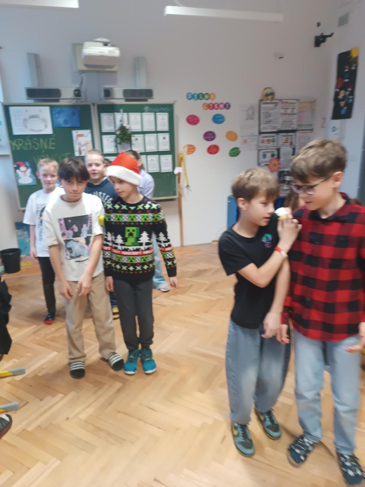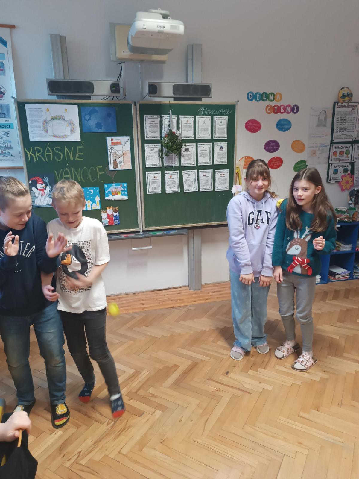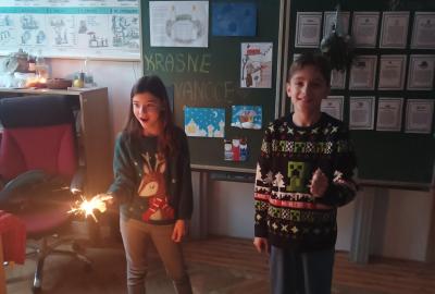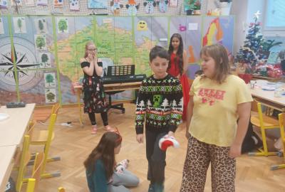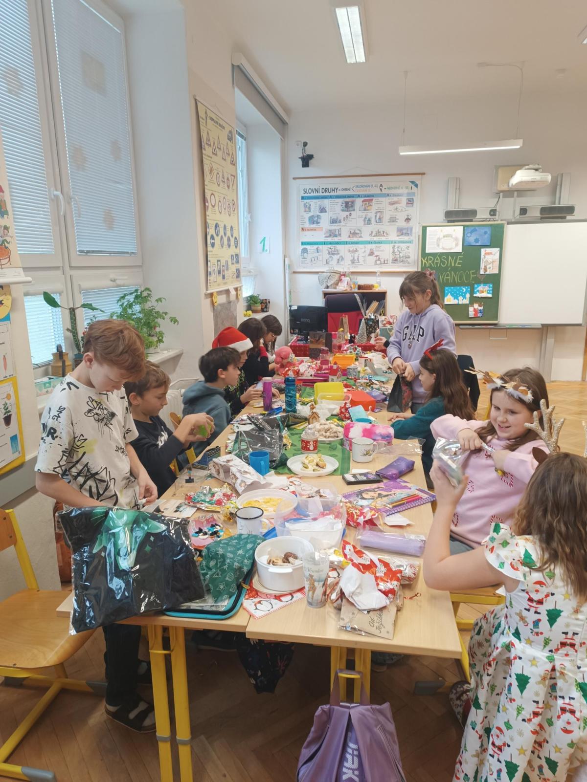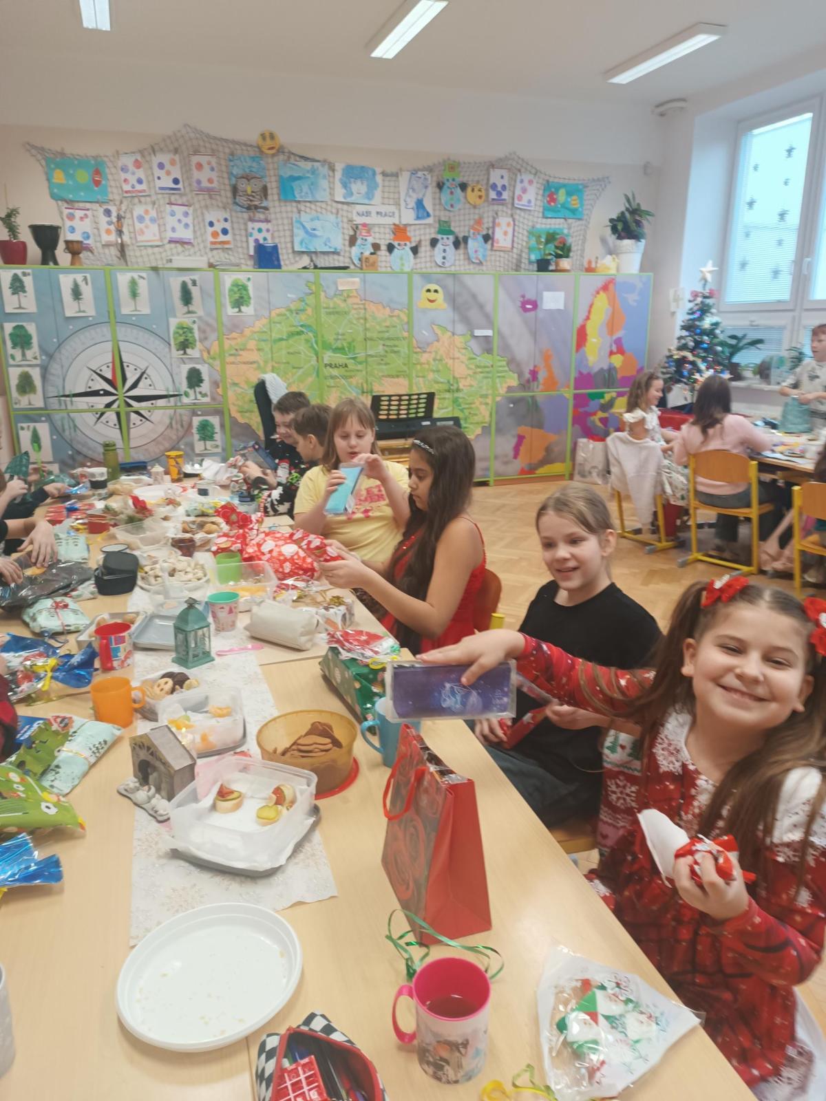 Při projektovém dnu jsme hráli hry, soutěžili jsme, vyzkoušeli si některé vánoční zvyky a tradice a nejvíc jsme se těšili na dárečky. Zpívali jsme koledy a někteří spolužáci si pro nás připravili zábavnou scénku nebo zpívali koledy s doprovodem. Ochutnávali jsme cukroví, které nám poslali některé maminky.