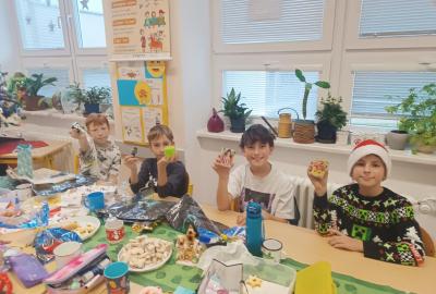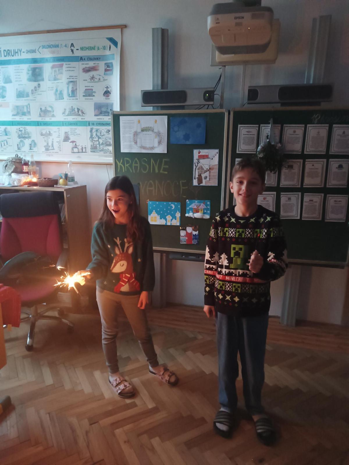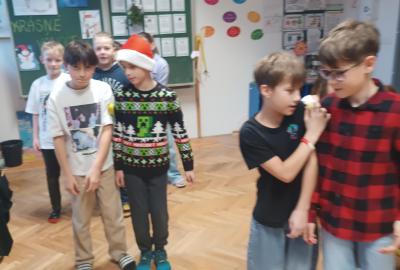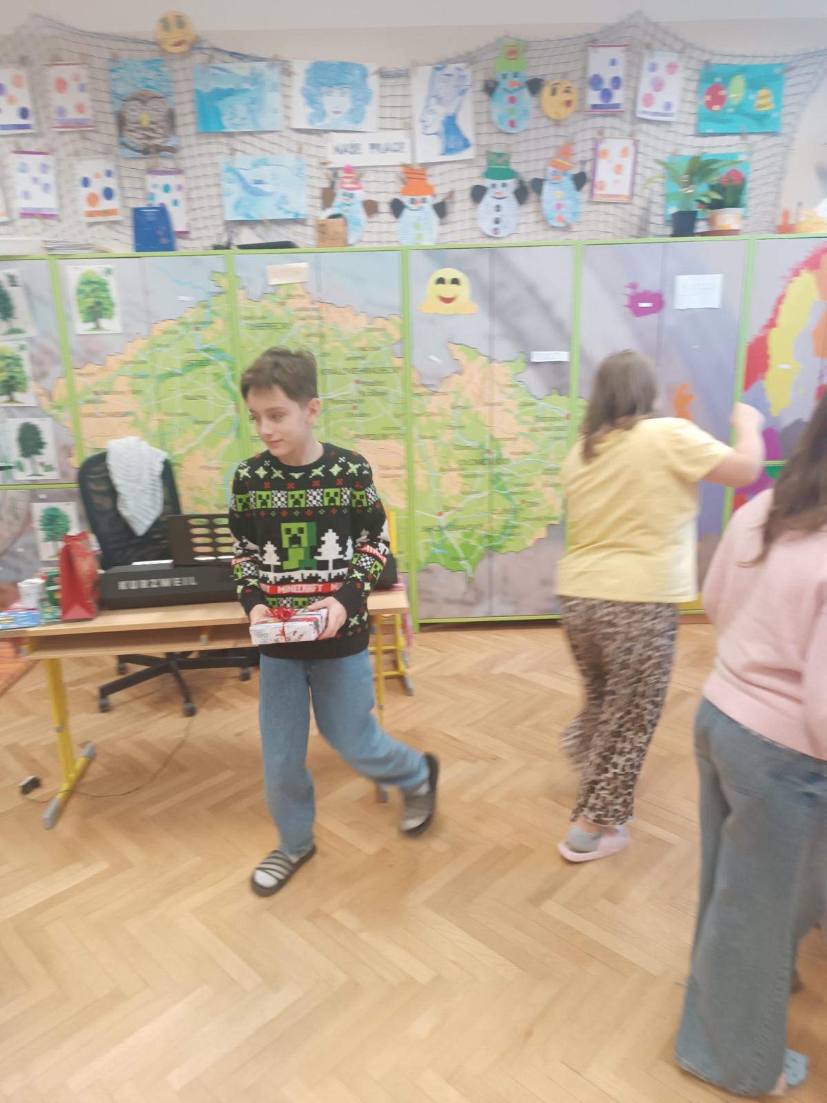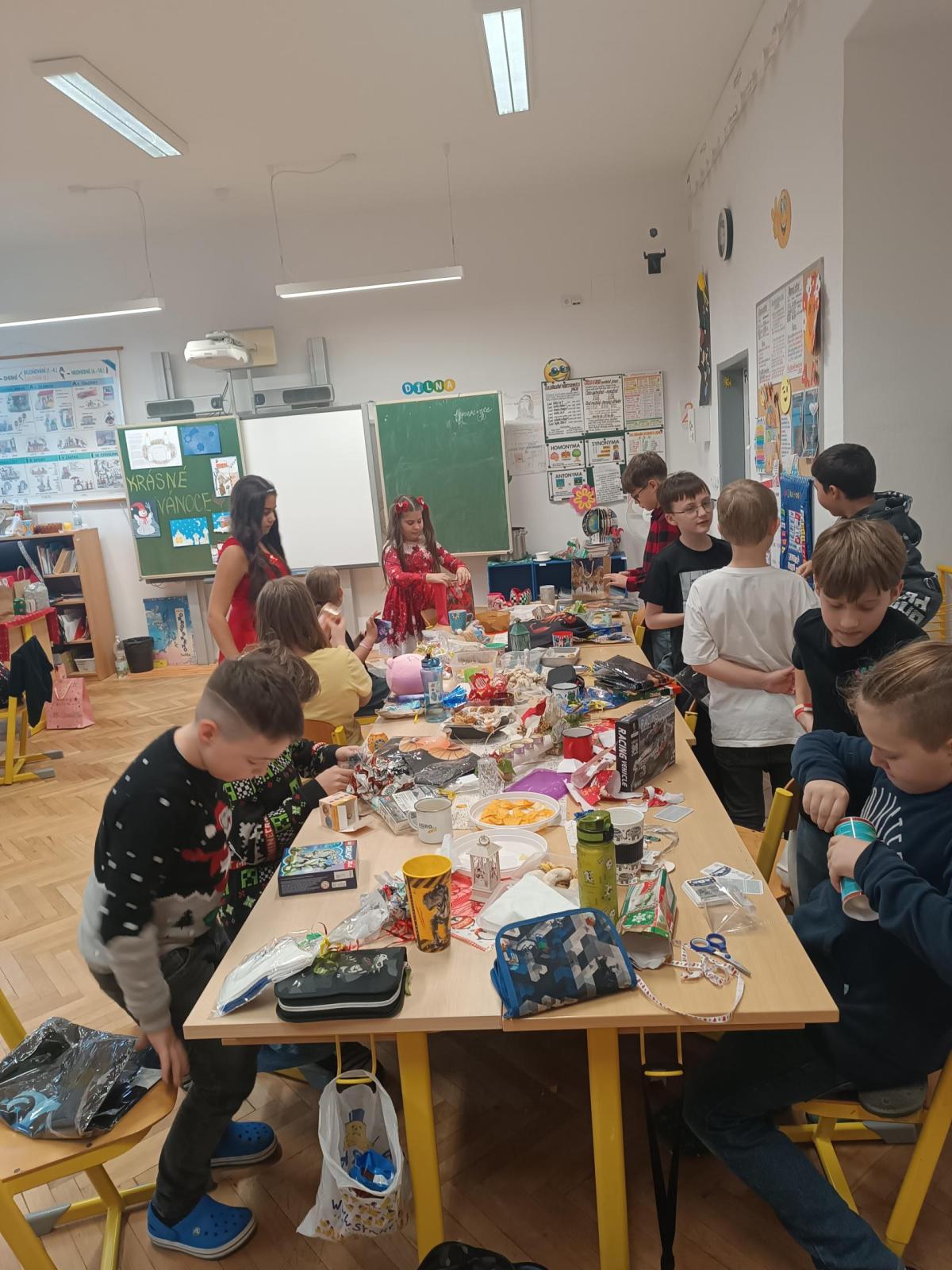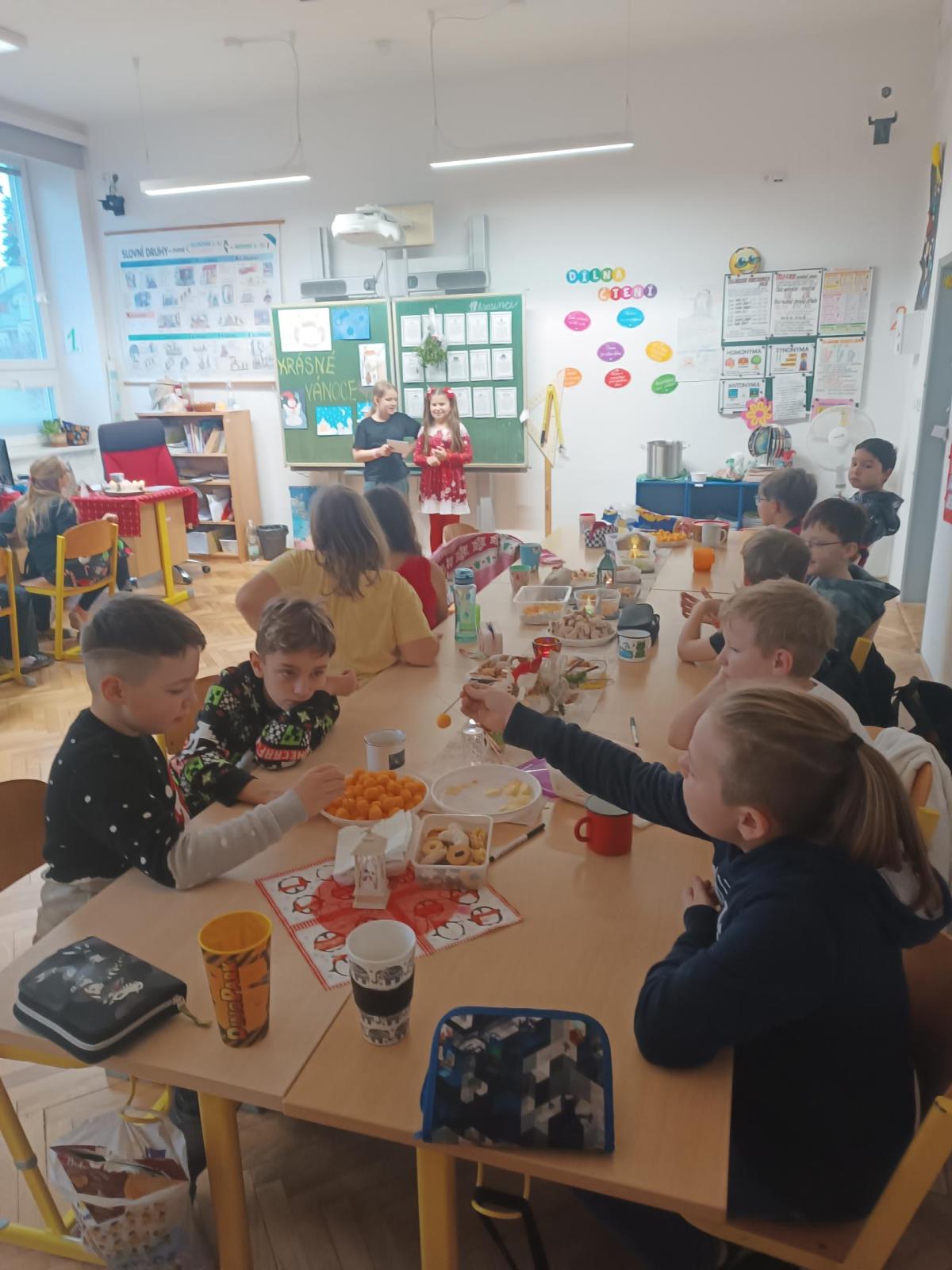 Při projektovém dnu jsme hráli hry, soutěžili jsme, vyzkoušeli si některé vánoční zvyky a tradice a nejvíc jsme se těšili na dárečky. Zpívali jsme koledy a někteří spolužáci si pro nás připravili zábavnou scénku nebo zpívali koledy s doprovodem. Ochutnávali jsme cukroví, které nám poslali některé maminky.
