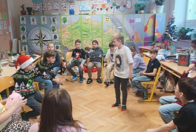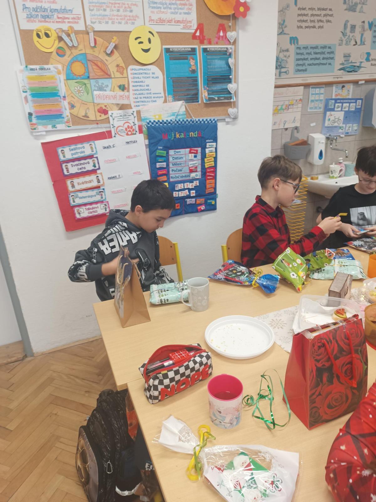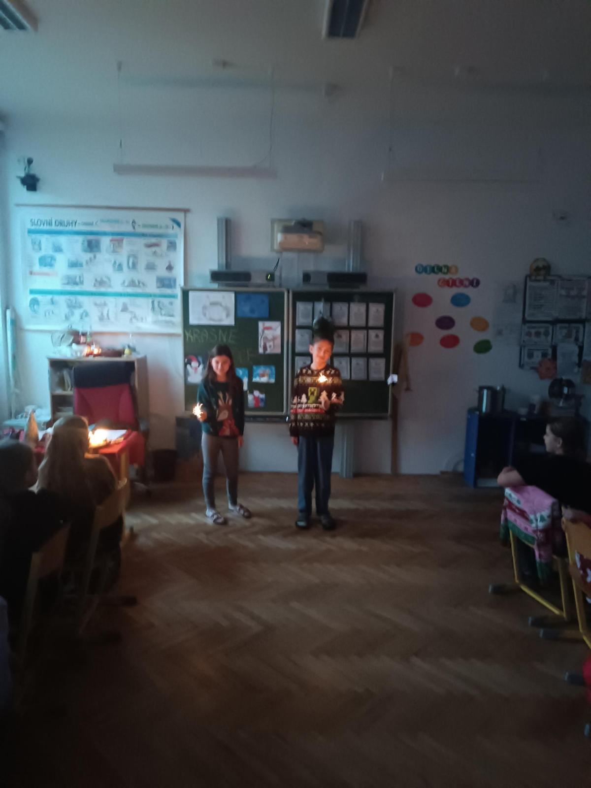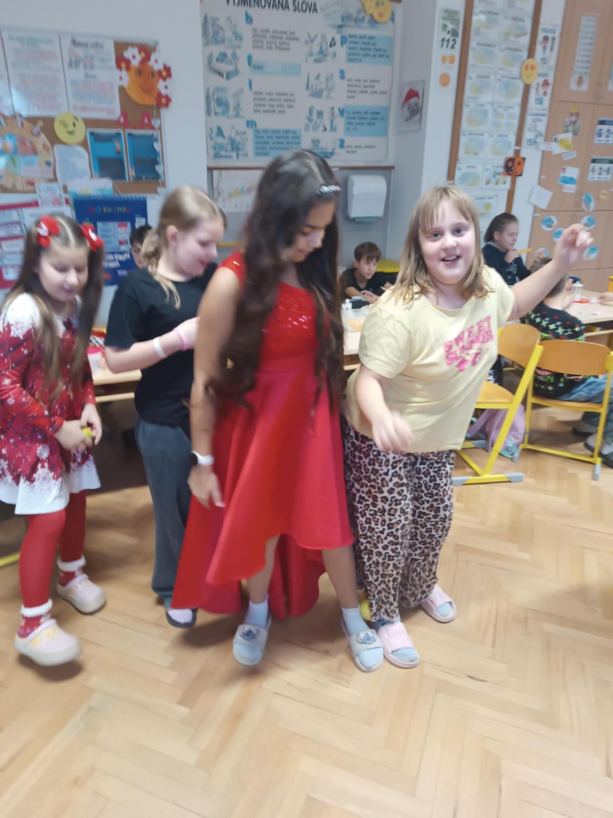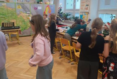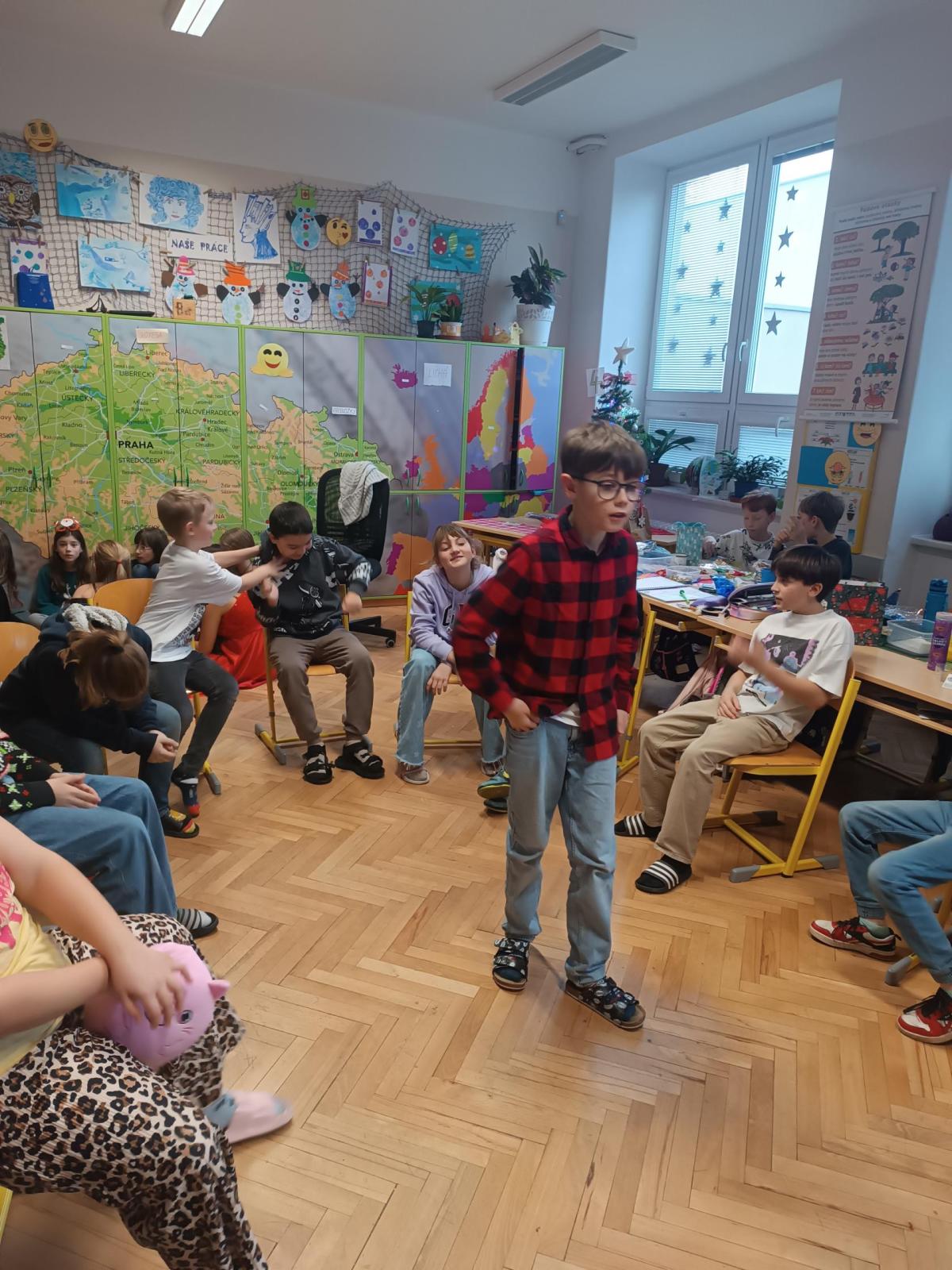 Při projektovém dnu jsme hráli hry, soutěžili jsme, vyzkoušeli si některé vánoční zvyky a tradice a nejvíc jsme se těšili na dárečky. Zpívali jsme koledy a někteří spolužáci si pro nás připravili zábavnou scénku nebo zpívali koledy s doprovodem. Ochutnávali jsme cukroví, které nám poslali některé maminky.