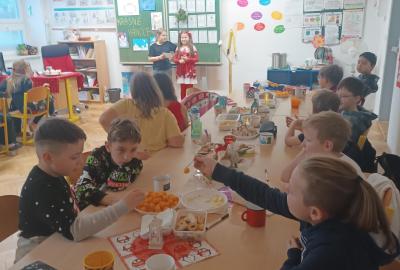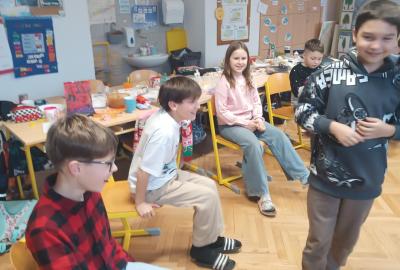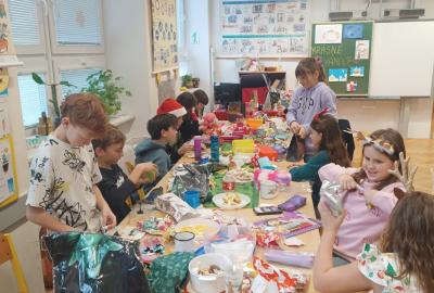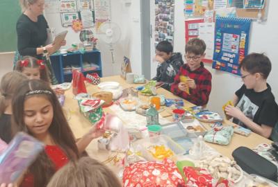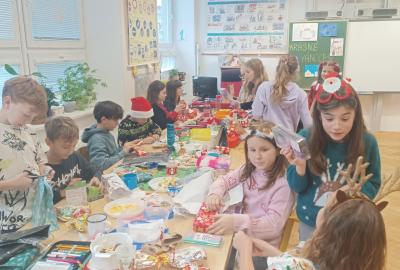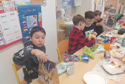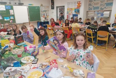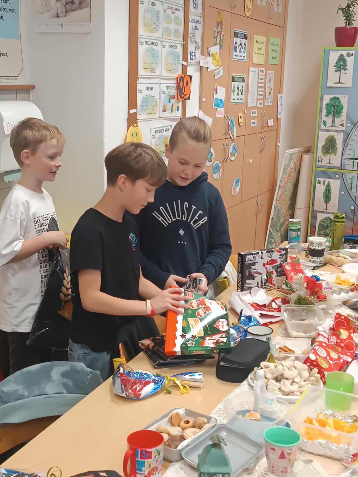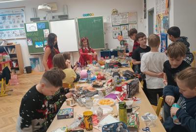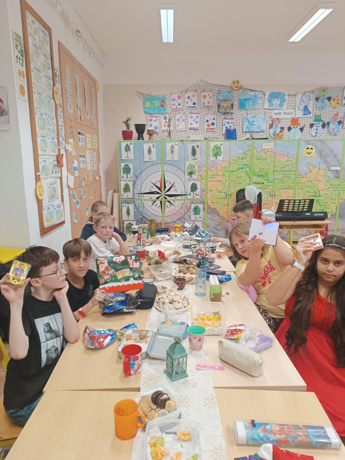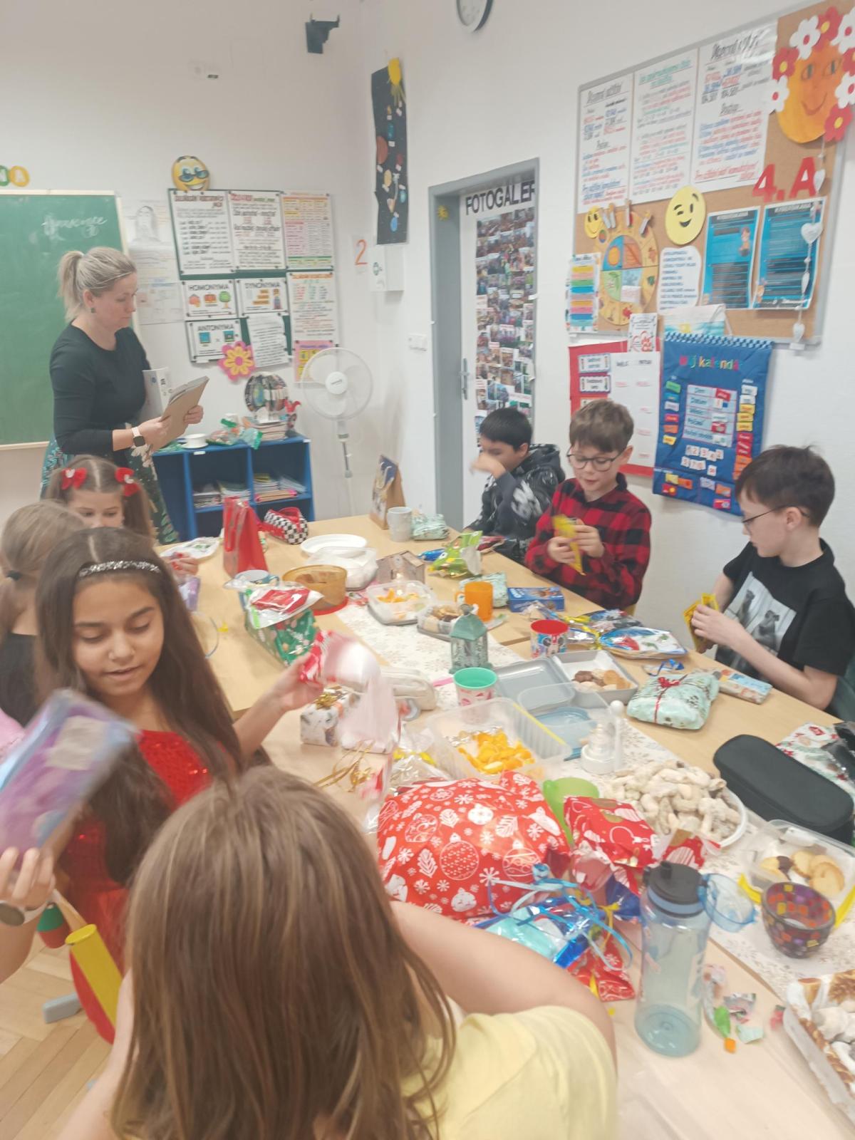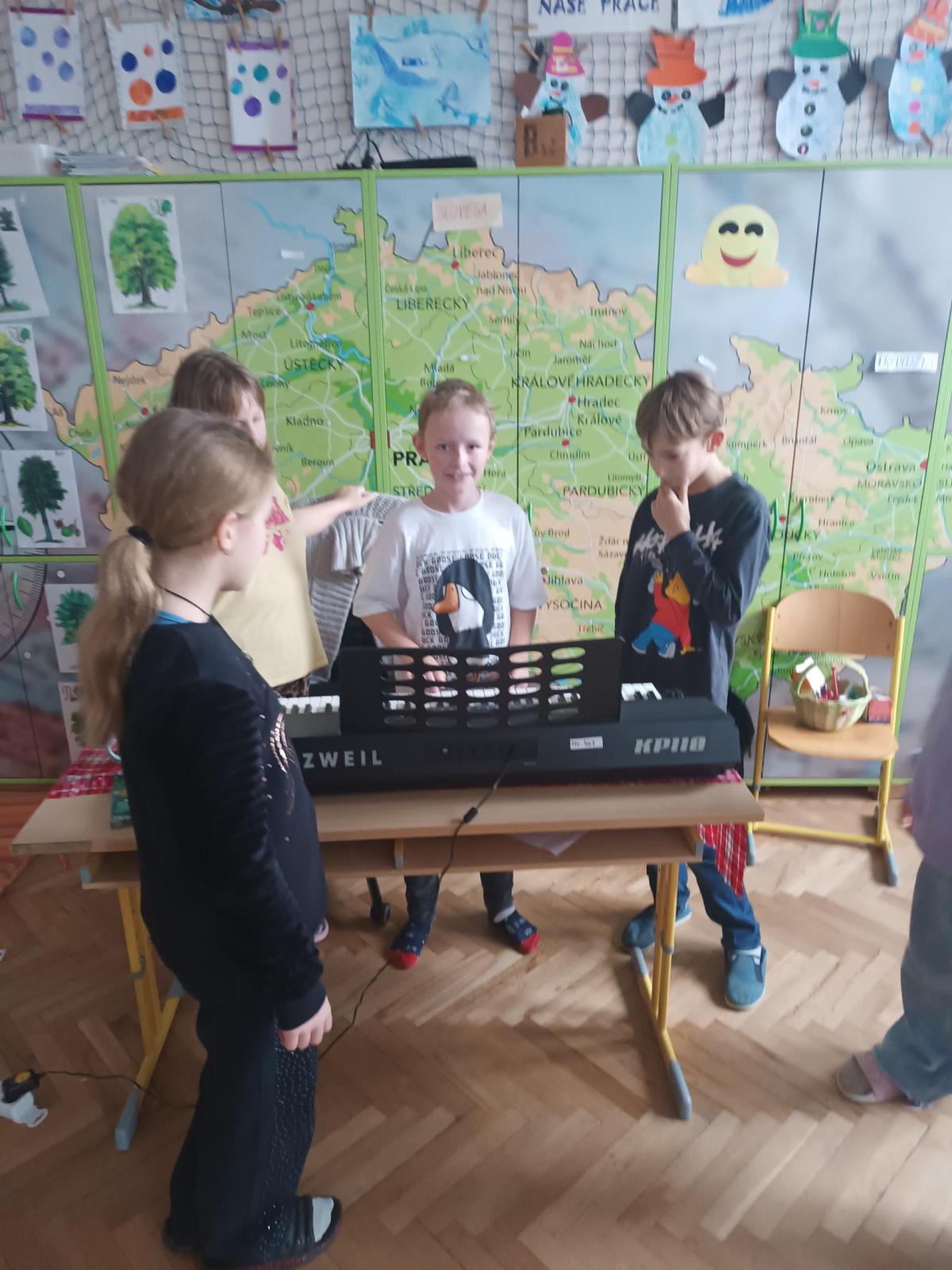 Při projektovém dnu jsme hráli hry, soutěžili jsme, vyzkoušeli si některé vánoční zvyky a tradice a nejvíc jsme se těšili na dárečky. Zpívali jsme koledy a někteří spolužáci si pro nás připravili zábavnou scénku nebo zpívali koledy s doprovodem. Ochutnávali jsme cukroví, které nám poslali některé maminky.