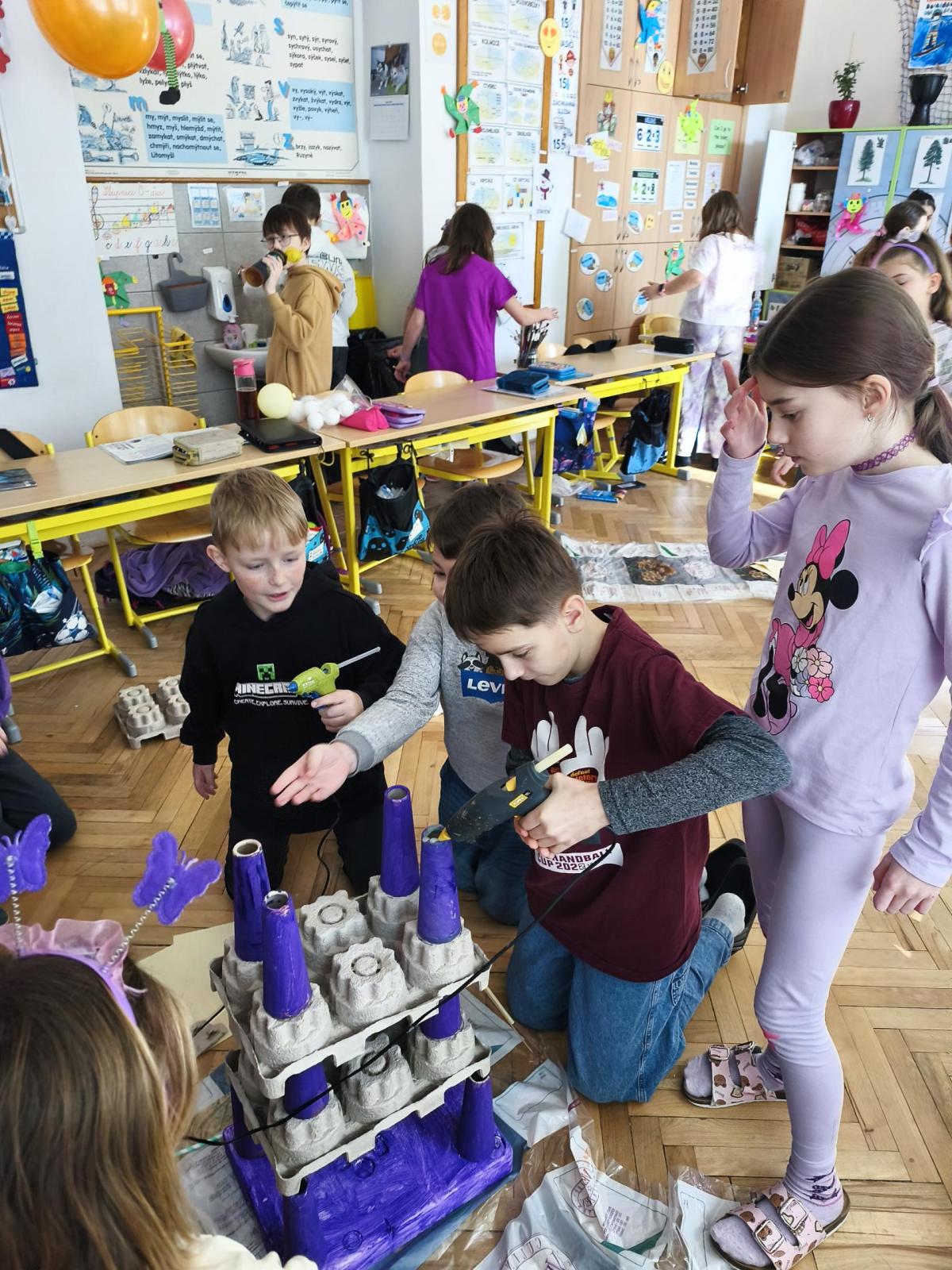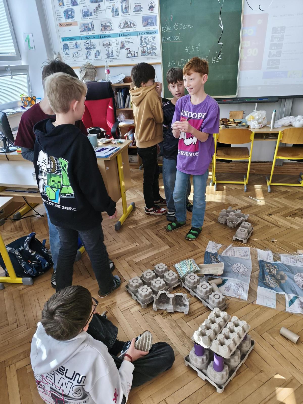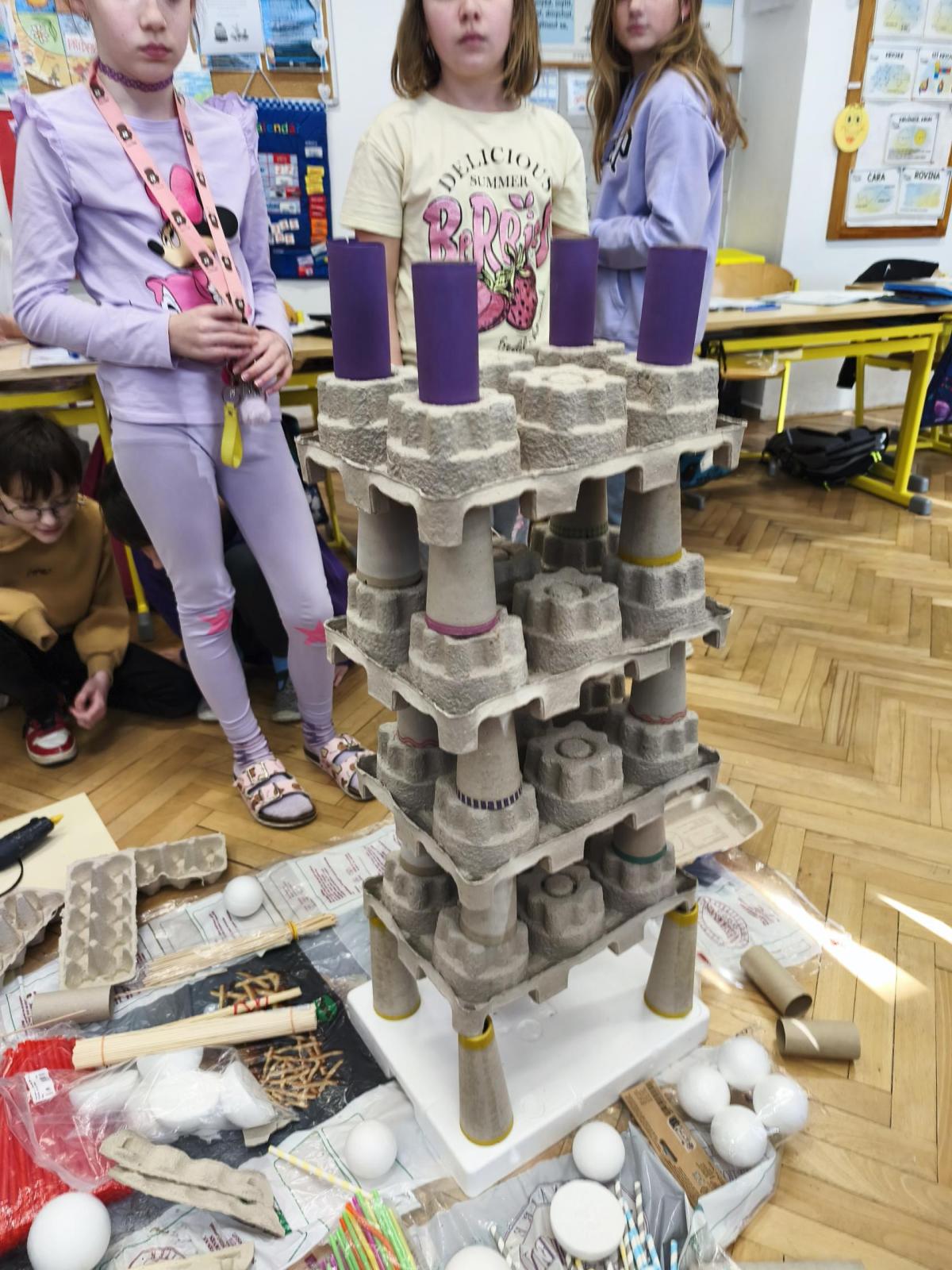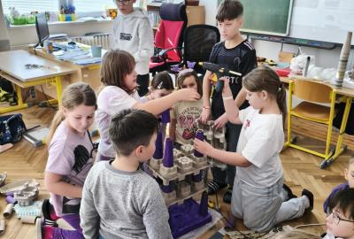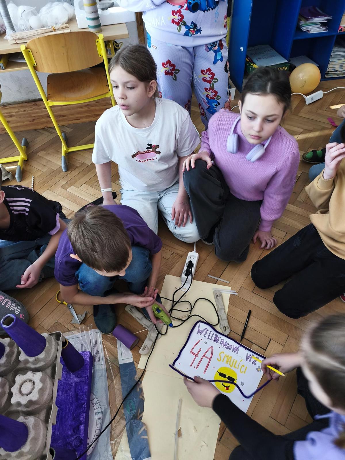 V rámci "Týdne pro wellbeing" jsme měli za úkol sestavit co nejvyšší věž z jakéhokoliv materiálu. Tato aktivita vyžadovala sounáležitost, spolupráci a domluvu. Ze začátku jsme se nemohli dohodnout, z čeho věž uděláme - měli jsme k dispozici hodně materiálů. . . Ale nakonec jsme se domluvili a stavění bylo velmi příjemné, zajímavé a posílilo to naše vztahy ve třídě. Všichni jsme měli z výsledku naší práce radost.