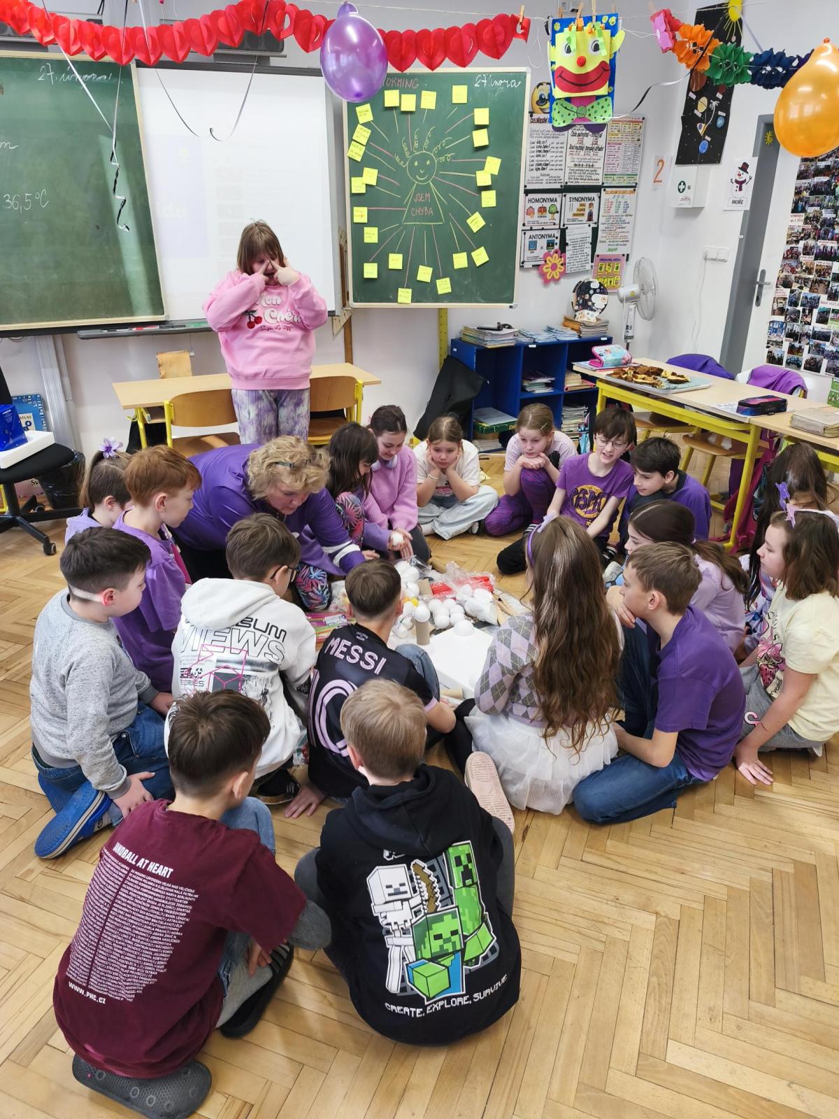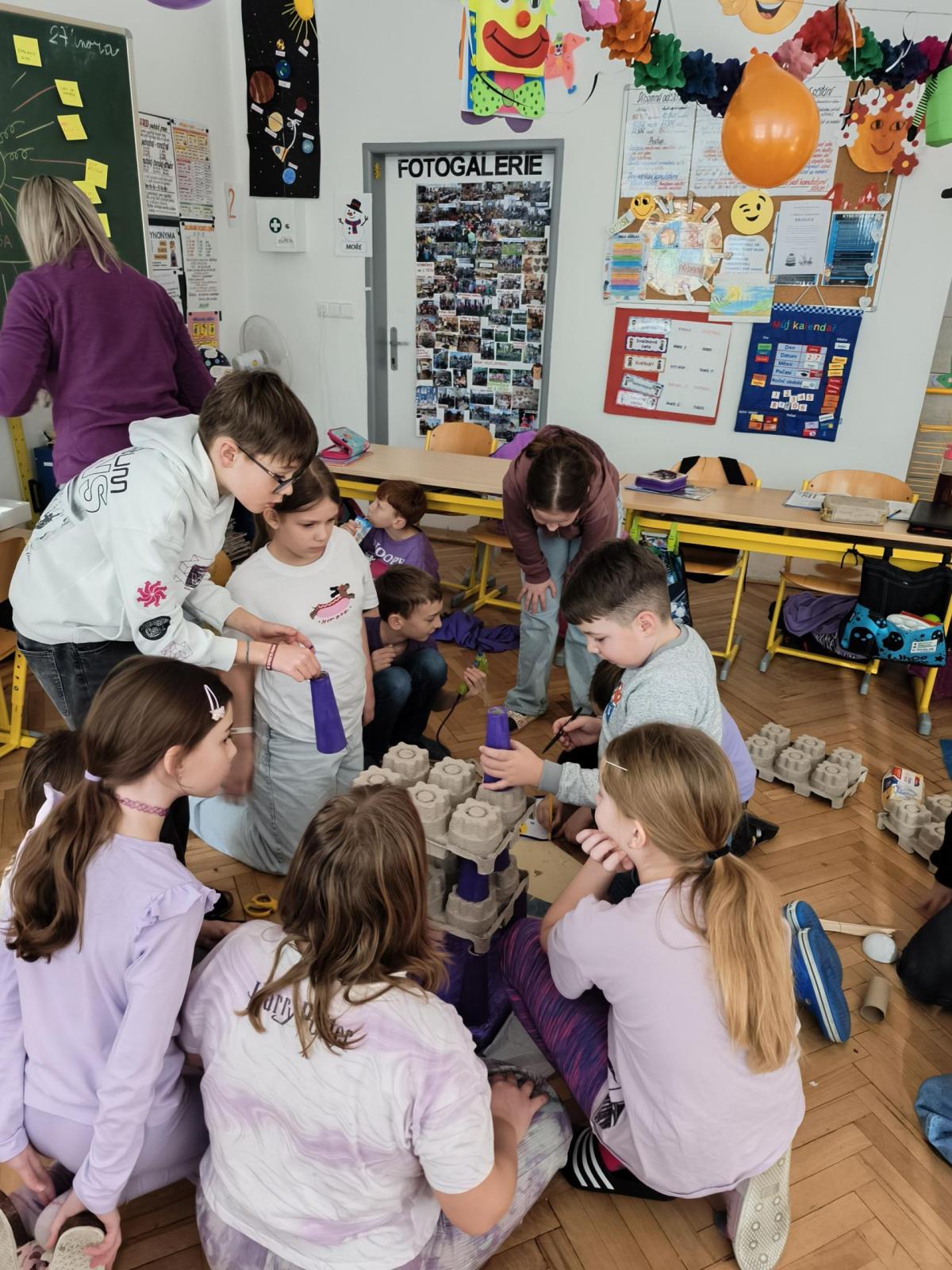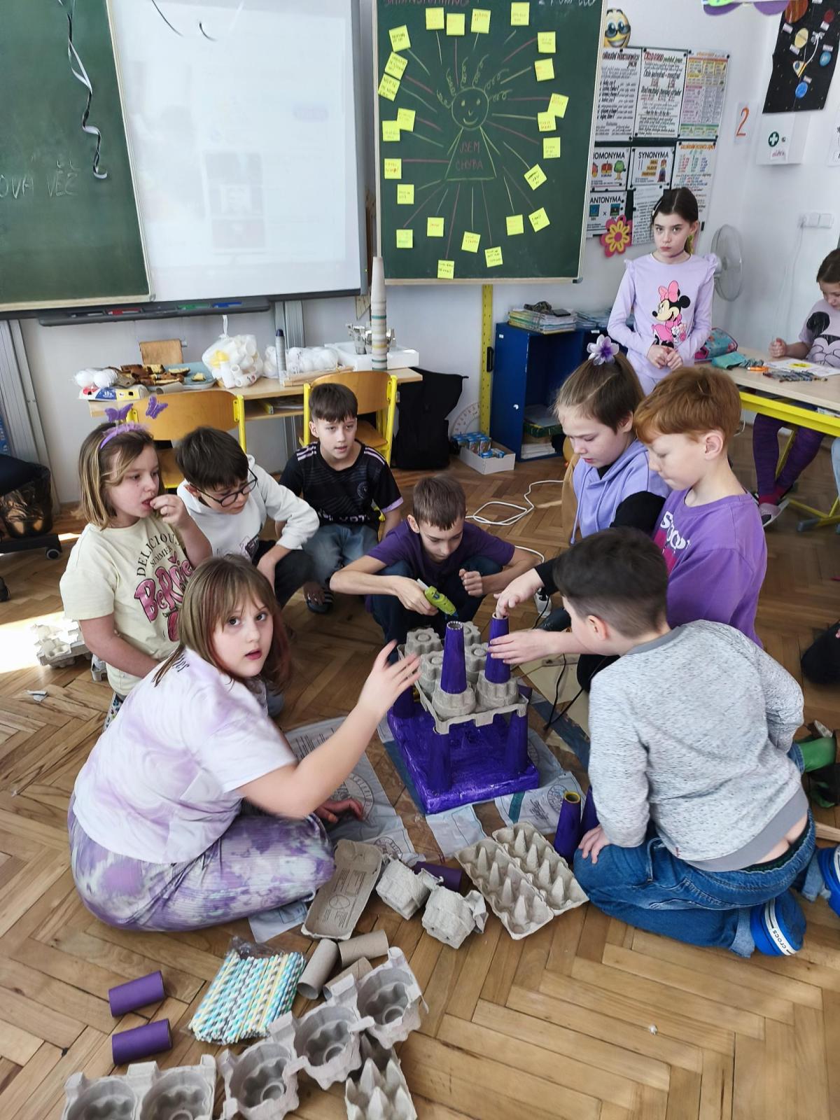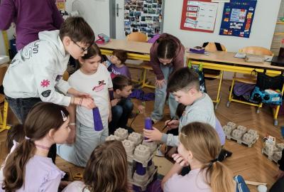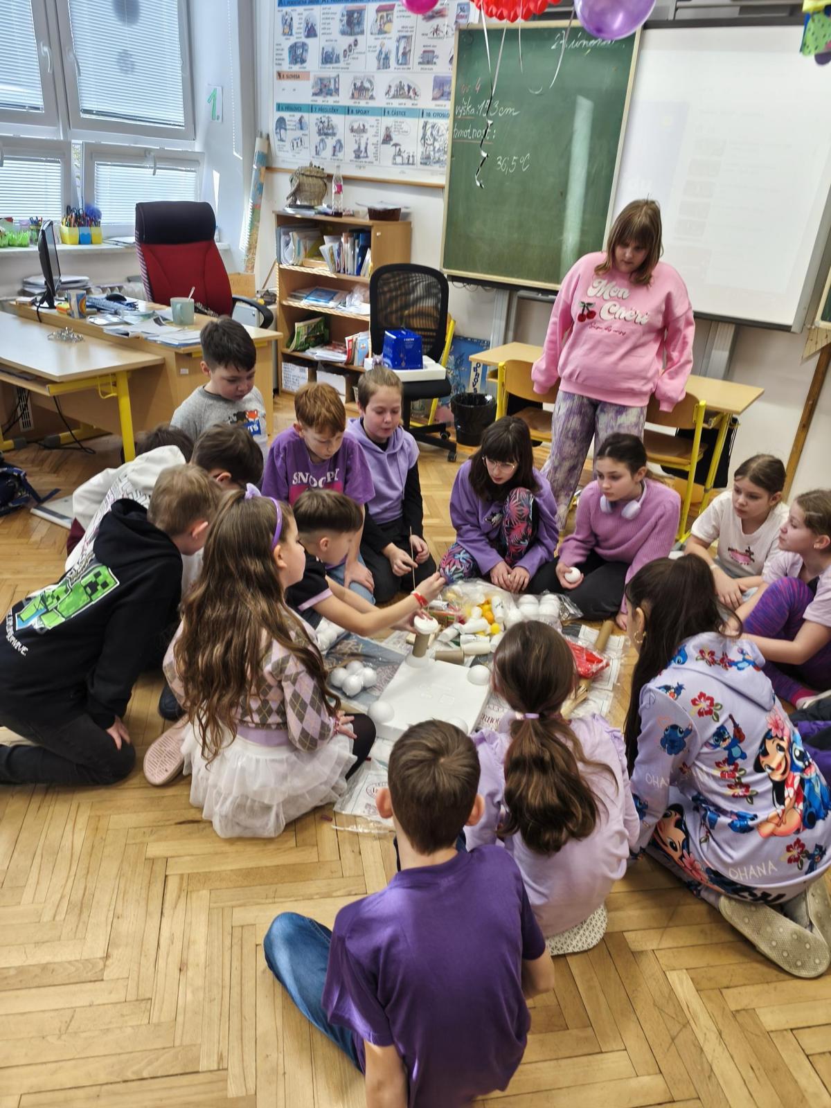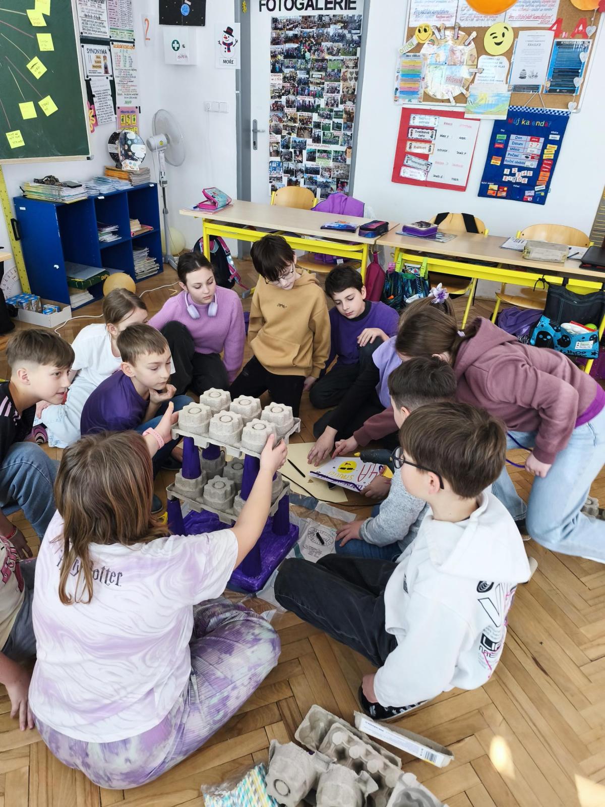V rámci "Týdne pro wellbeing" jsme měli za úkol sestavit co nejvyšší věž z jakéhokoliv materiálu. Tato aktivita vyžadovala sounáležitost, spolupráci a domluvu. Ze začátku jsme se nemohli dohodnout, z čeho věž uděláme - měli jsme k dispozici hodně materiálů. . . Ale nakonec jsme se domluvili a stavění bylo velmi příjemné, zajímavé a posílilo to naše vztahy ve třídě. Všichni jsme měli z výsledku naší práce radost.