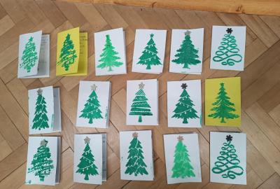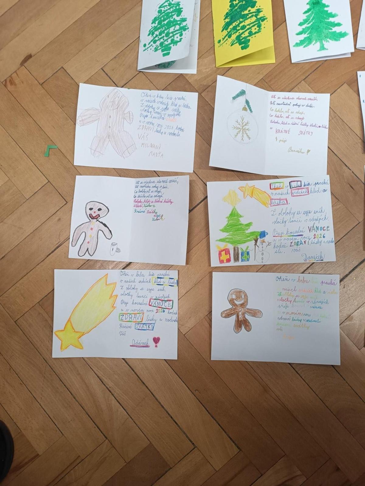 Pro rodiče jsme v adventním období vyrobili věšáky ze dřeva, kreativní kalendář na celý rok, vánoční přání z papíru. Snad se jim dárečky budou líbit.. .