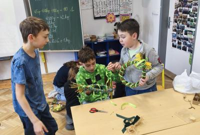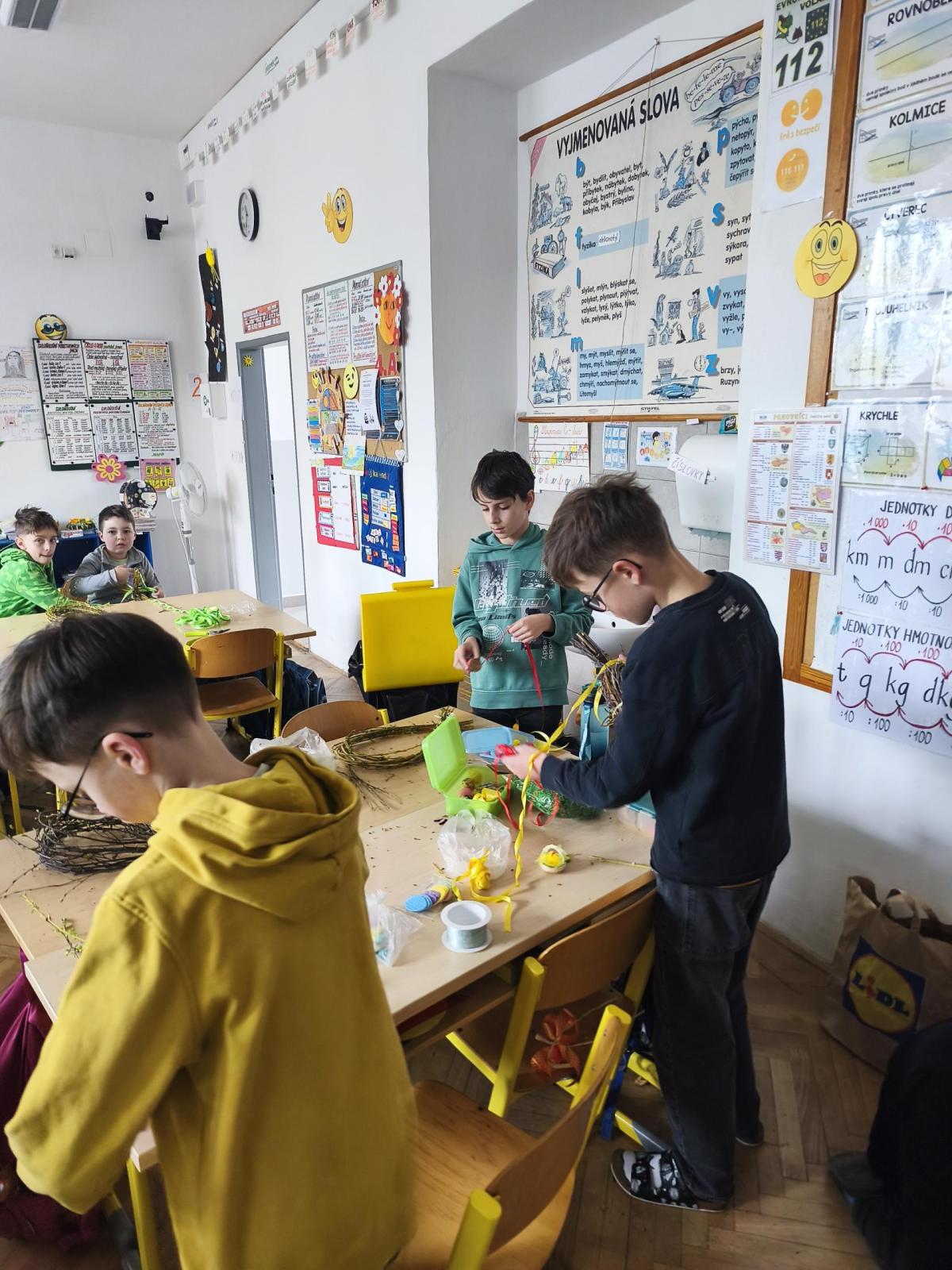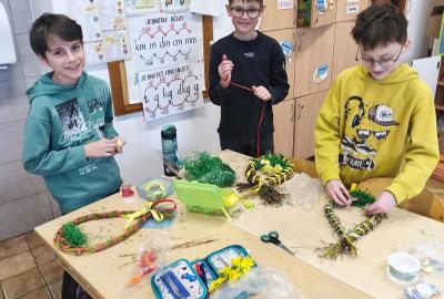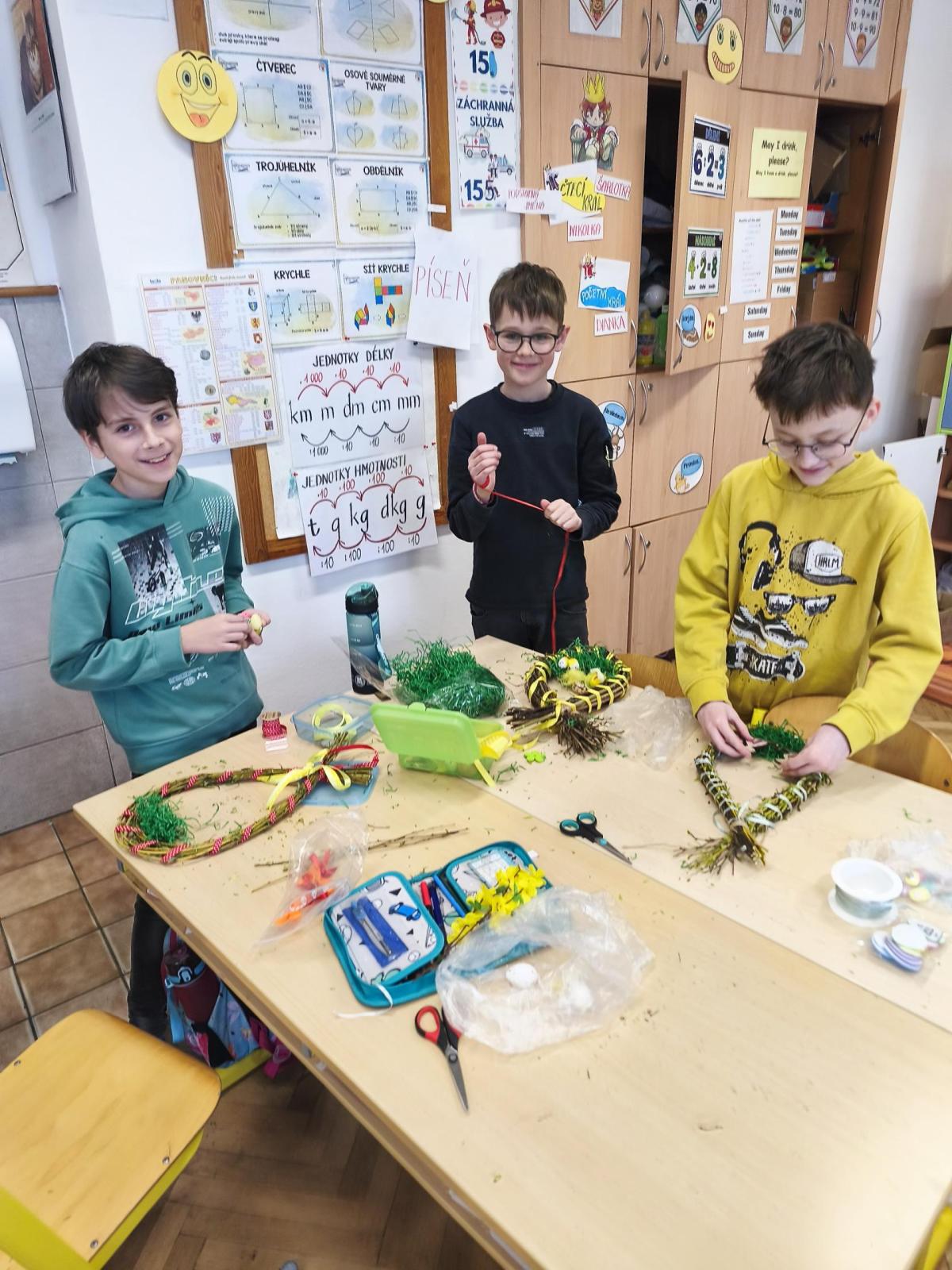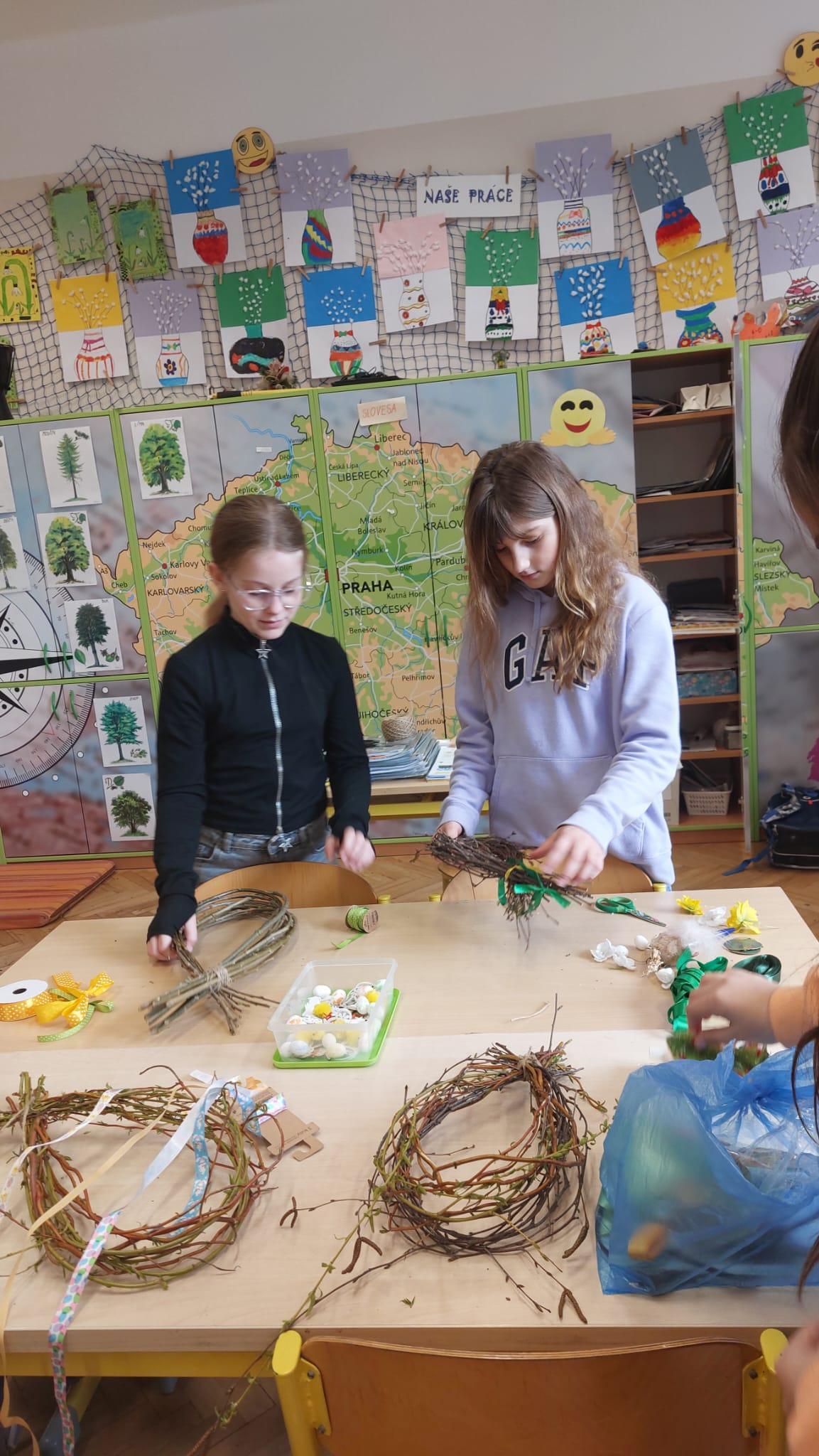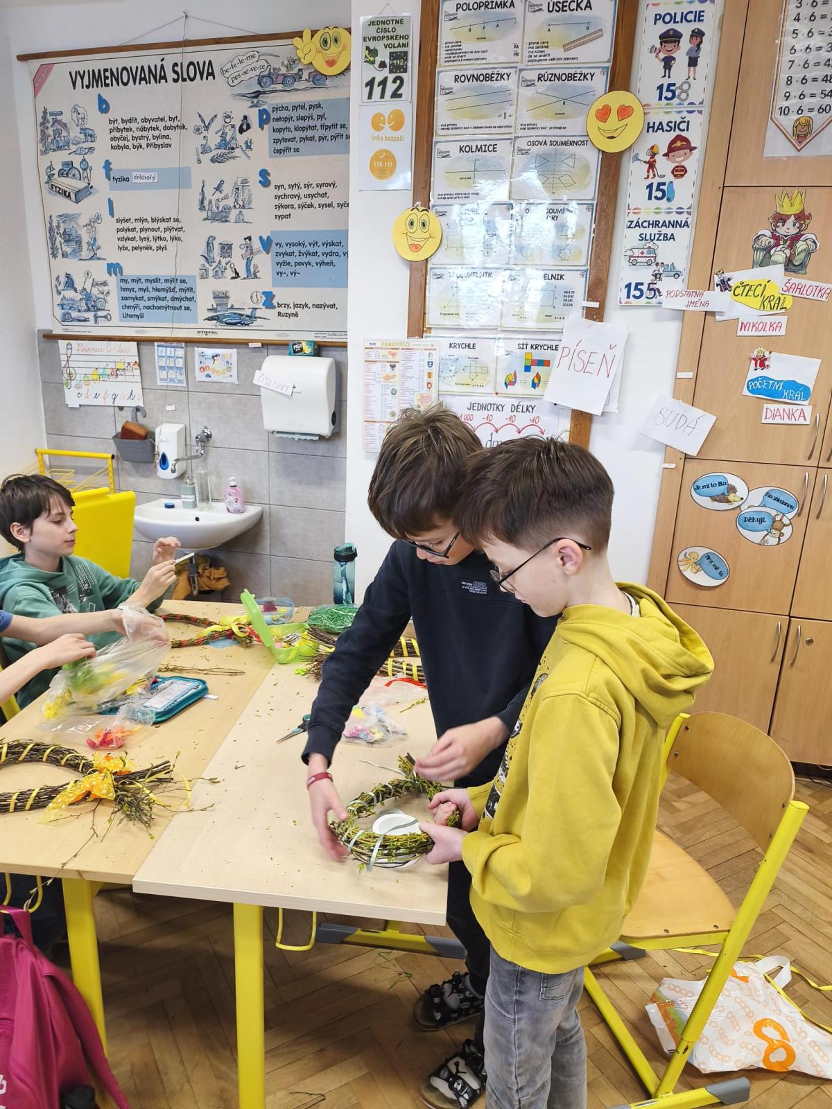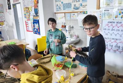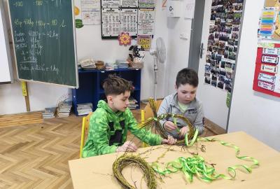 V úteý 31. března jsme si v rámci VV a PČ vyrobili z protí velikonoční věneček. Nejpracnější bylo proutky svázat k sobě do tvaru kapky. Ale nakonec se to všem povedlo a ozdobení už bylo jednodušší. Každý výrobek byl originální.