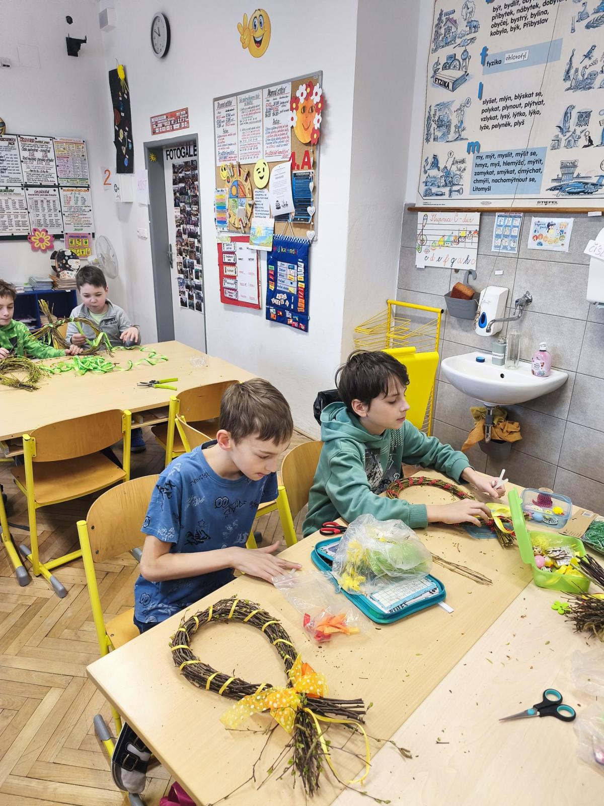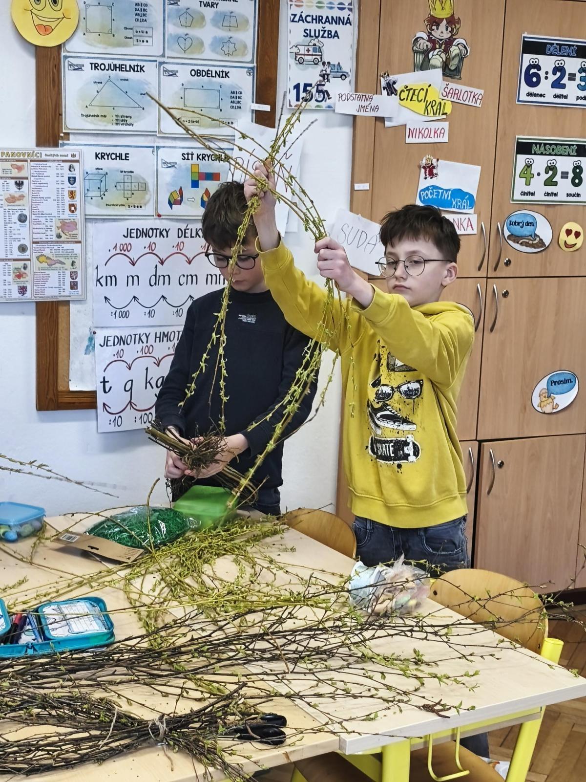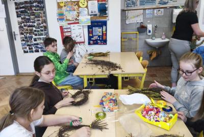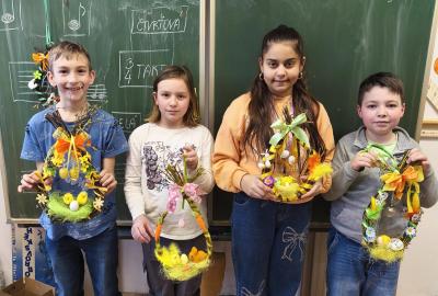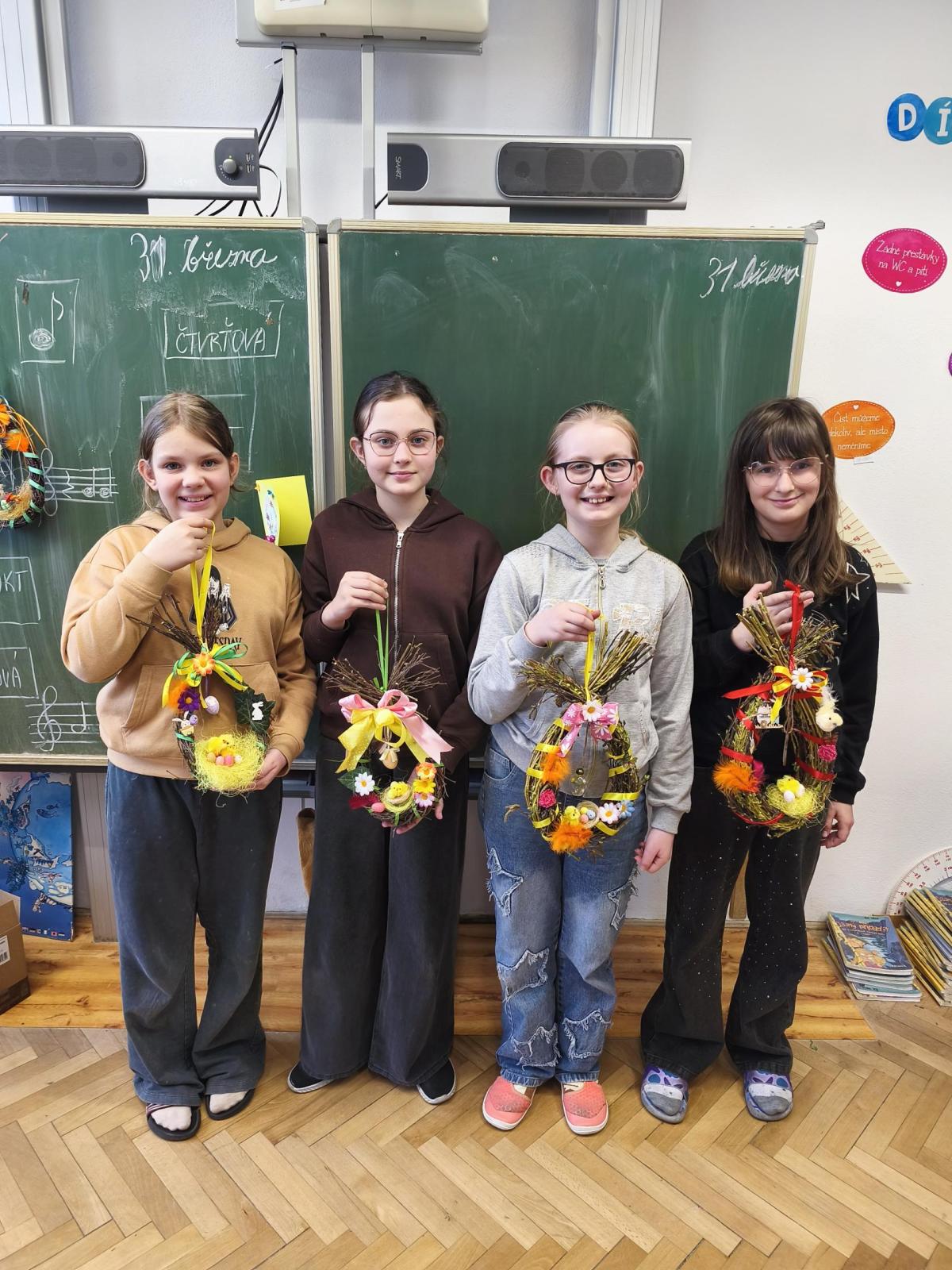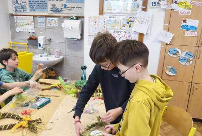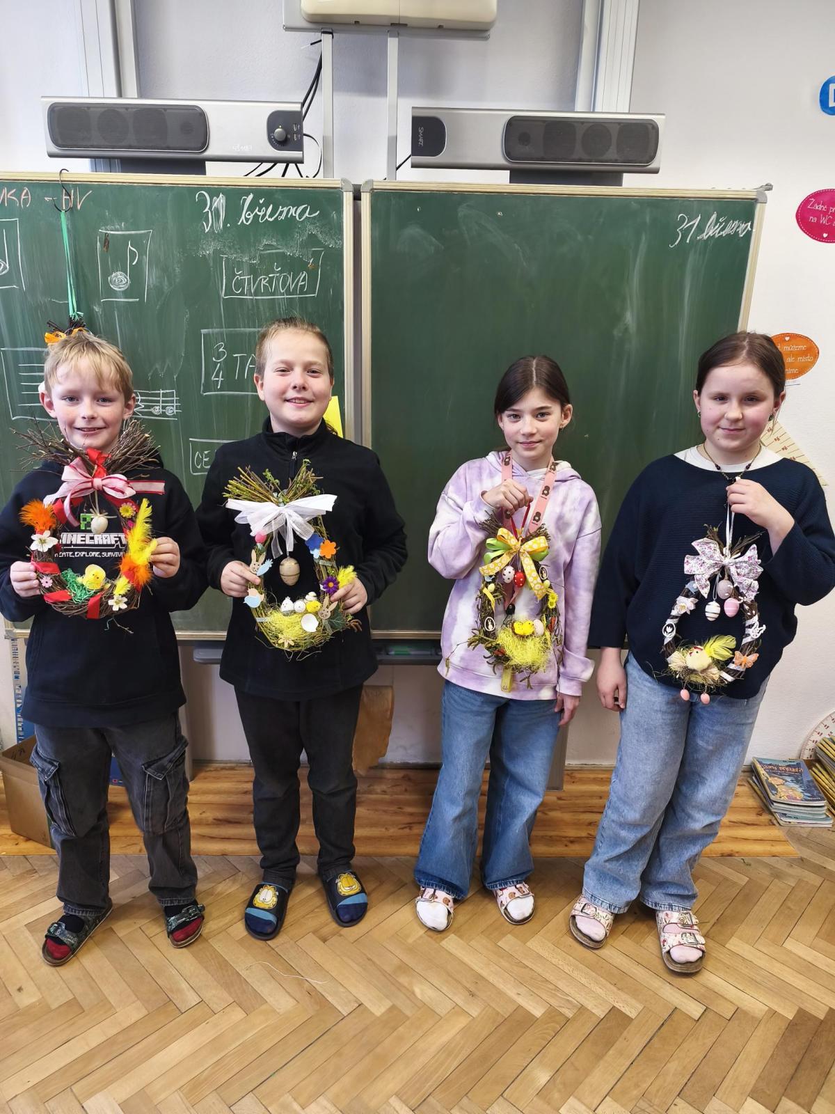 V úteý 31. března jsme si v rámci VV a PČ vyrobili z protí velikonoční věneček. Nejpracnější bylo proutky svázat k sobě do tvaru kapky. Ale nakonec se to všem povedlo a ozdobení už bylo jednodušší. Každý výrobek byl originální.