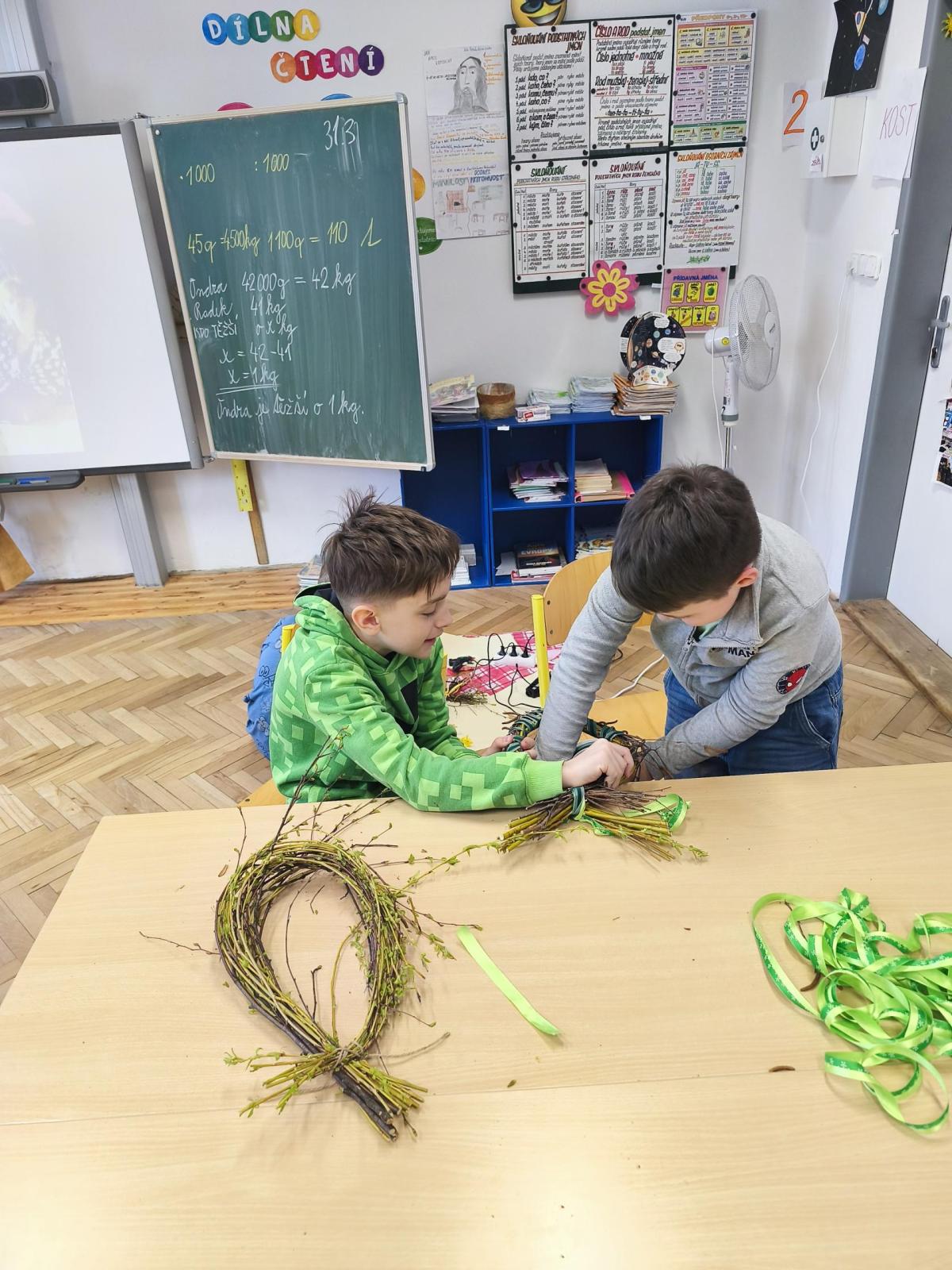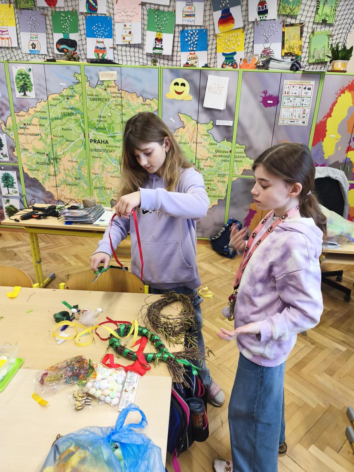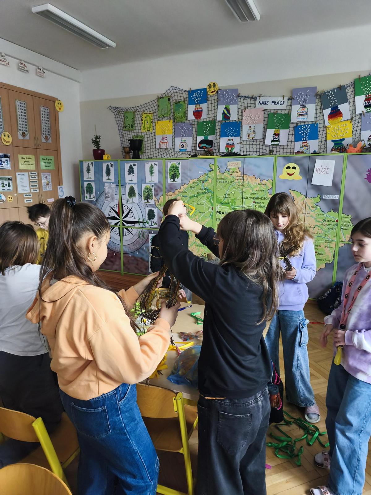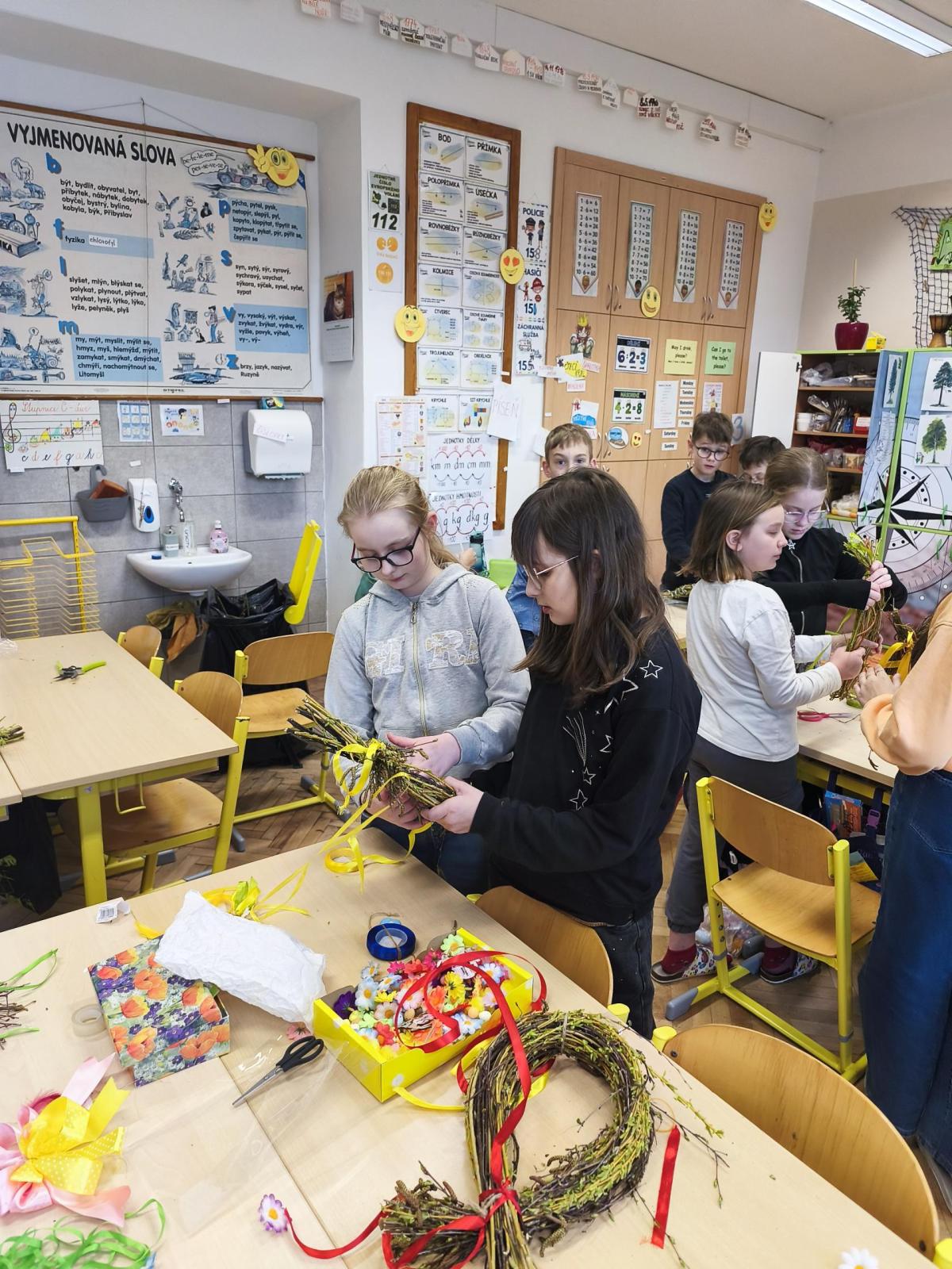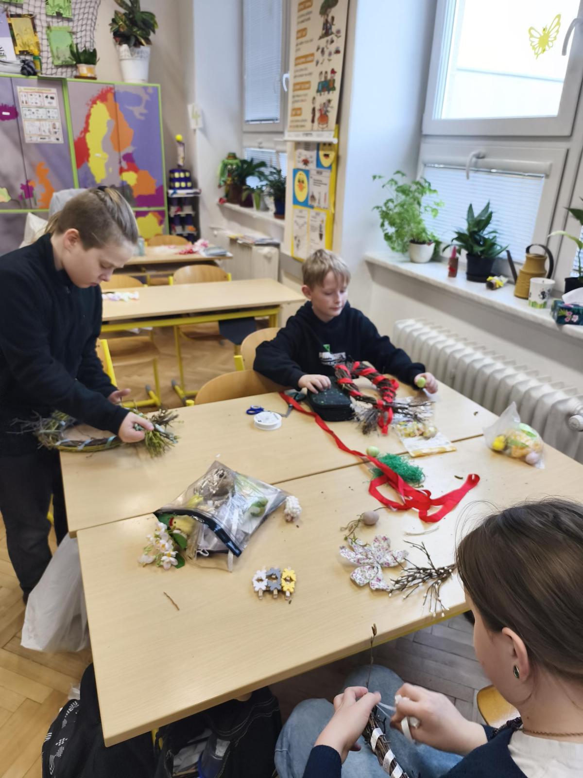 V úteý 31. března jsme si v rámci VV a PČ vyrobili z protí velikonoční věneček. Nejpracnější bylo proutky svázat k sobě do tvaru kapky. Ale nakonec se to všem povedlo a ozdobení už bylo jednodušší. Každý výrobek byl originální.