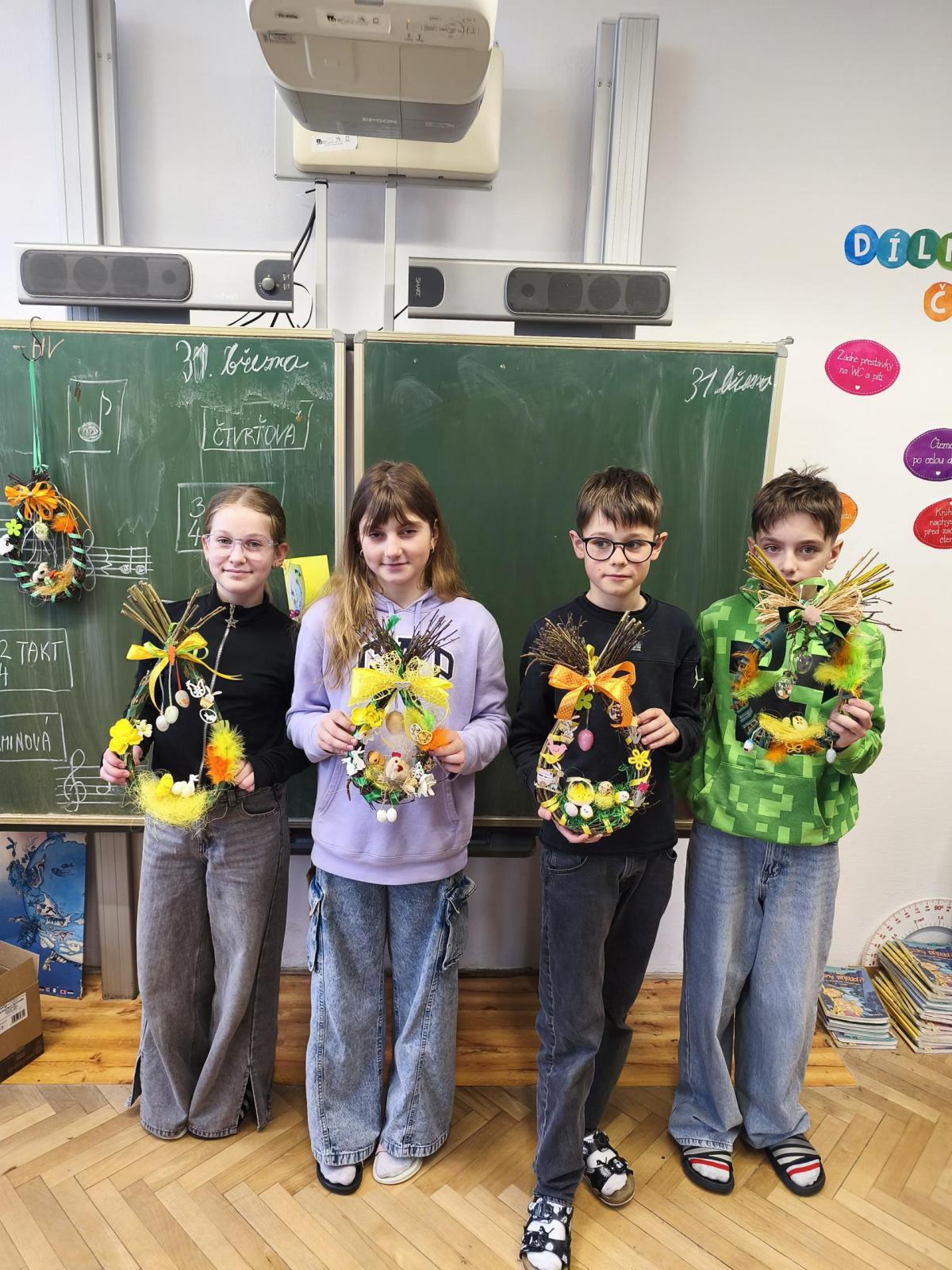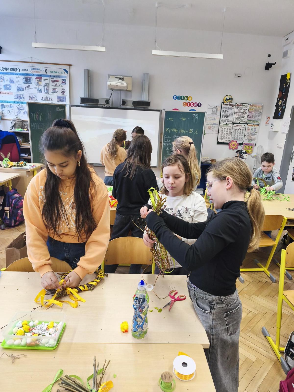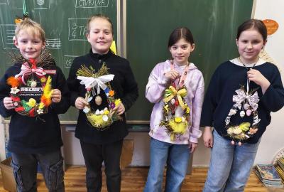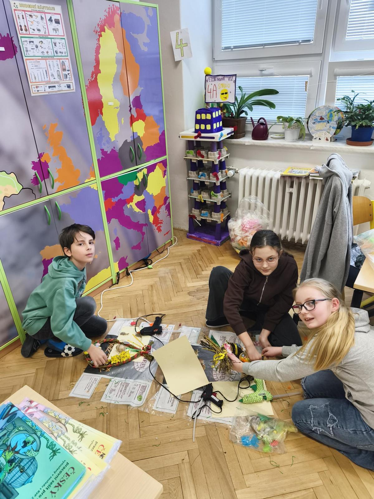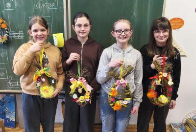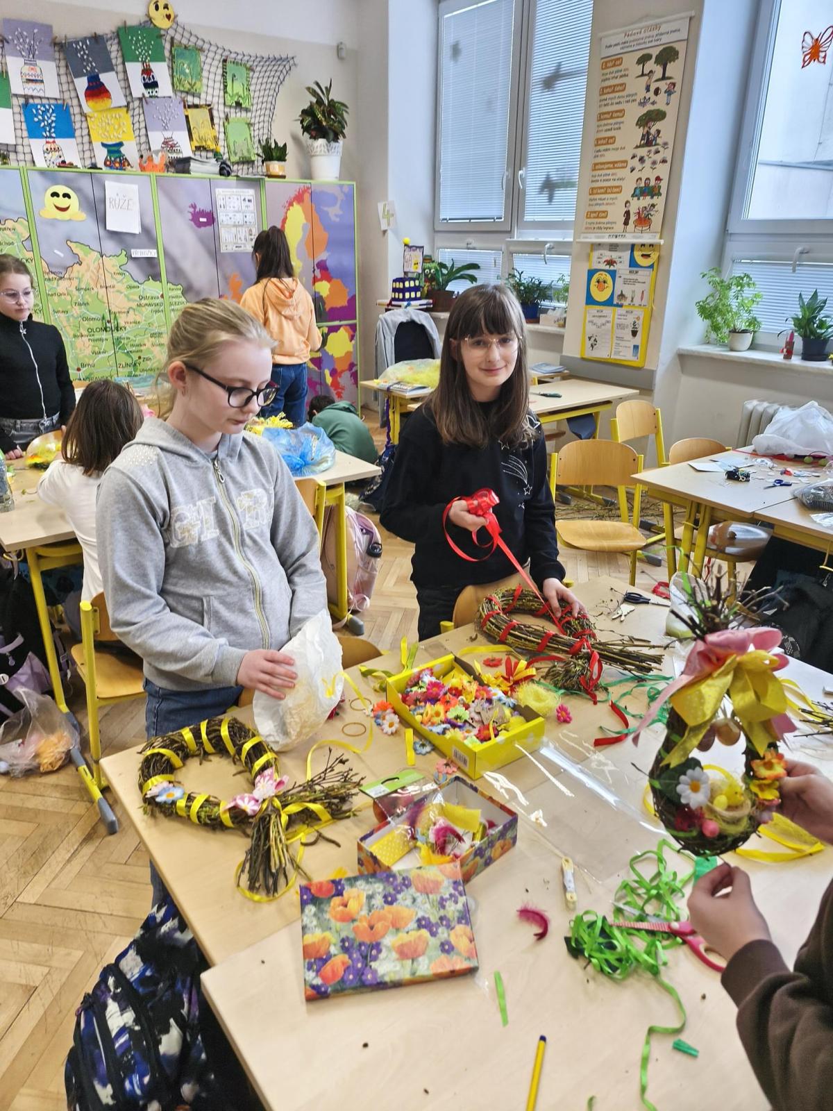 V úteý 31. března jsme si v rámci VV a PČ vyrobili z protí velikonoční věneček. Nejpracnější bylo proutky svázat k sobě do tvaru kapky. Ale nakonec se to všem povedlo a ozdobení už bylo jednodušší. Každý výrobek byl originální.