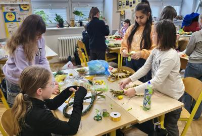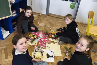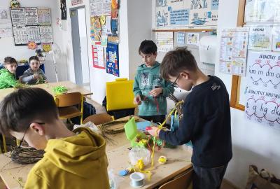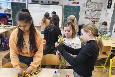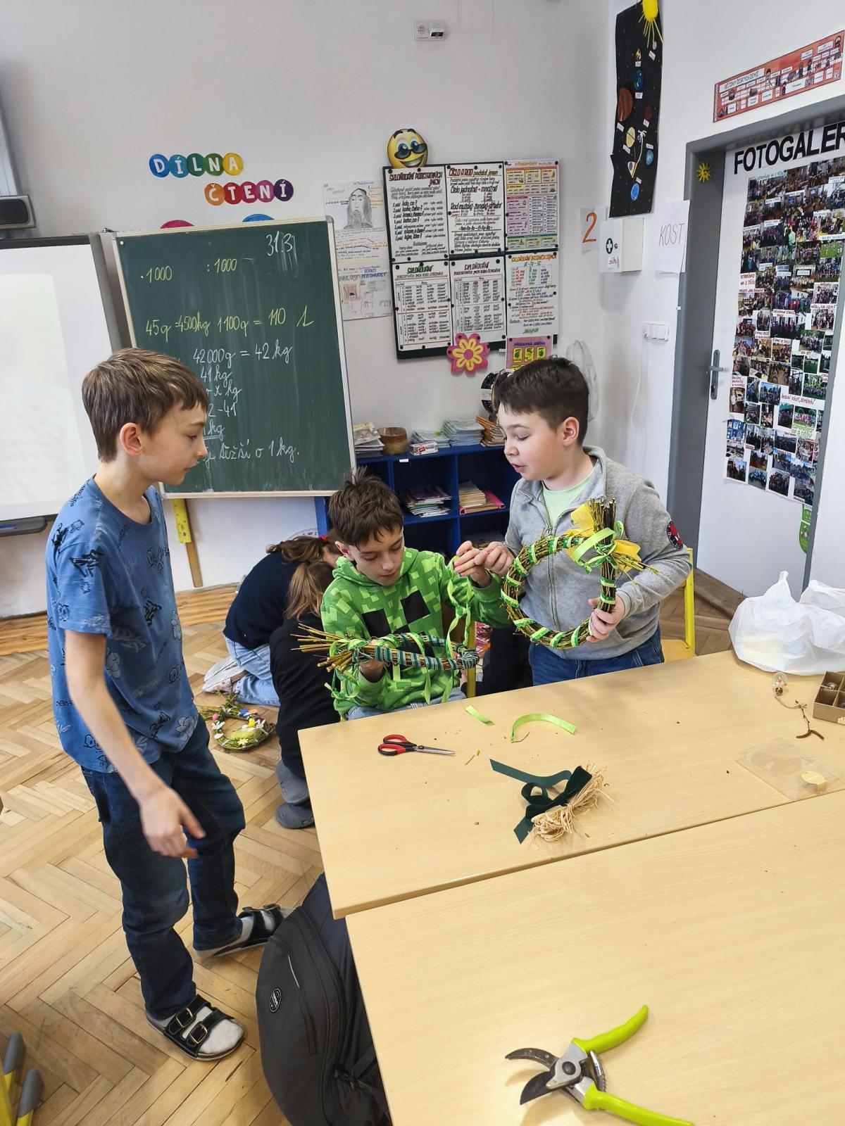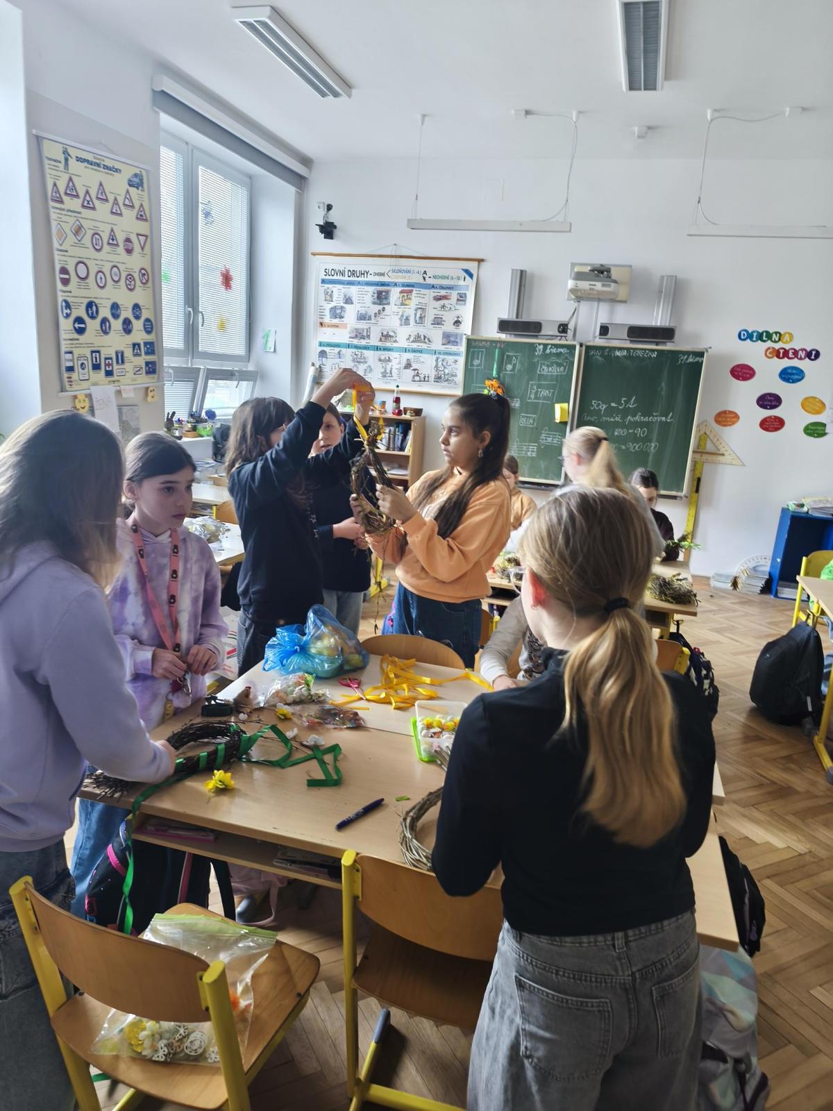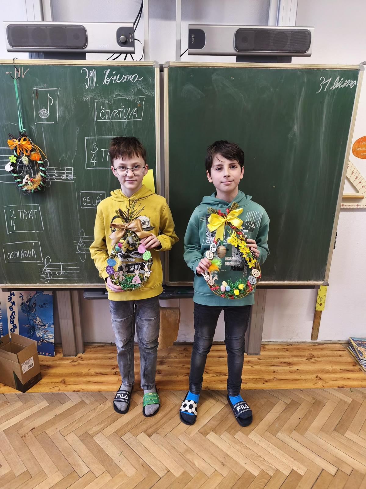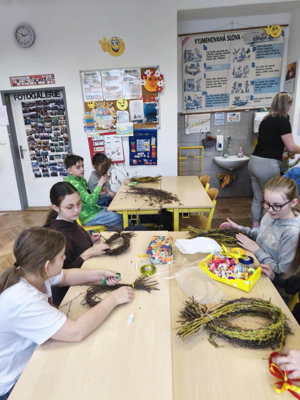 V úteý 31. března jsme si v rámci VV a PČ vyrobili z protí velikonoční věneček. Nejpracnější bylo proutky svázat k sobě do tvaru kapky. Ale nakonec se to všem povedlo a ozdobení už bylo jednodušší. Každý výrobek byl originální.