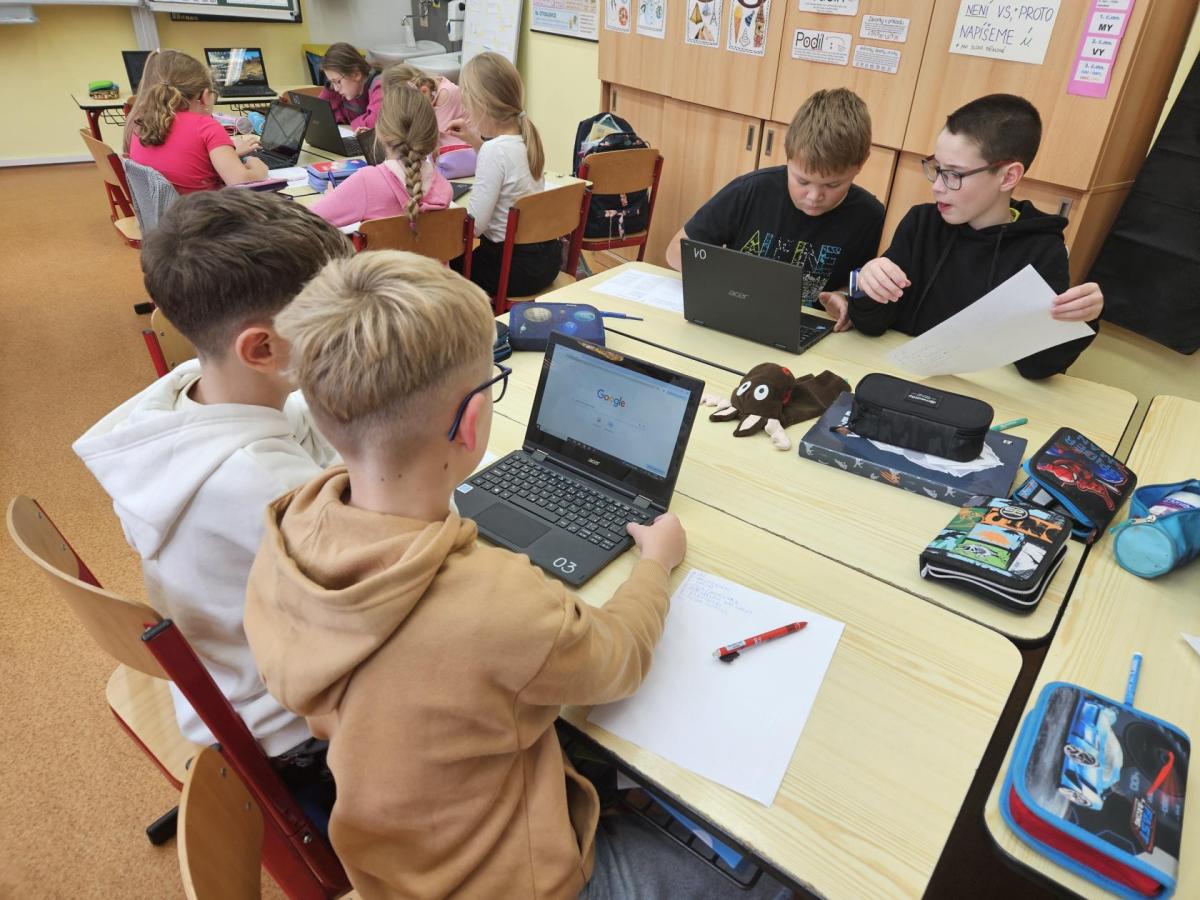 Děti si na internetu vyhledávaly informace, které nenašly v textech v učebnici ani v pracovním sešitu. Učily se správně zadat ve vyhledávači klíčovou informaci a také třídit a ověřovat získané odpovědi.