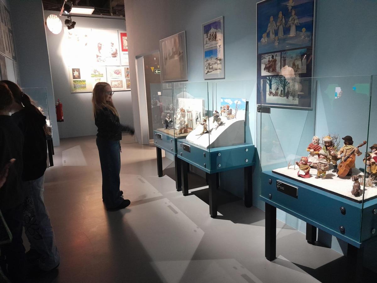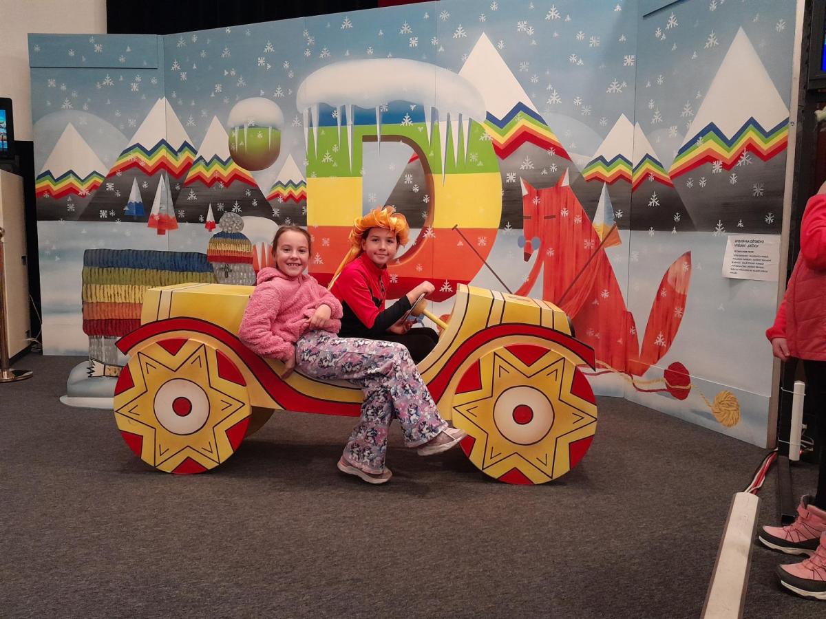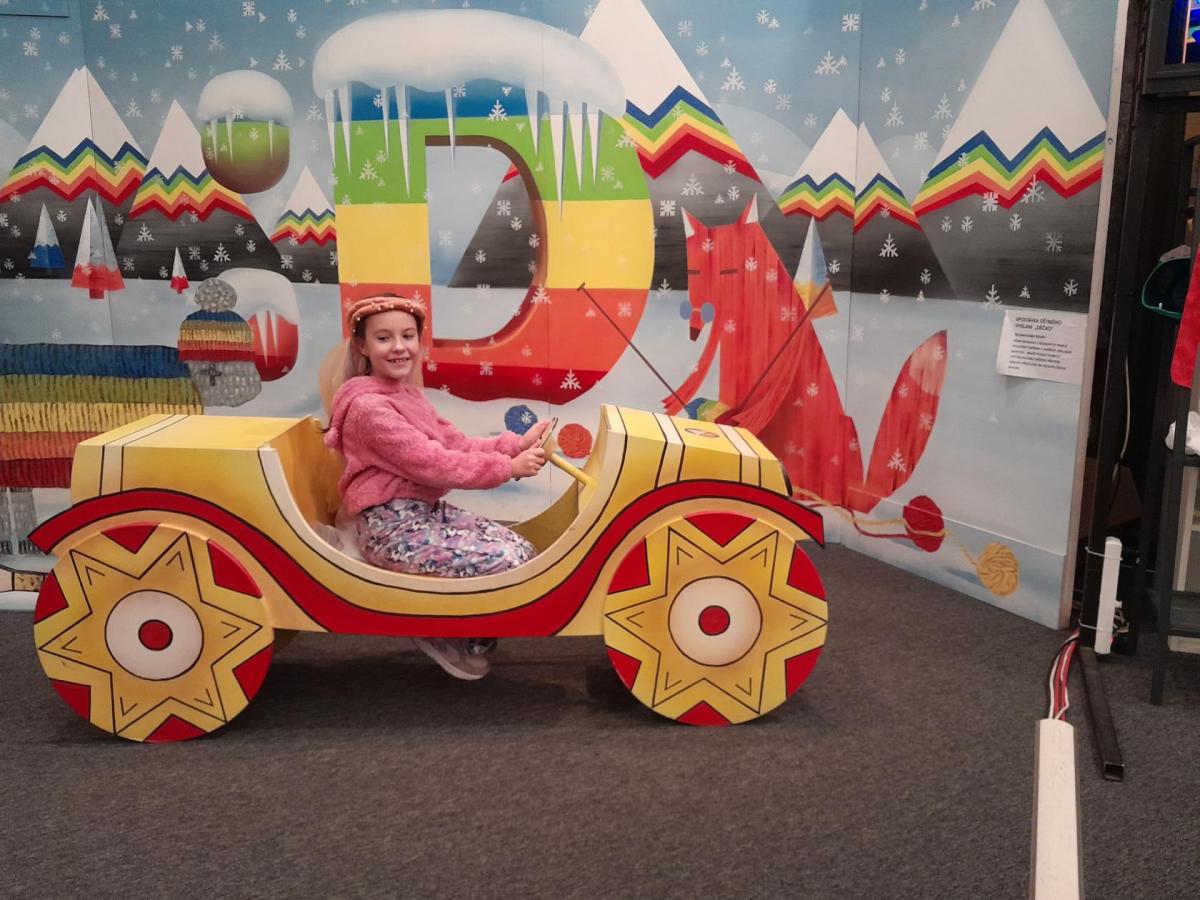 Po příjezdu k České televizi jsme se prošli po okolí, navštívili Galerii ČT, kde probíhá tématická výstava Kouzlo loutek a poezie obrazu. Děti si prohlédly výstavu a také se mohly podívat na pohádku, poslechnout vyprávění, zkusit upravovat obraz, obléci se za klauna, vyfotit se....Po zhlédnutí celé výstavy mohly navštívit obchod ČT a zakoupit si upomínkové předměty.