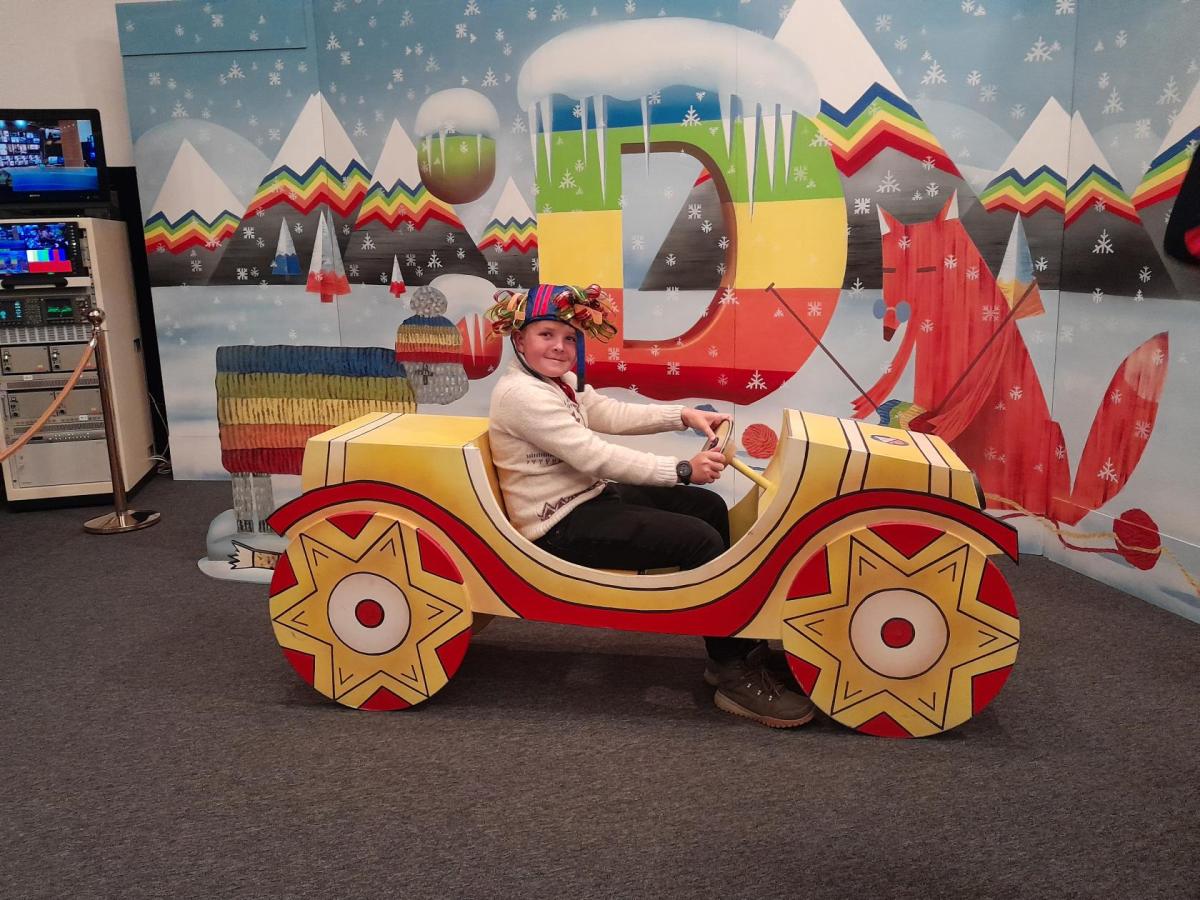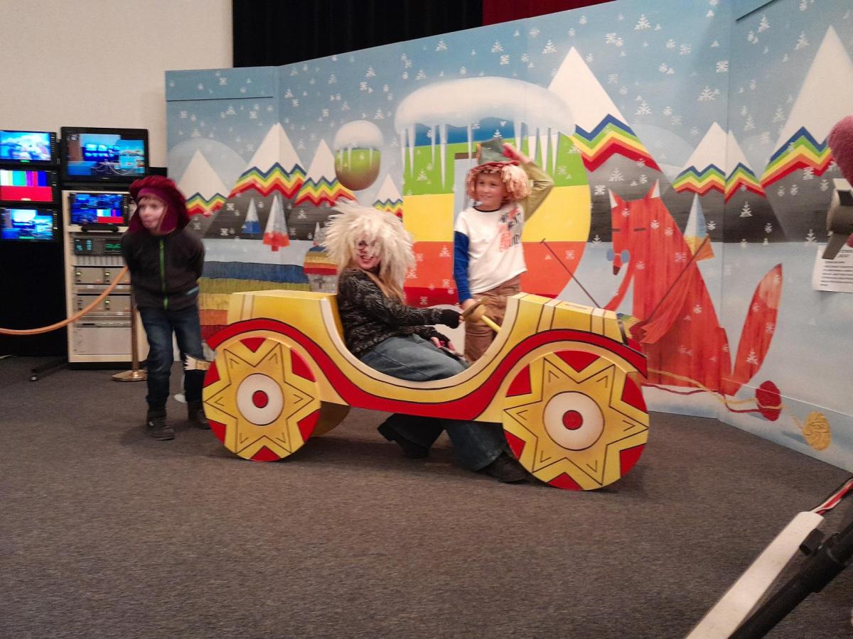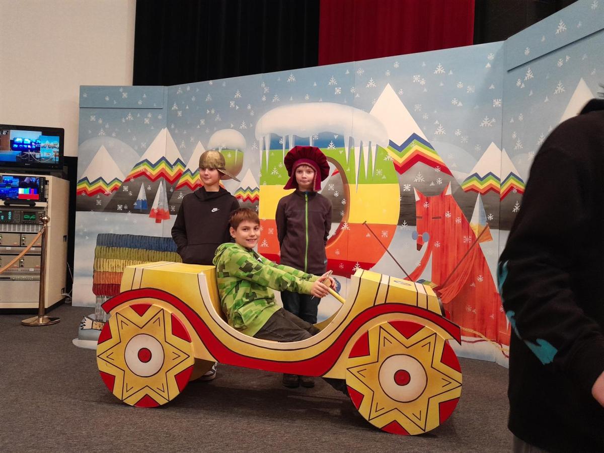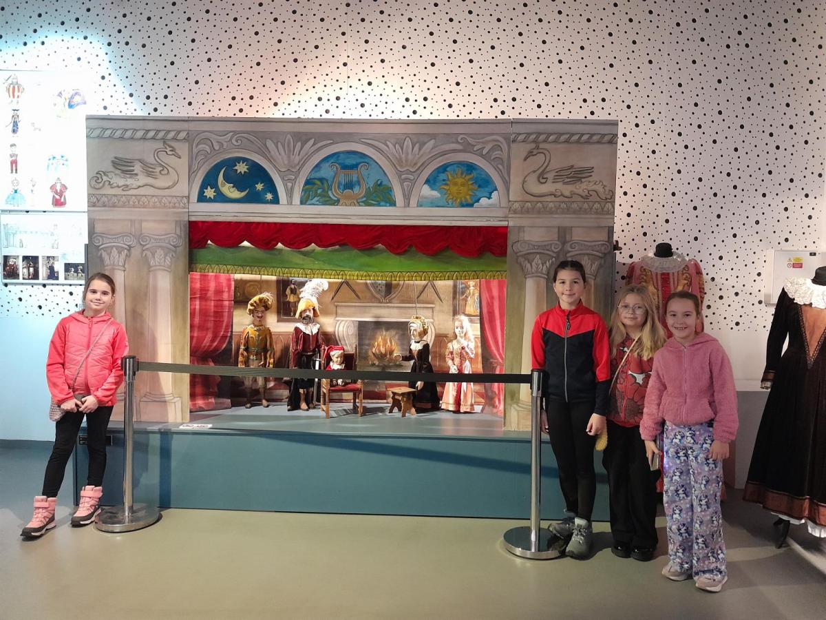 Po příjezdu k České televizi jsme se prošli po okolí, navštívili Galerii ČT, kde probíhá tématická výstava Kouzlo loutek a poezie obrazu. Děti si prohlédly výstavu a také se mohly podívat na pohádku, poslechnout vyprávění, zkusit upravovat obraz, obléci se za klauna, vyfotit se....Po zhlédnutí celé výstavy mohly navštívit obchod ČT a zakoupit si upomínkové předměty.