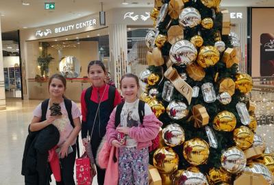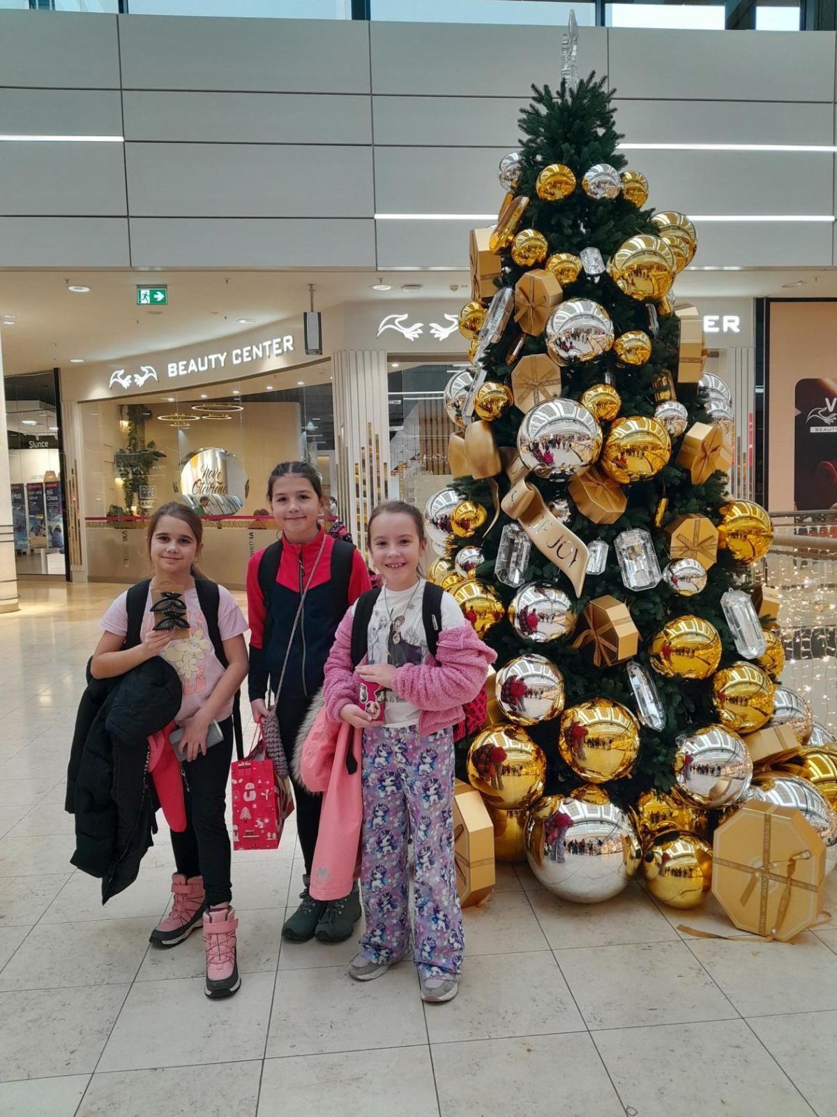 Jelikož se blížil čas oběda, vydali jsme se občerstvit do nedalekého obchodního cetra, které zářilo záplavou ozdob, stromečků a žárovek.