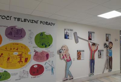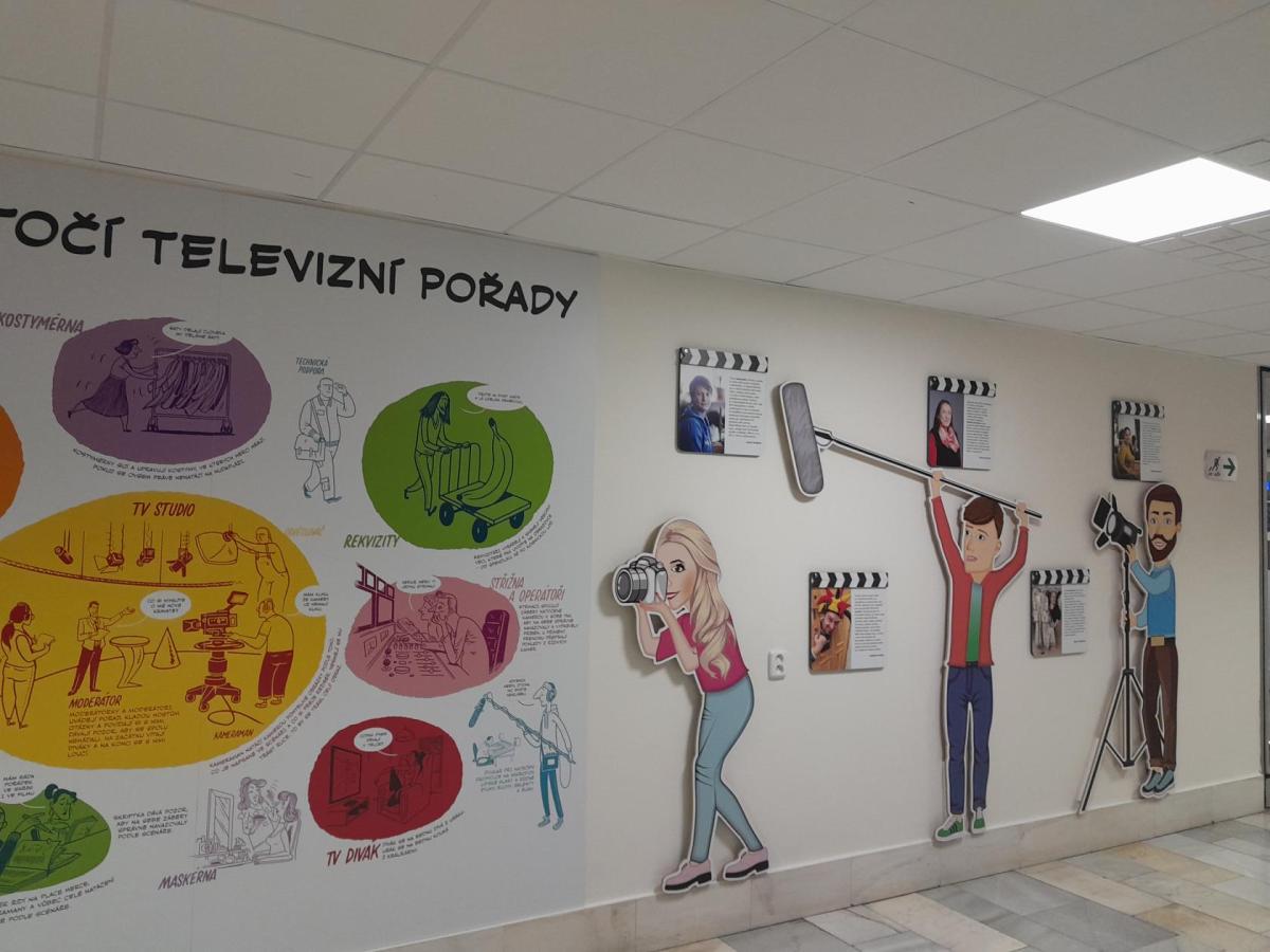 Navštívili jsme upravený sál, kde jsou paruky, zpravodajské studio, režie, kamery, expozice historických televizorů a mnoho dalšího. V průběhu prohlídky jsme viděli krátký film o ČT, zmenšený model všech budov na Kavčích horách. Prošli jsme studia, kde se natáčelo a mohli jsme tedy sledovat, jak vznikají pořady. Také jsme potkávali známé osobnosti a vše si mohli nafotit.