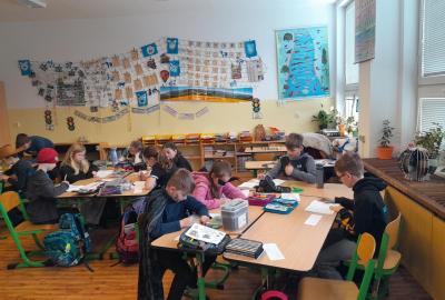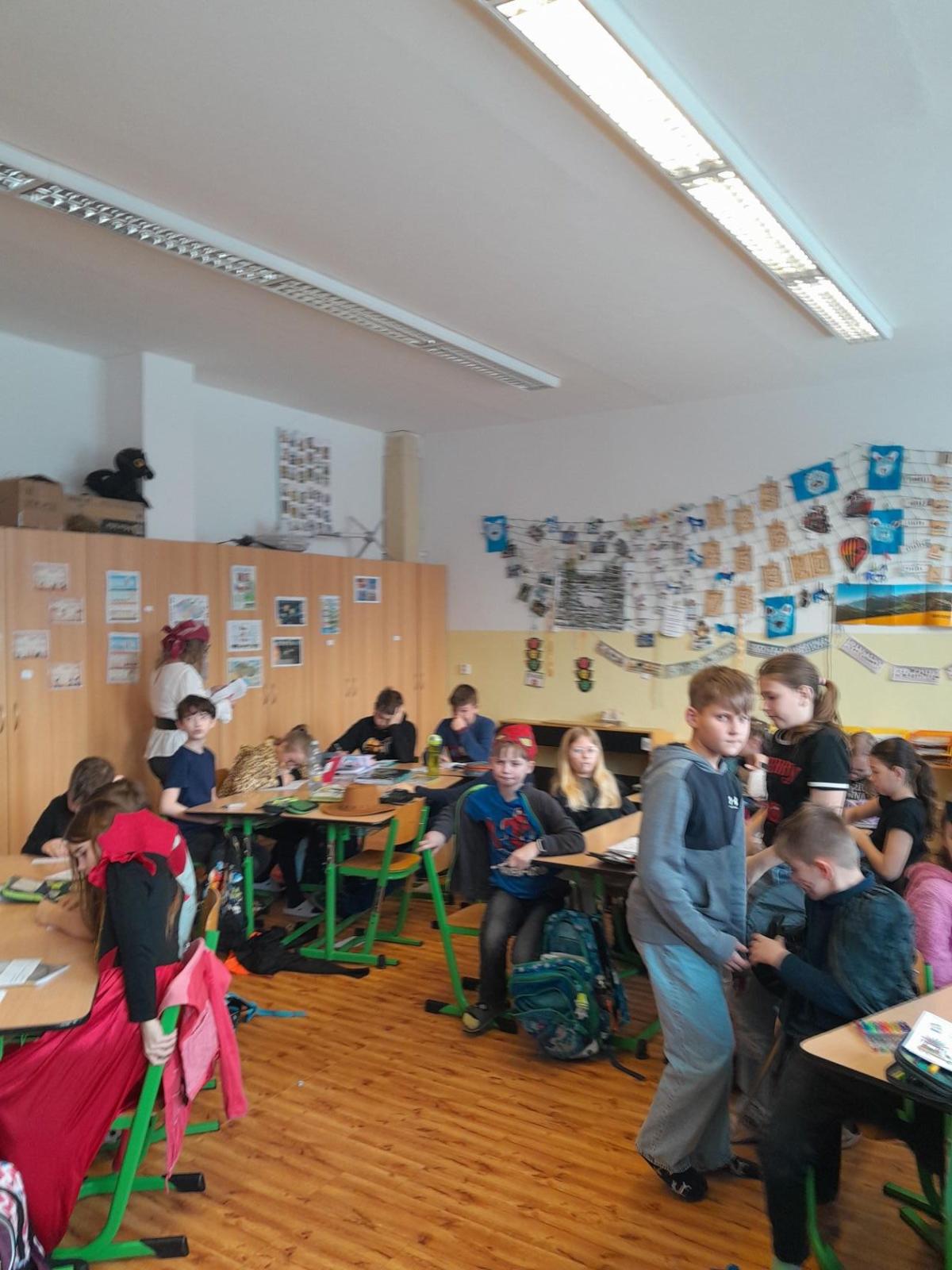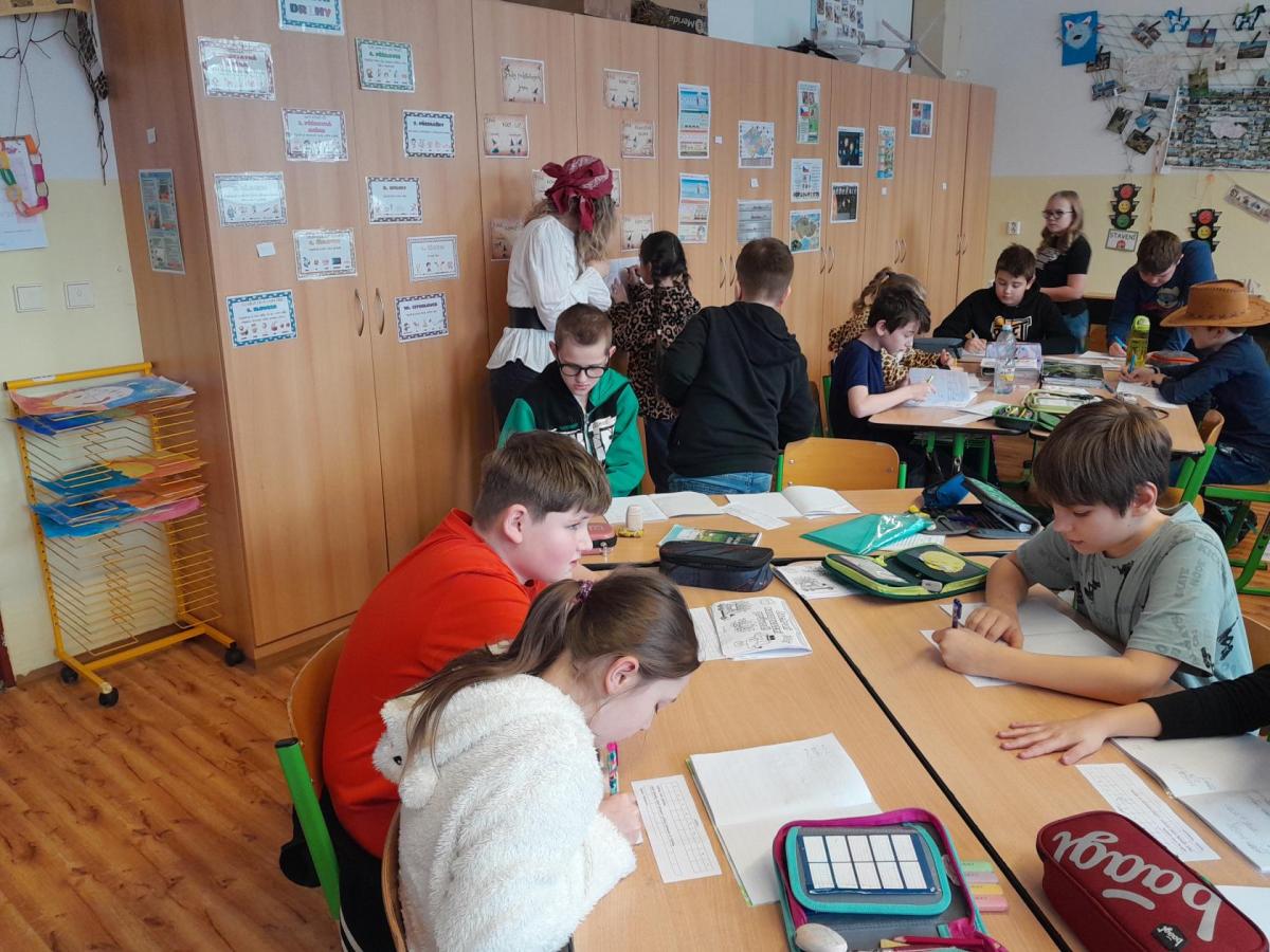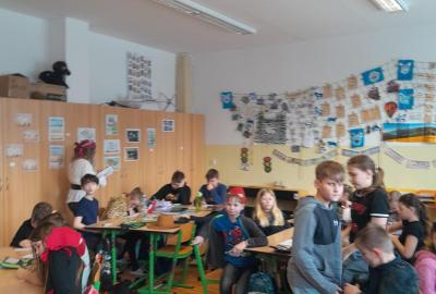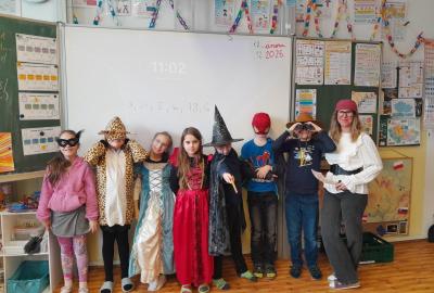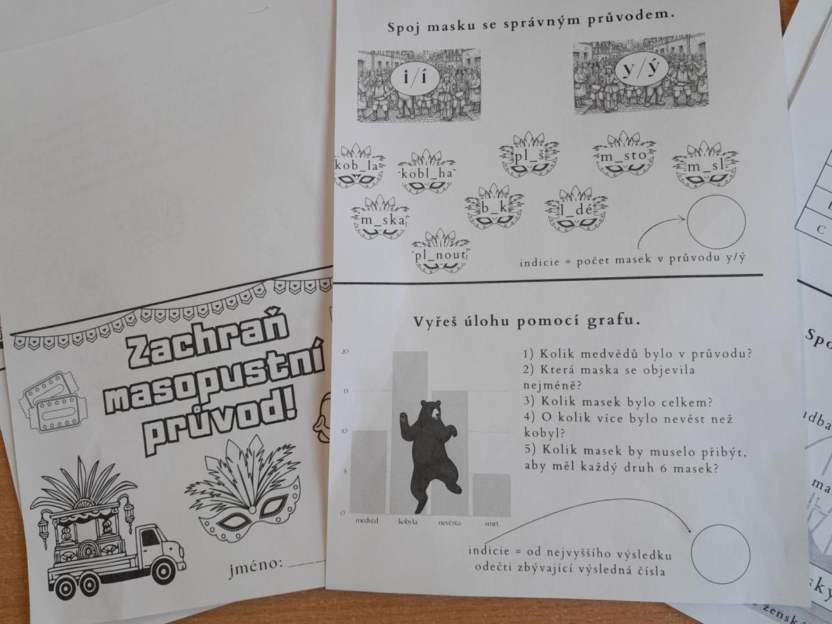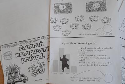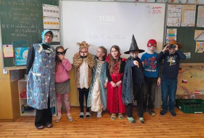 Společně jsme v průběhu dne řešili indicie ke hře : Zachraň masopustní průvod. Také děti vymýšlely hádanky, Hádej, jaká jsem maska. Den ve škole nám zábavně a rychle utekl.