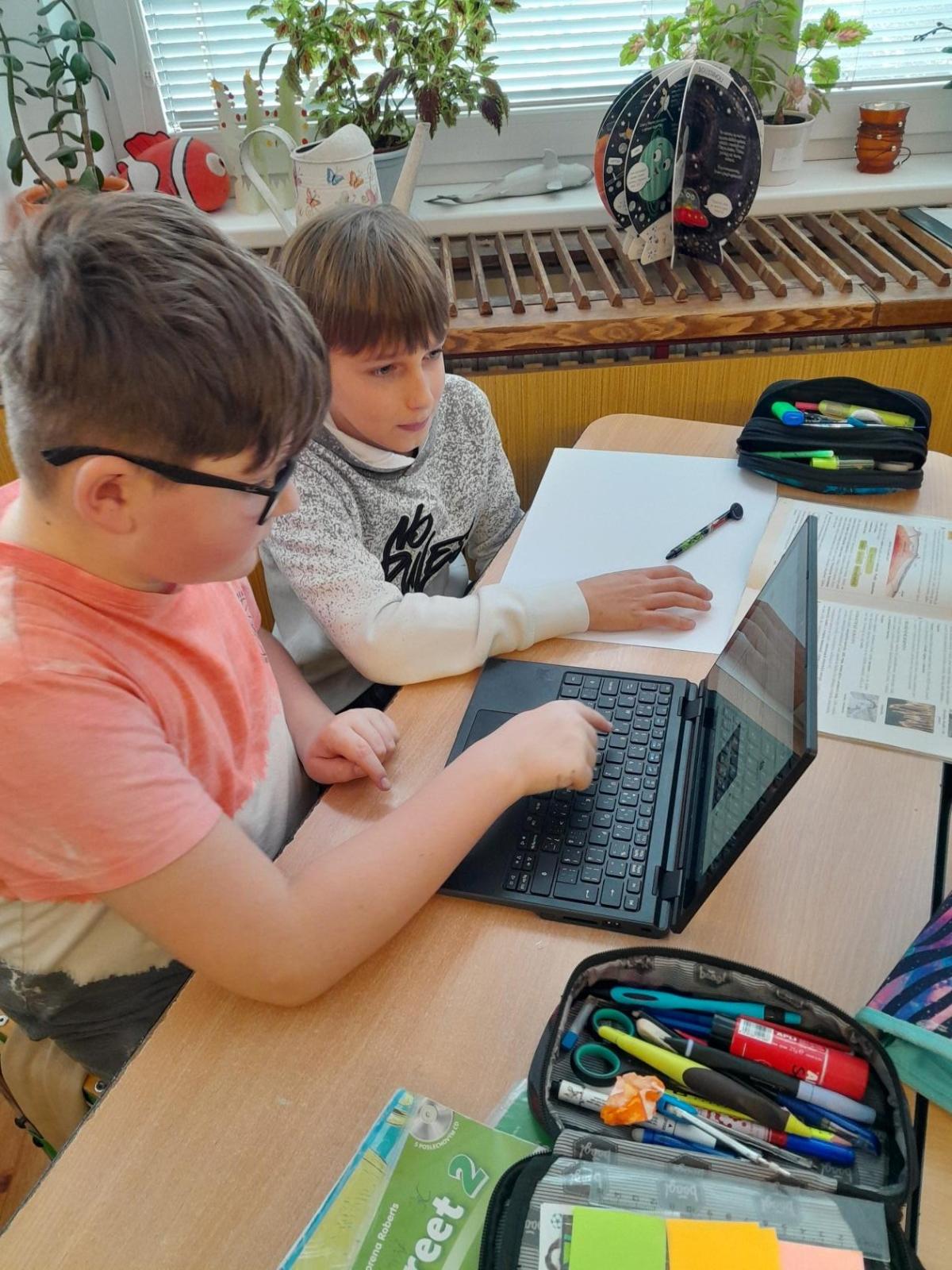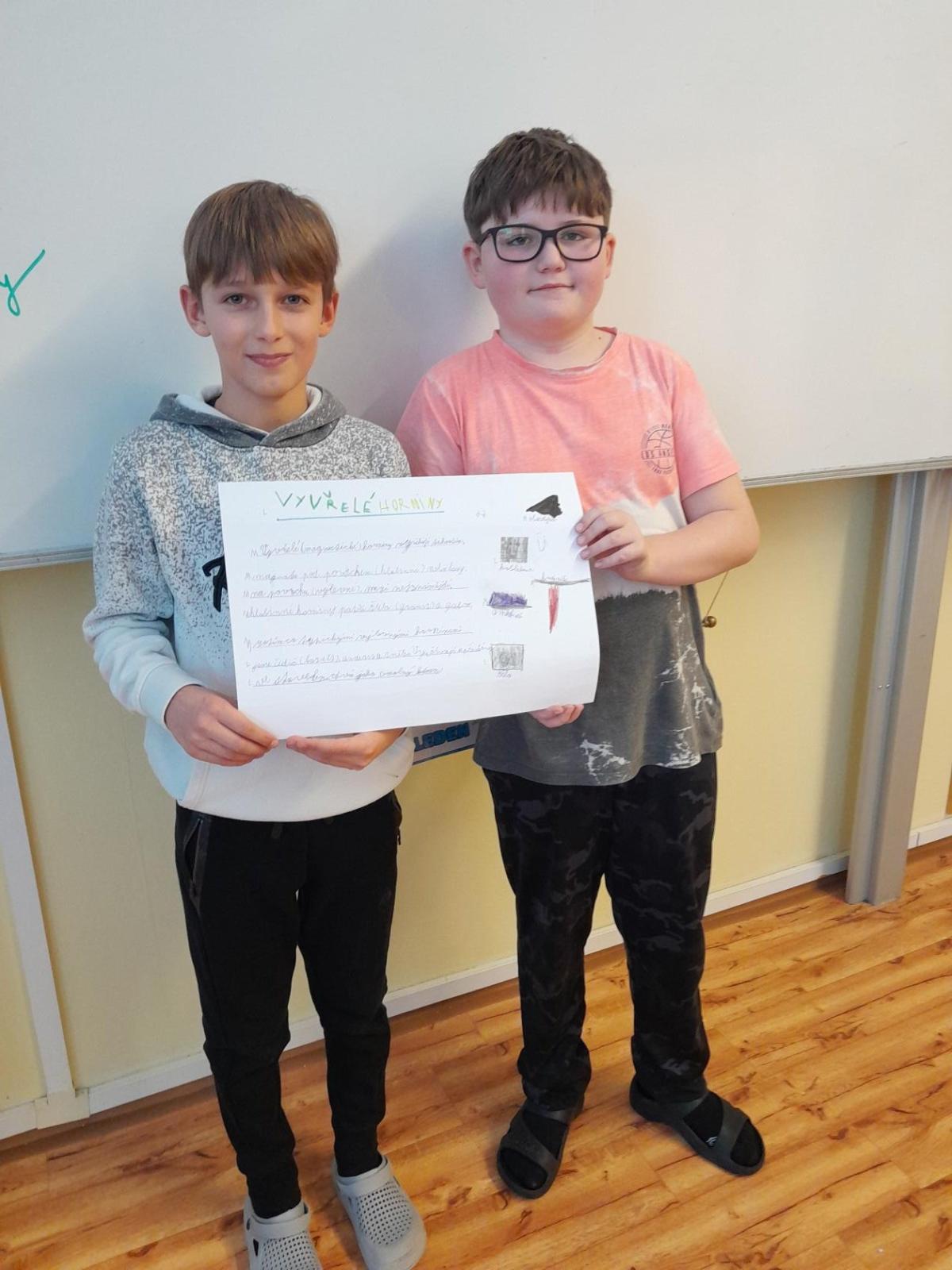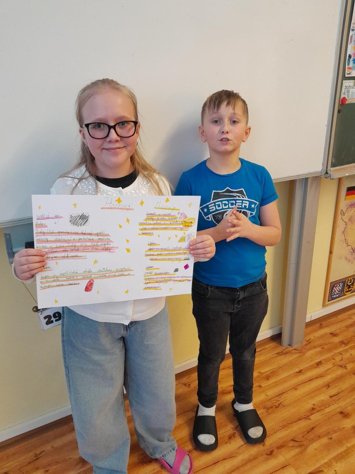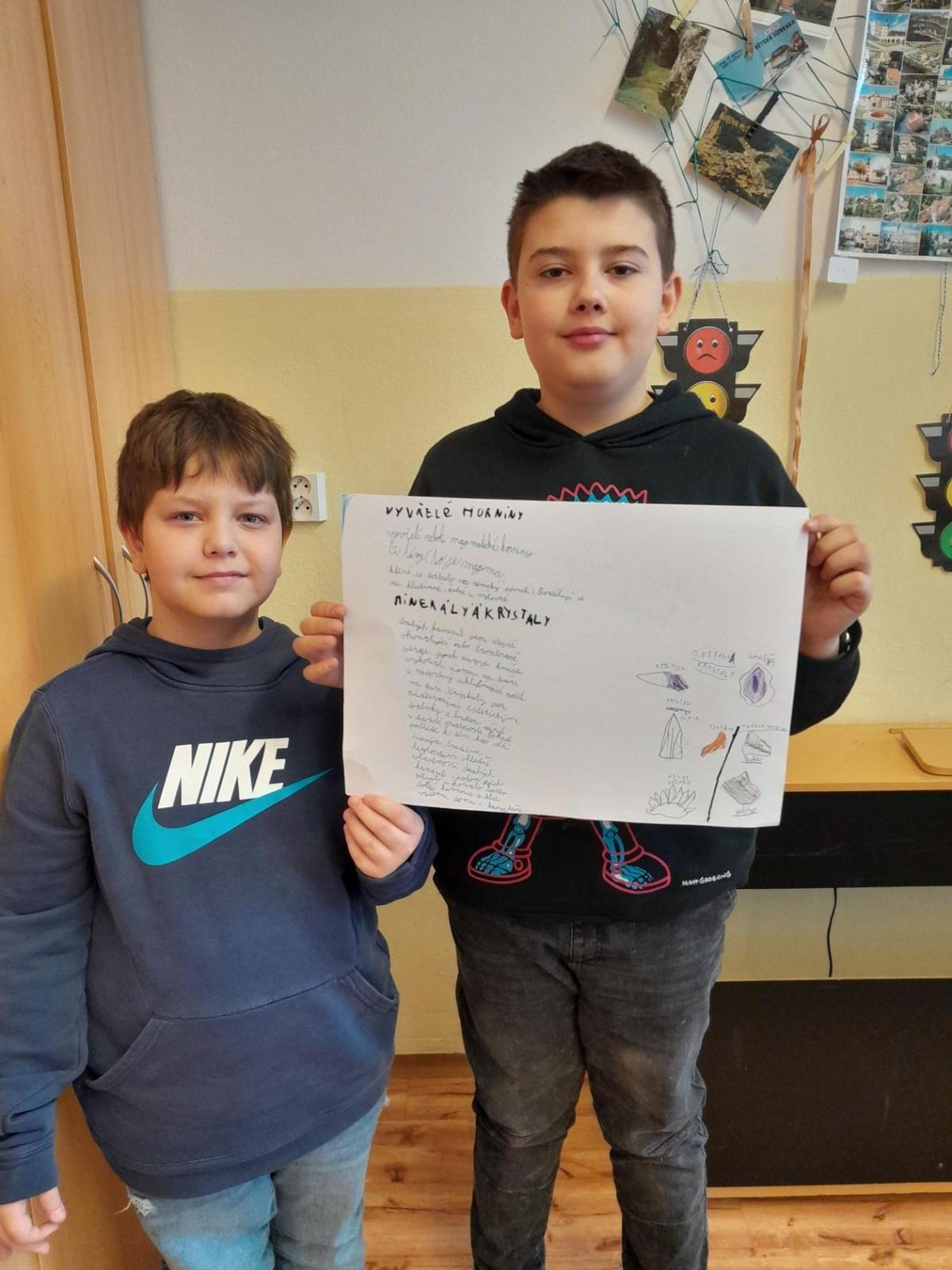 Tentokrát jsme k učení využili i techniku a děti ve dvojicích tvořily projekt na téma minerály a horniny. Různé informace a obrázky si vyhledávaly na počítači a vše měly za úkol zpracovat na papír. Svoji práci nakonec prezentovaly ostatním spolužákům.