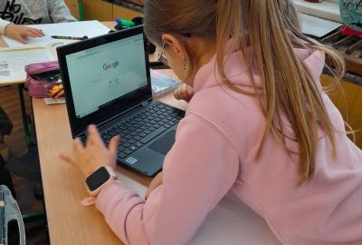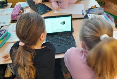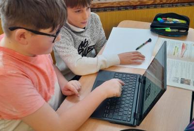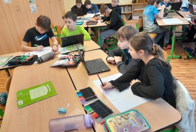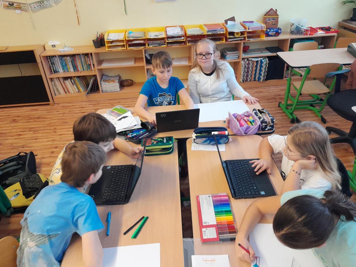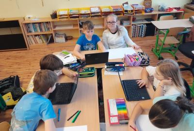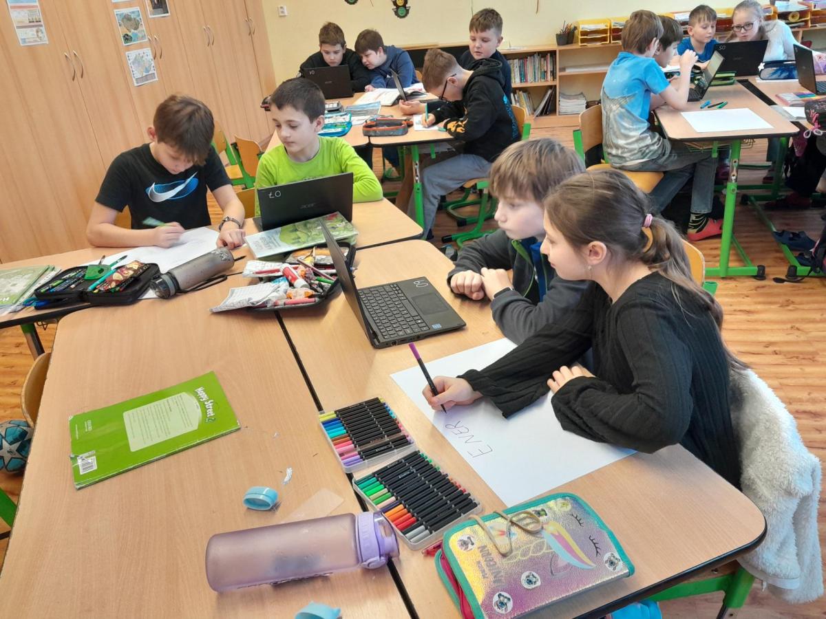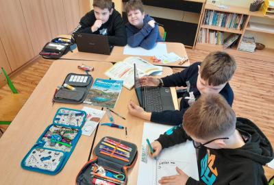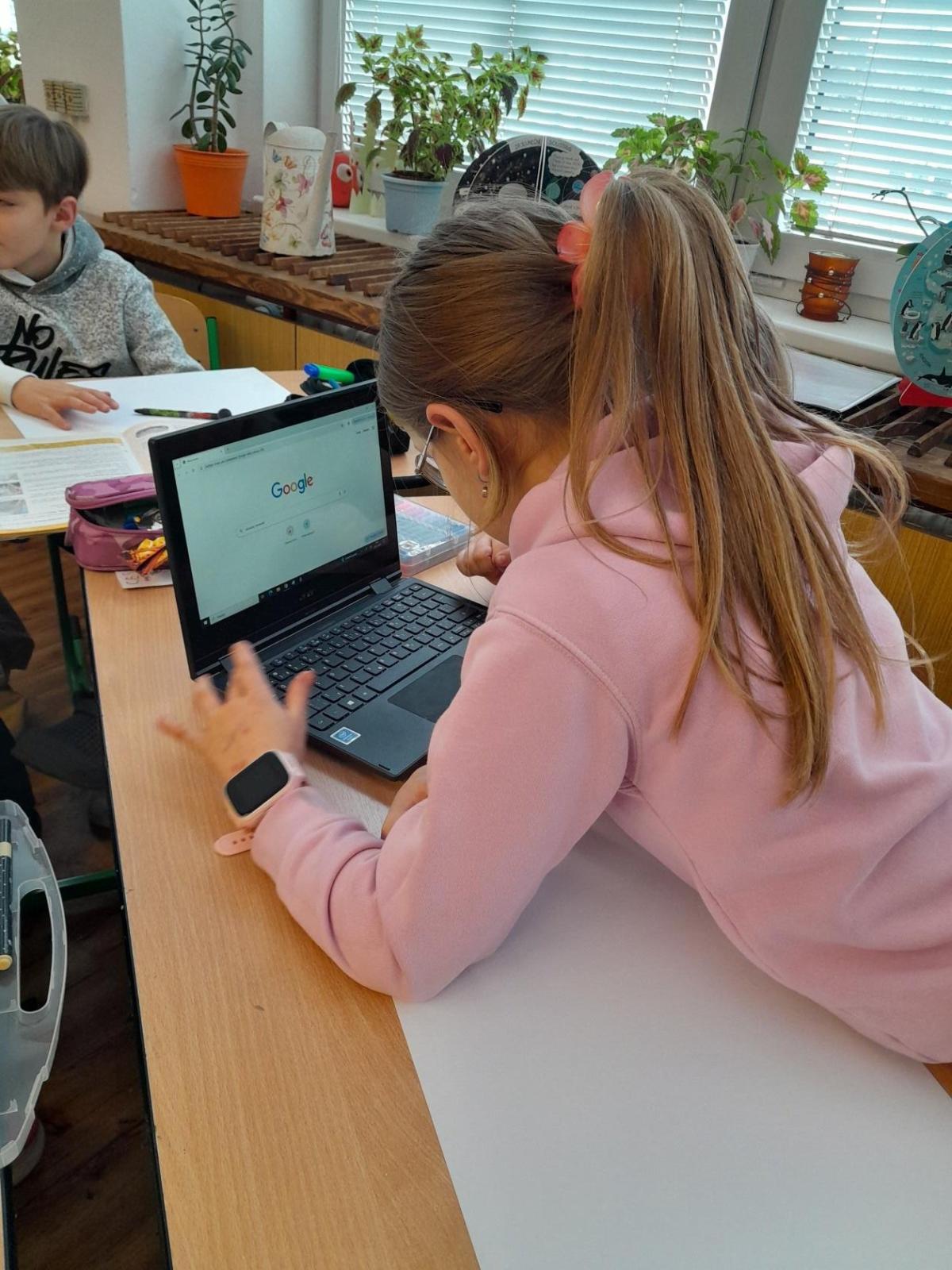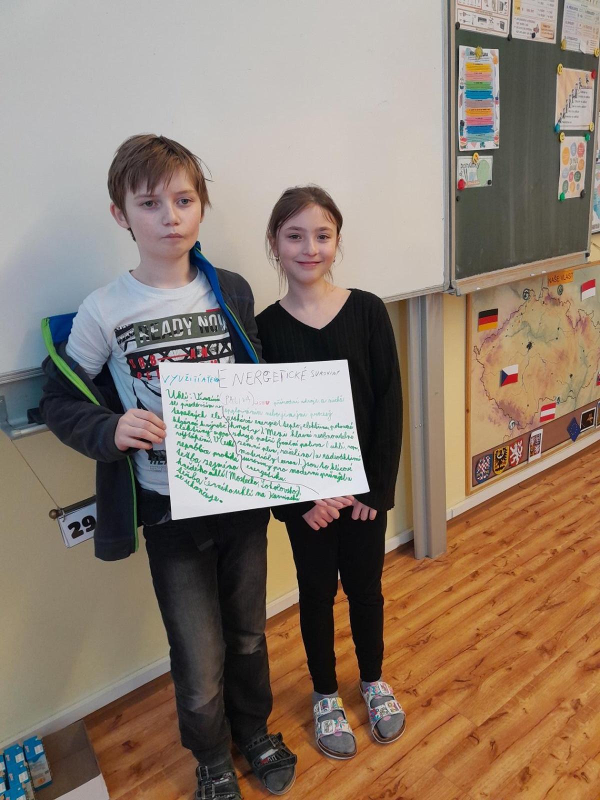 Tentokrát jsme k učení využili i techniku a děti ve dvojicích tvořily projekt na téma minerály a horniny. Různé informace a obrázky si vyhledávaly na počítači a vše měly za úkol zpracovat na papír. Svoji práci nakonec prezentovaly ostatním spolužákům.