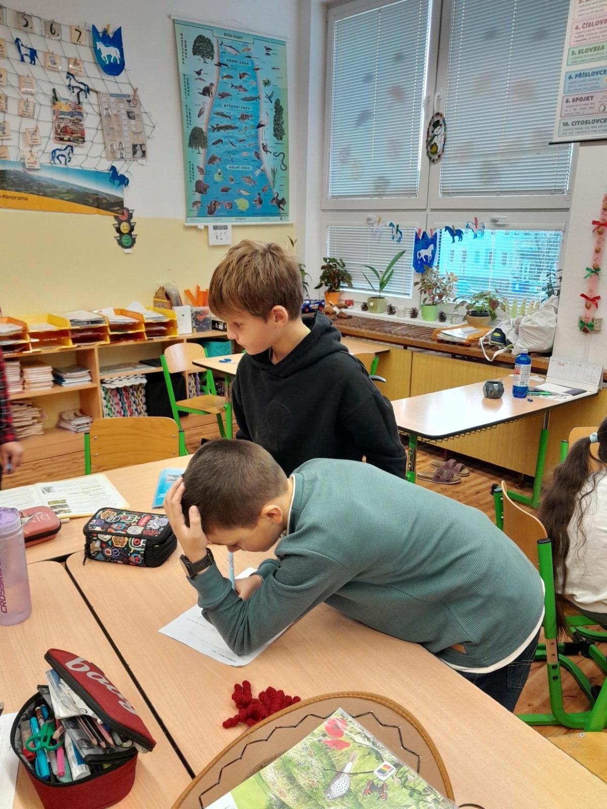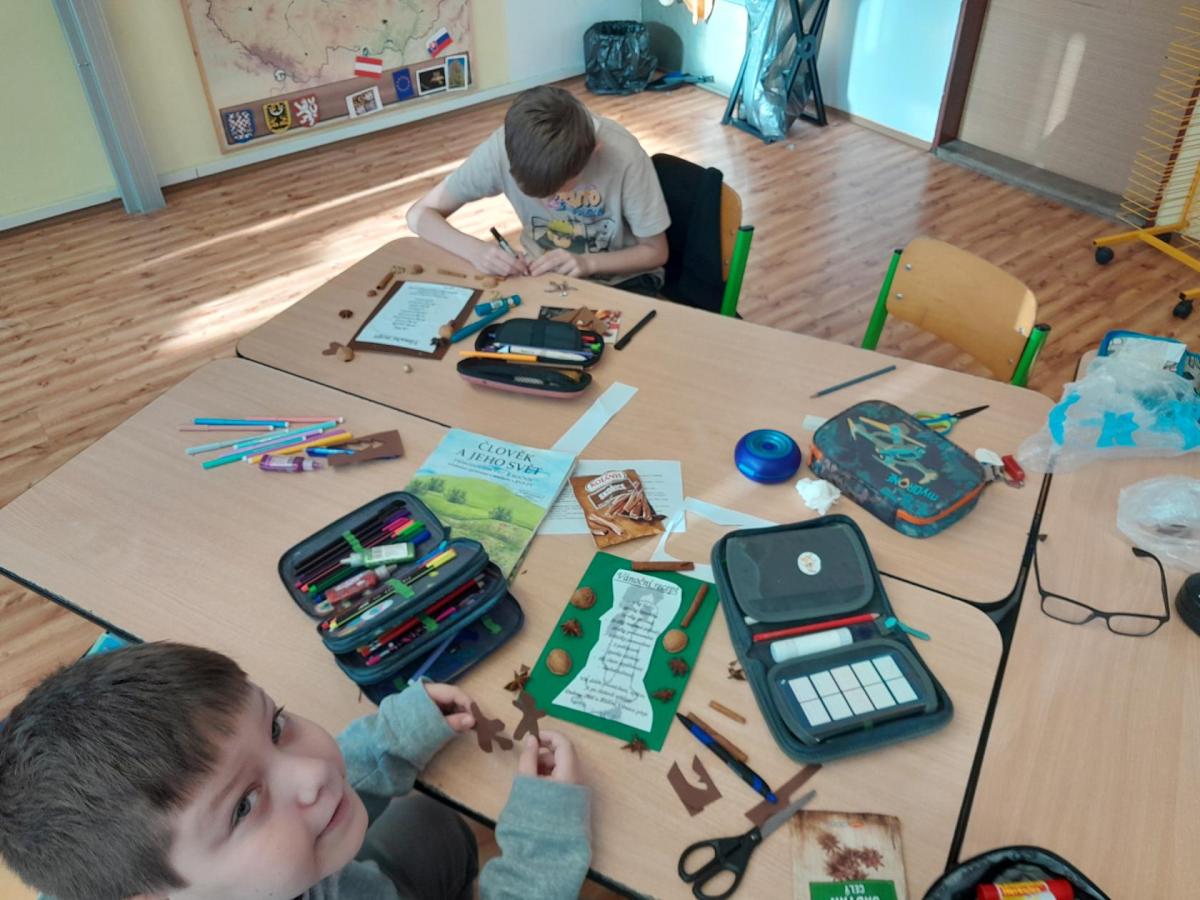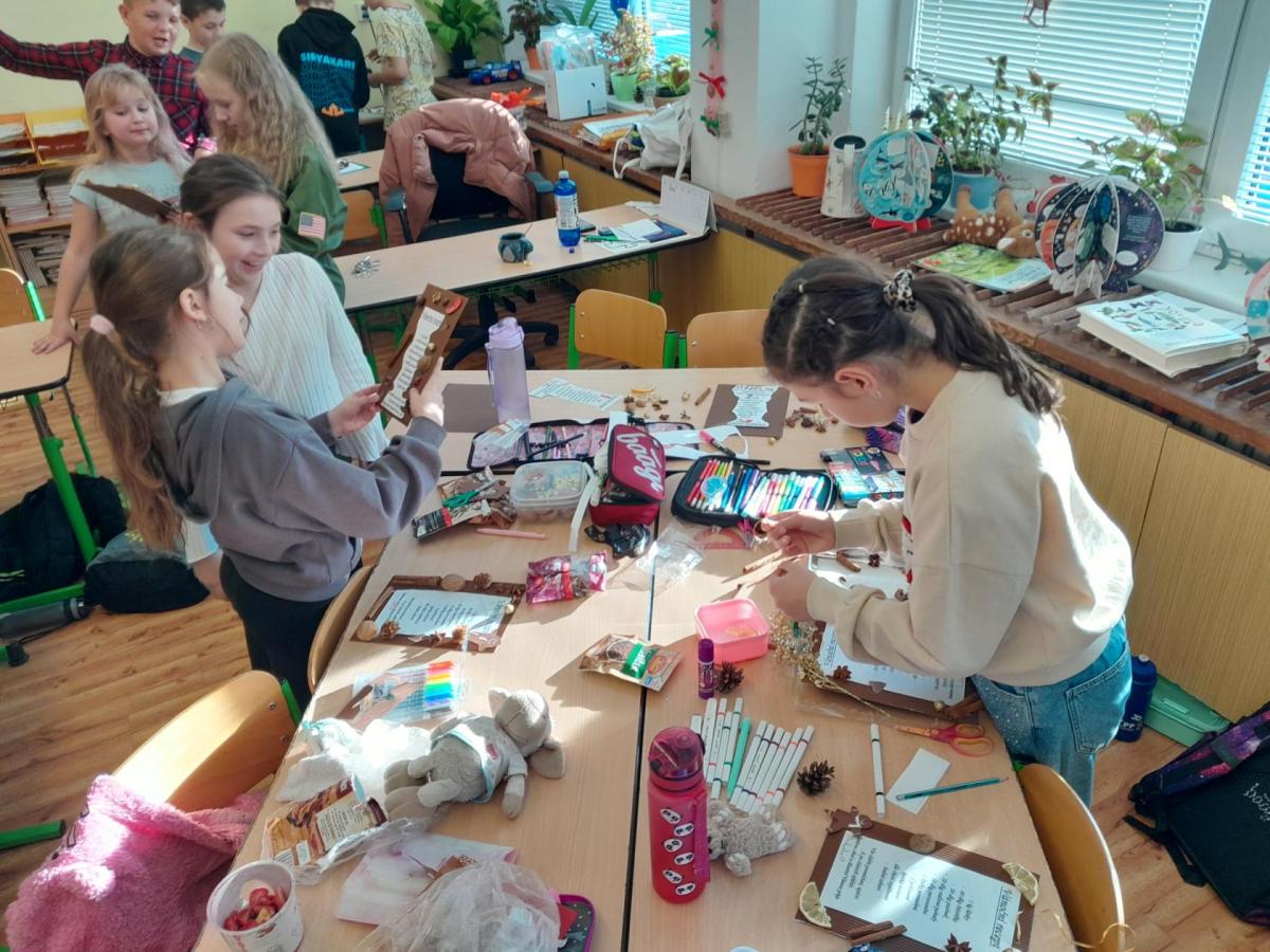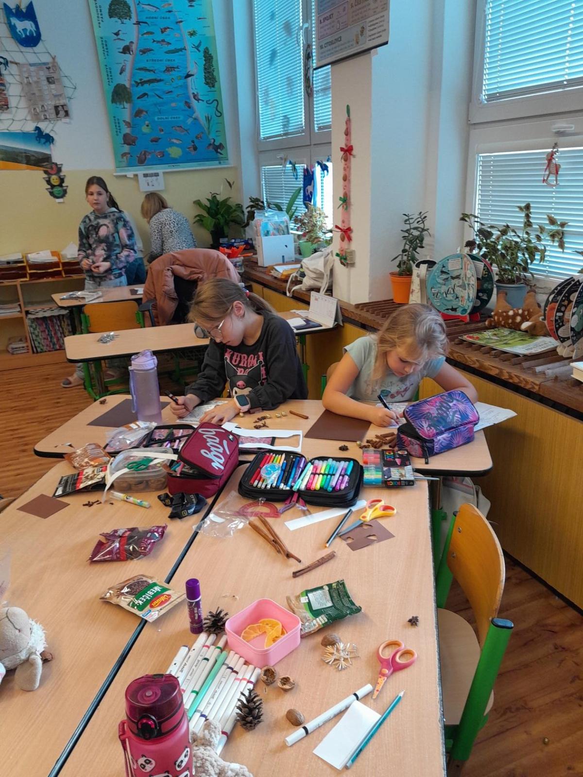 Ve dvojicích luštili křížovku, kde bylo zapotřebí dohledat si informace ve třídě a různých ecyklopediích. Na chodbě byl pro ně připravený kvíz, kde si navzájem pomáhali a také jsme tvořili, jelikož se nám přiblížil adventní čas.