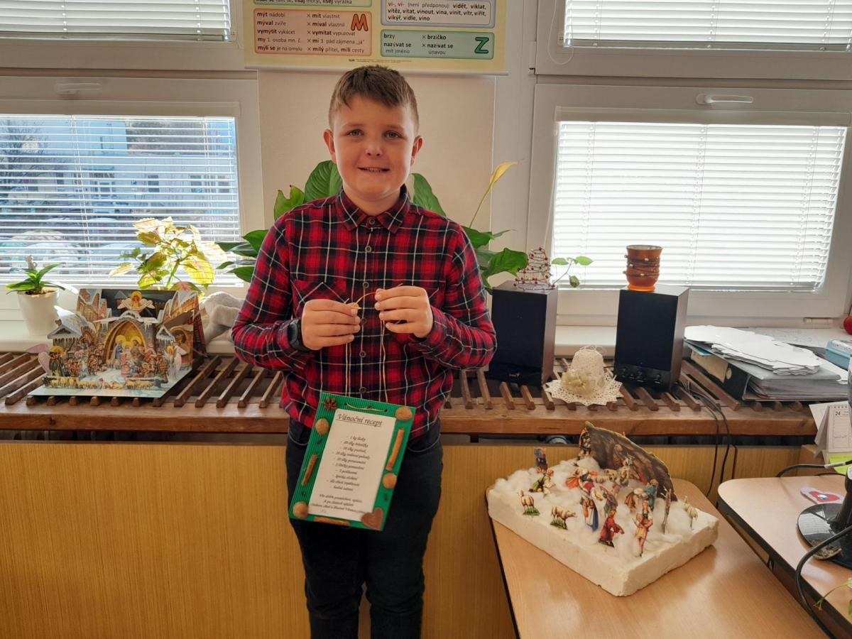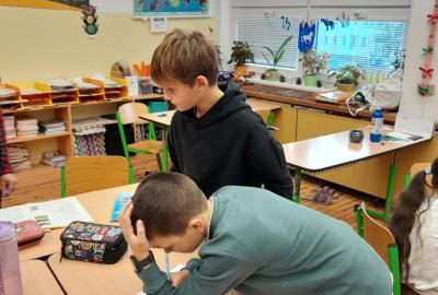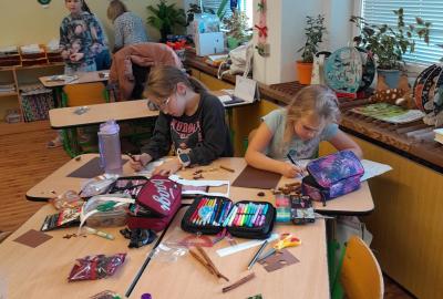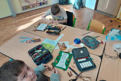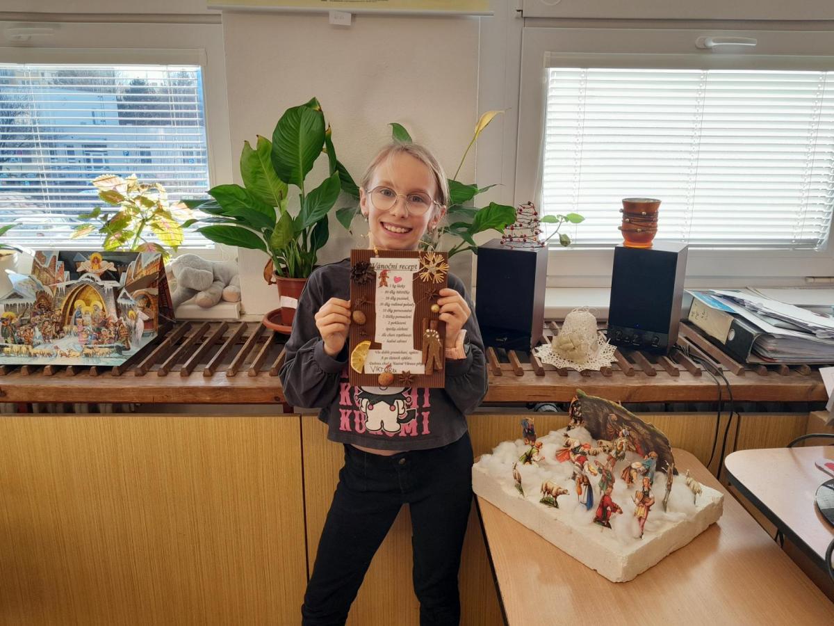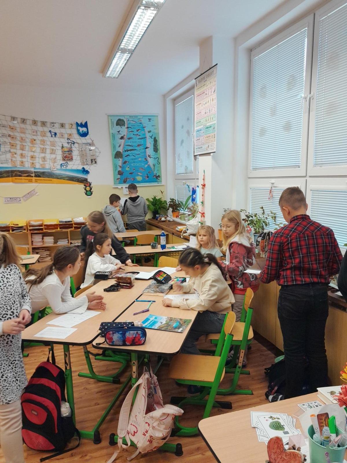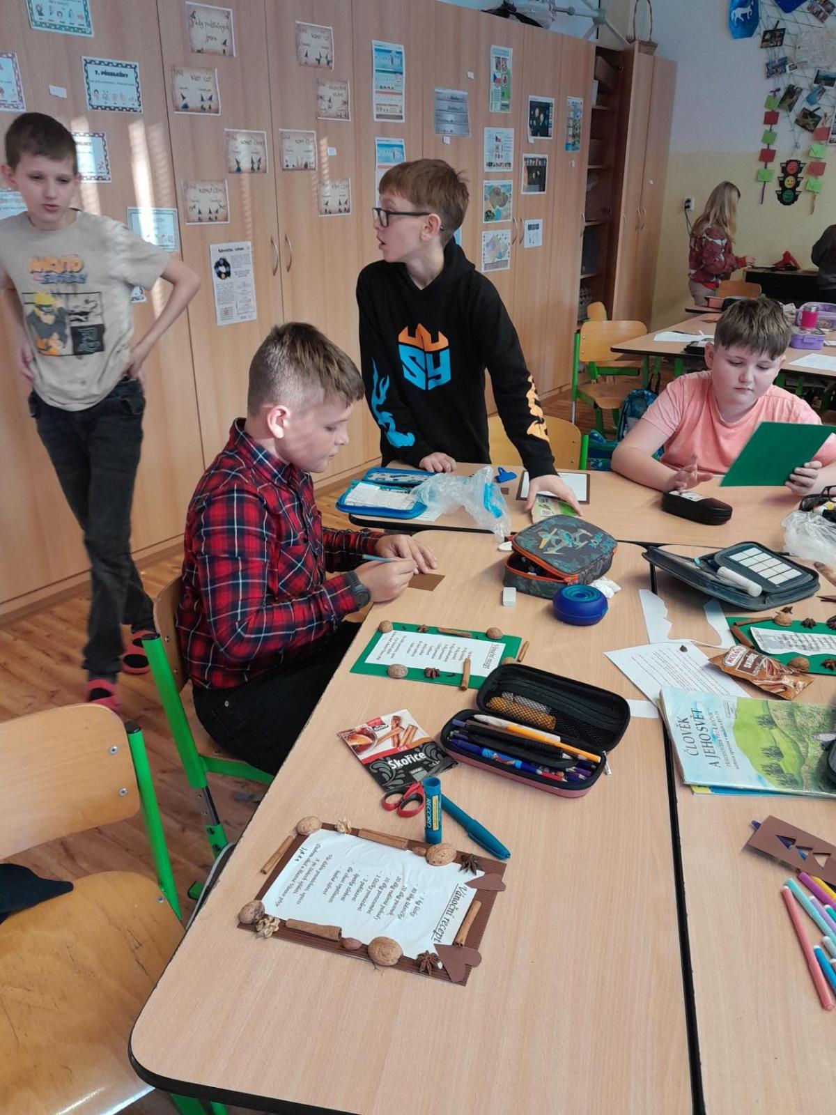 Ve dvojicích luštili křížovku, kde bylo zapotřebí dohledat si informace ve třídě a různých ecyklopediích. Na chodbě byl pro ně připravený kvíz, kde si navzájem pomáhali a také jsme tvořili, jelikož se nám přiblížil adventní čas.
