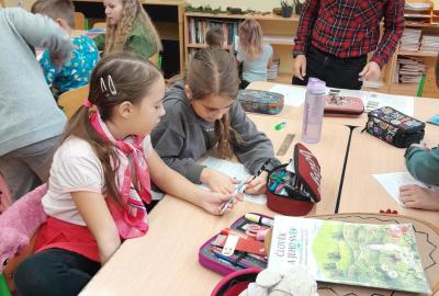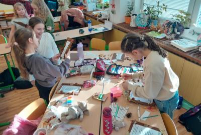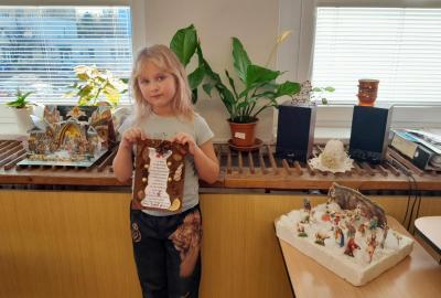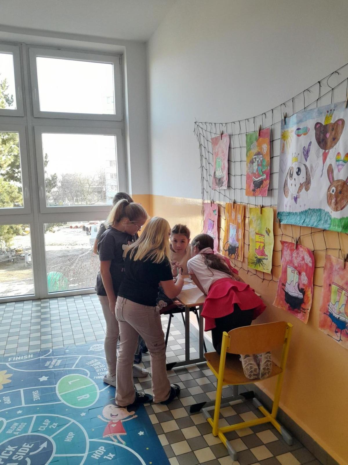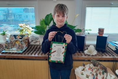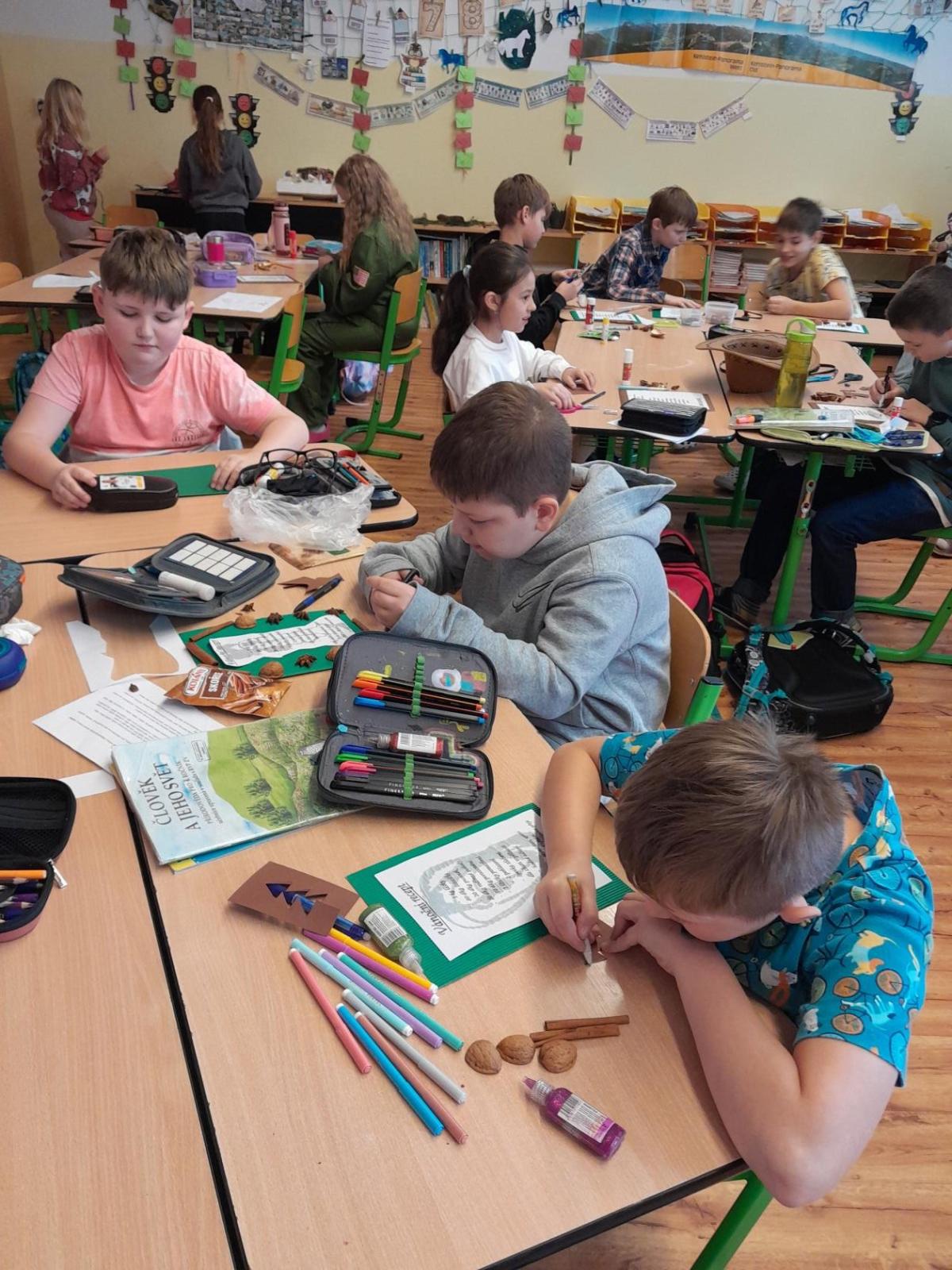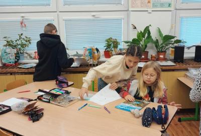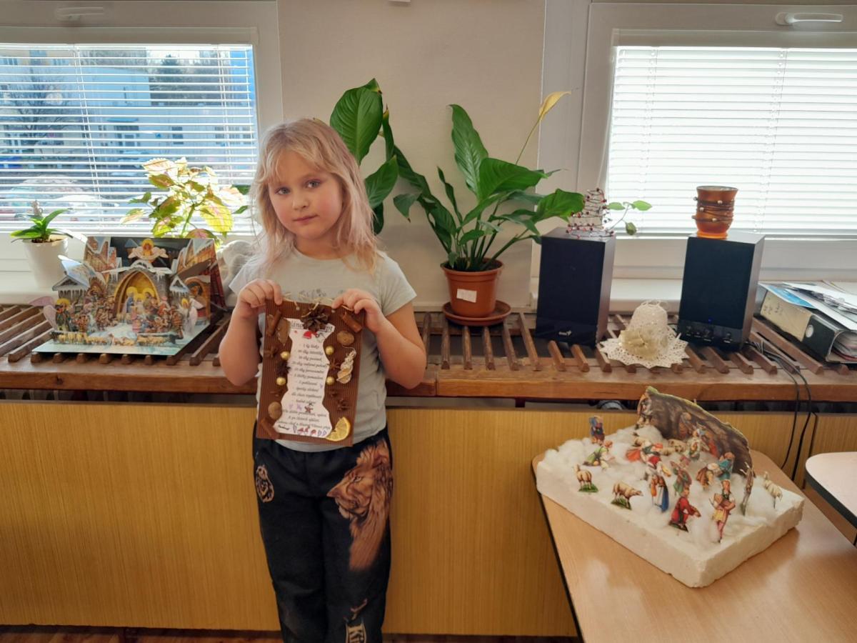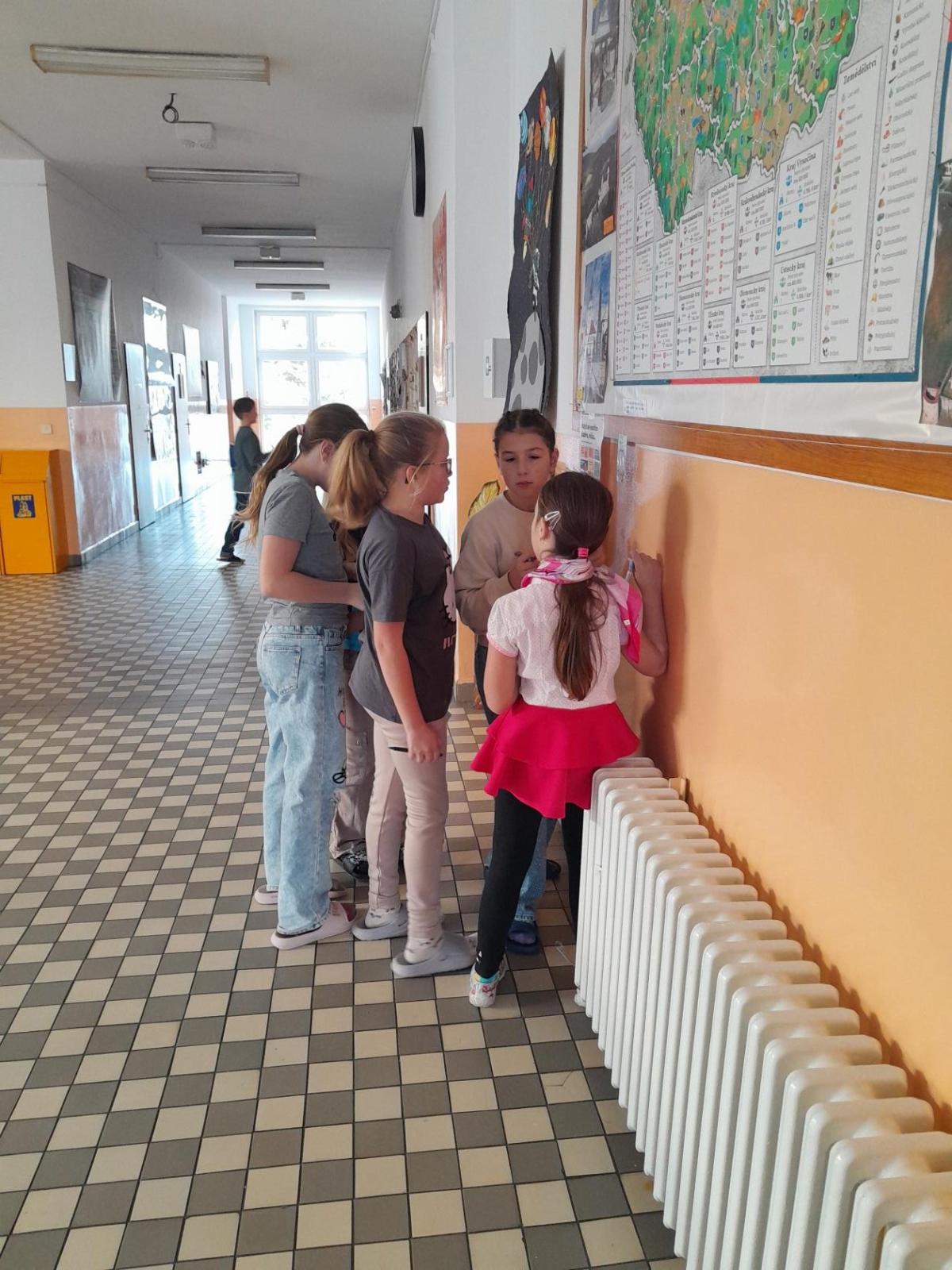 Ve dvojicích luštili křížovku, kde bylo zapotřebí dohledat si informace ve třídě a různých ecyklopediích. Na chodbě byl pro ně připravený kvíz, kde si navzájem pomáhali a také jsme tvořili, jelikož se nám přiblížil adventní čas.