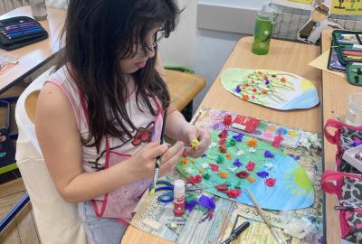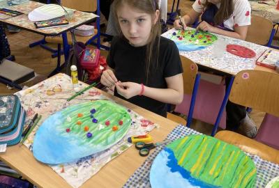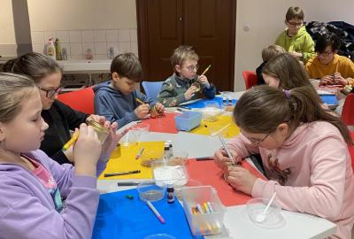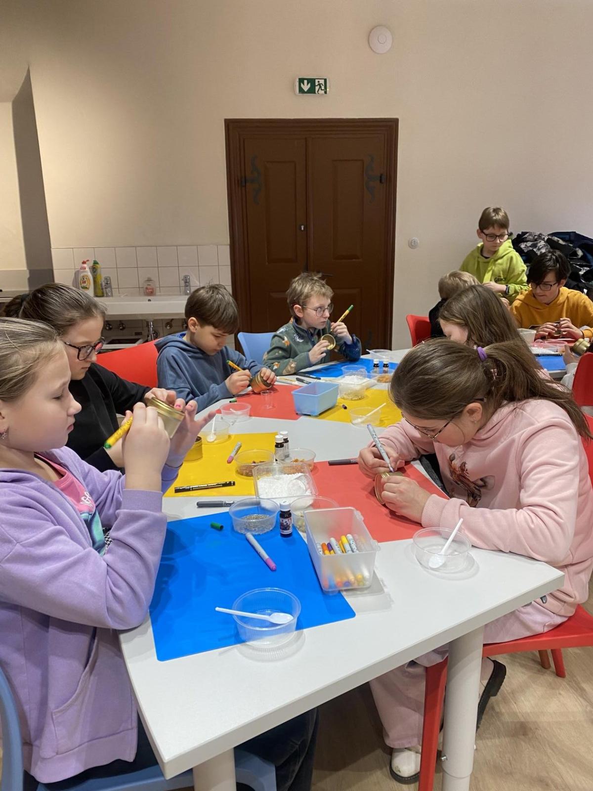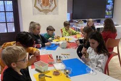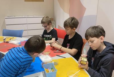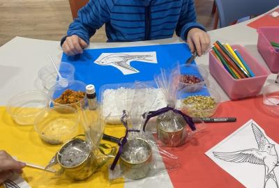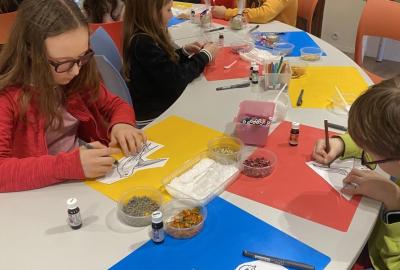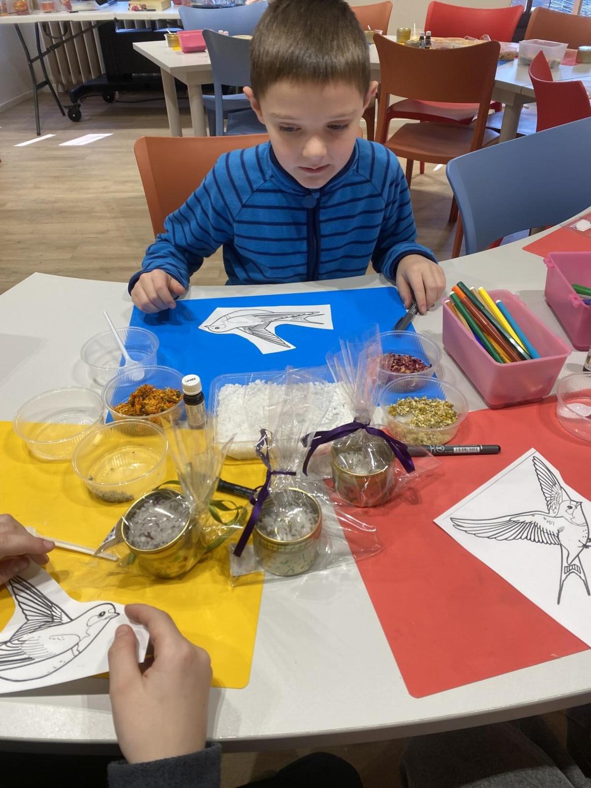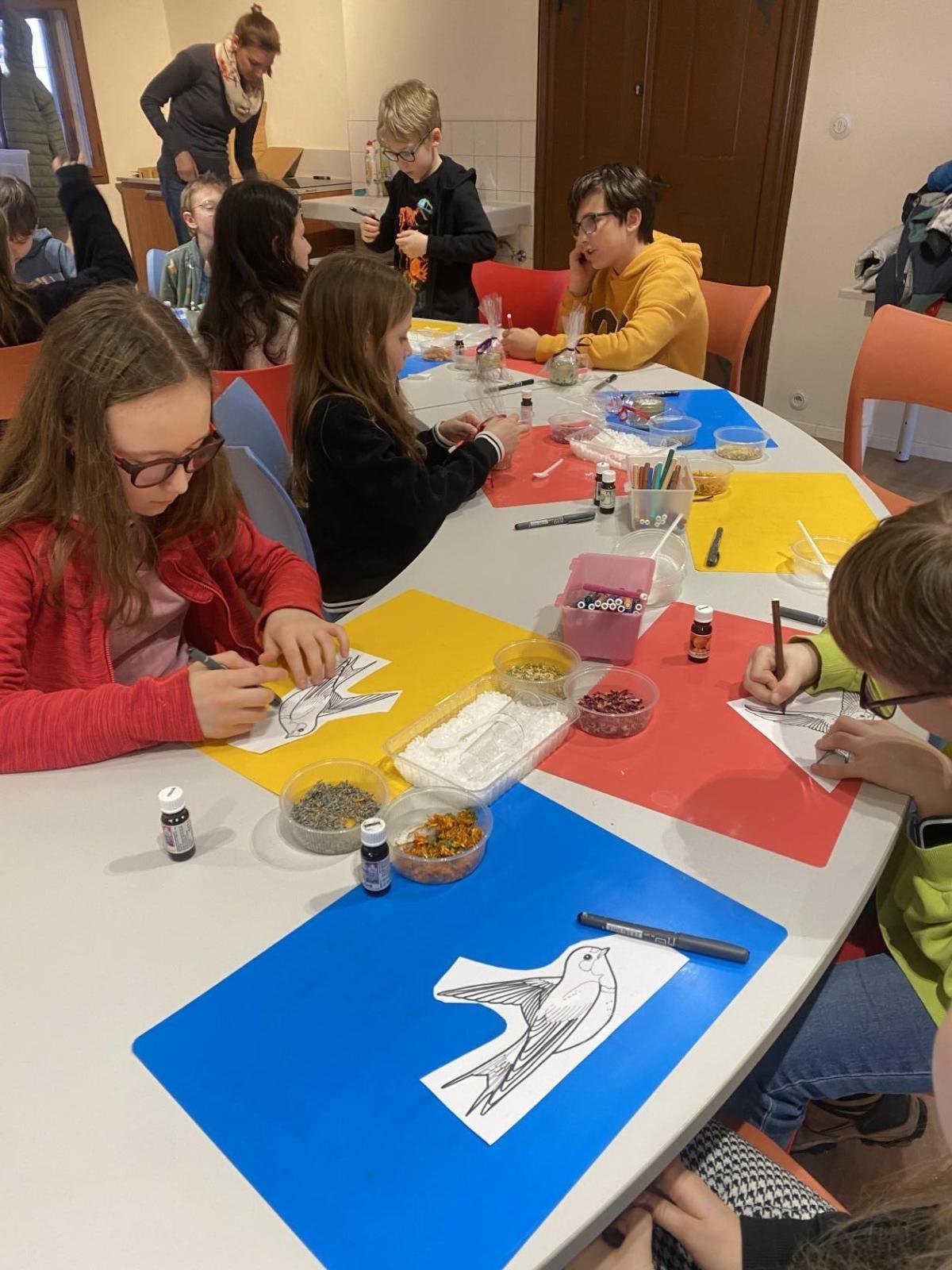 Navštívili jsme jarní výstavu s velikonoční tematikou. Během programu jsme si vyrobili koupelovou sůl s bylinkami a také si vybarvili vystřihovánku vlaštovky.