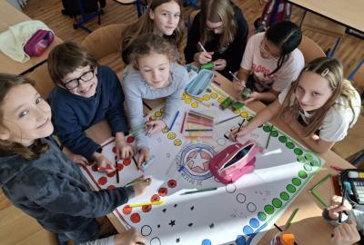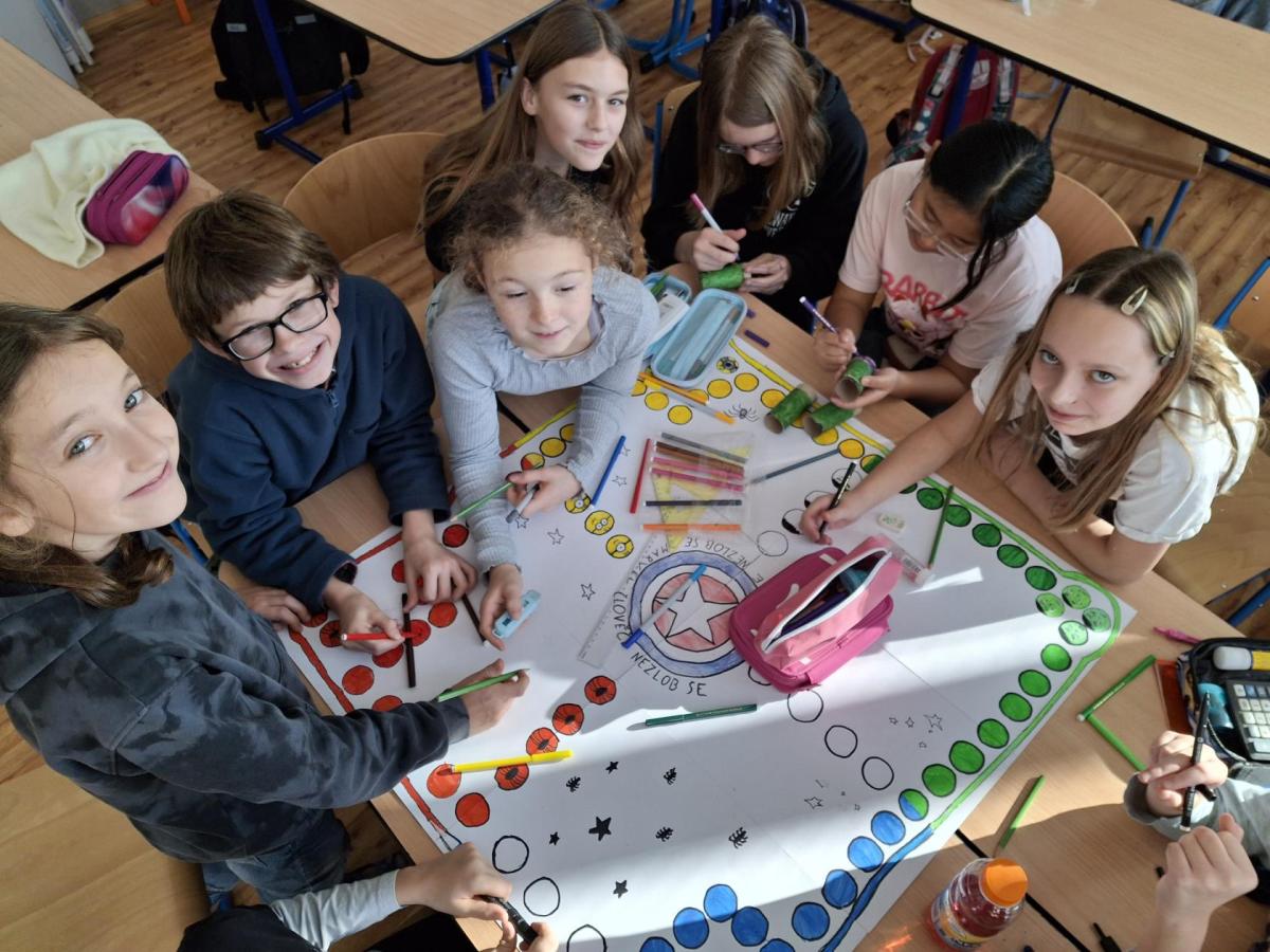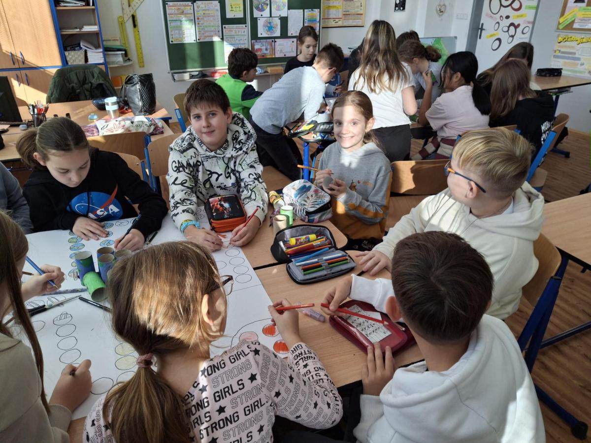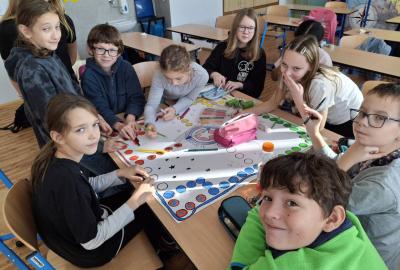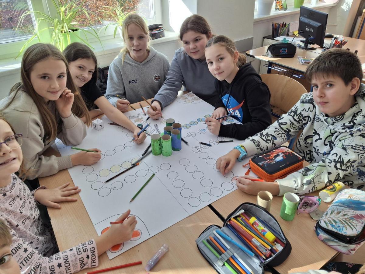 Při hodině pracovních činností si děti vyrábějí ve dvou skupinách stolní hru. Společně se tak učí spolupráci, respektu a fungování jako tým...