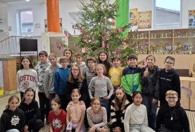 Nemá světýlka a skleněné ozdoby, ale růžové kartičky. Kartičky pověsili žáci naší školy a na nich slovně vyjádřili, za co jsou v životě vděční. I my jsme zavěsili svoje kartičky a pokusili jsme se vyjádřit to, co je v našem životě nejdůležitější.... .