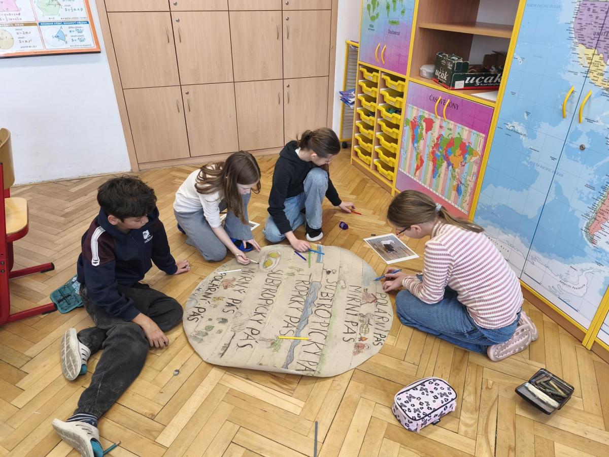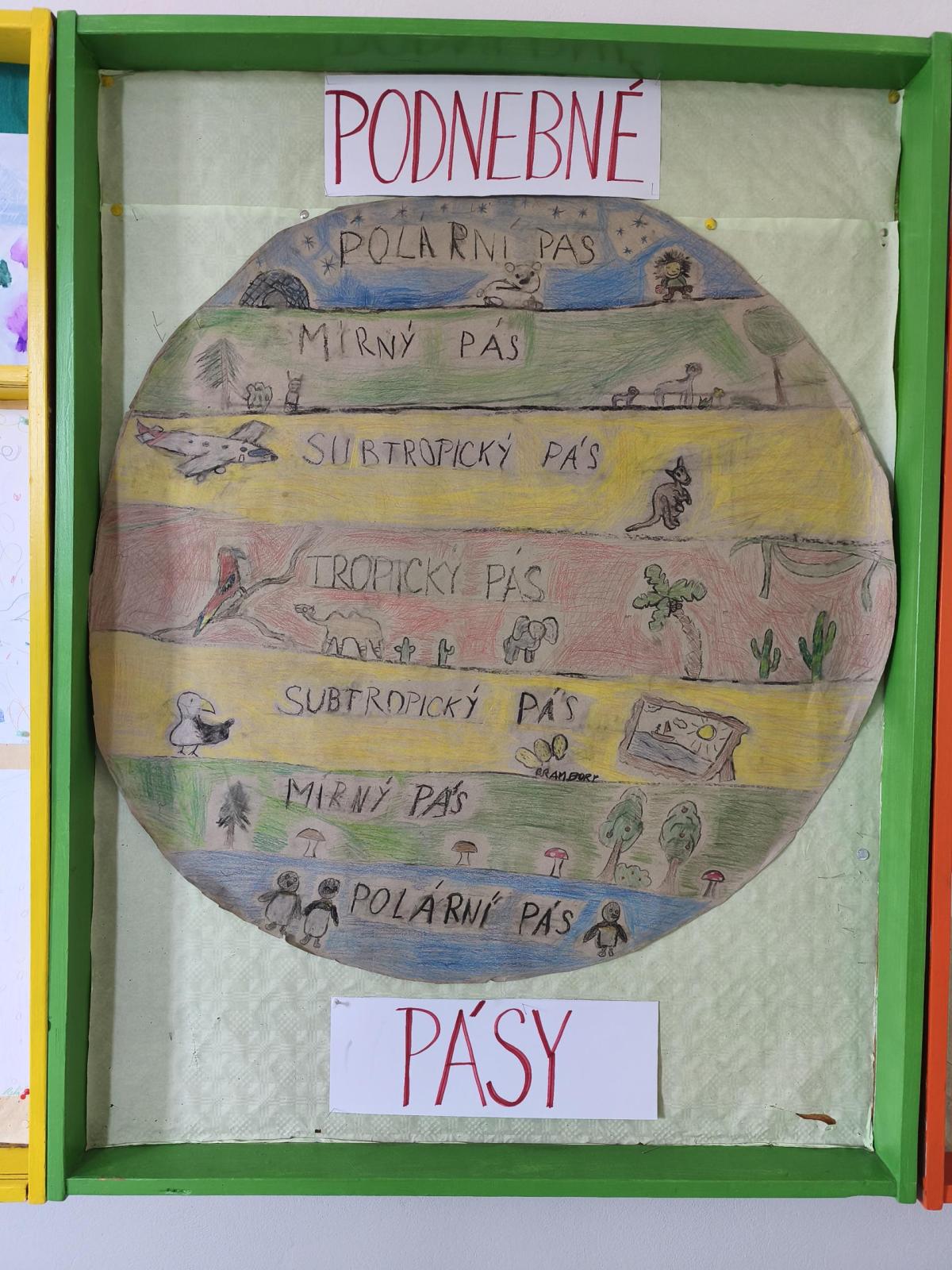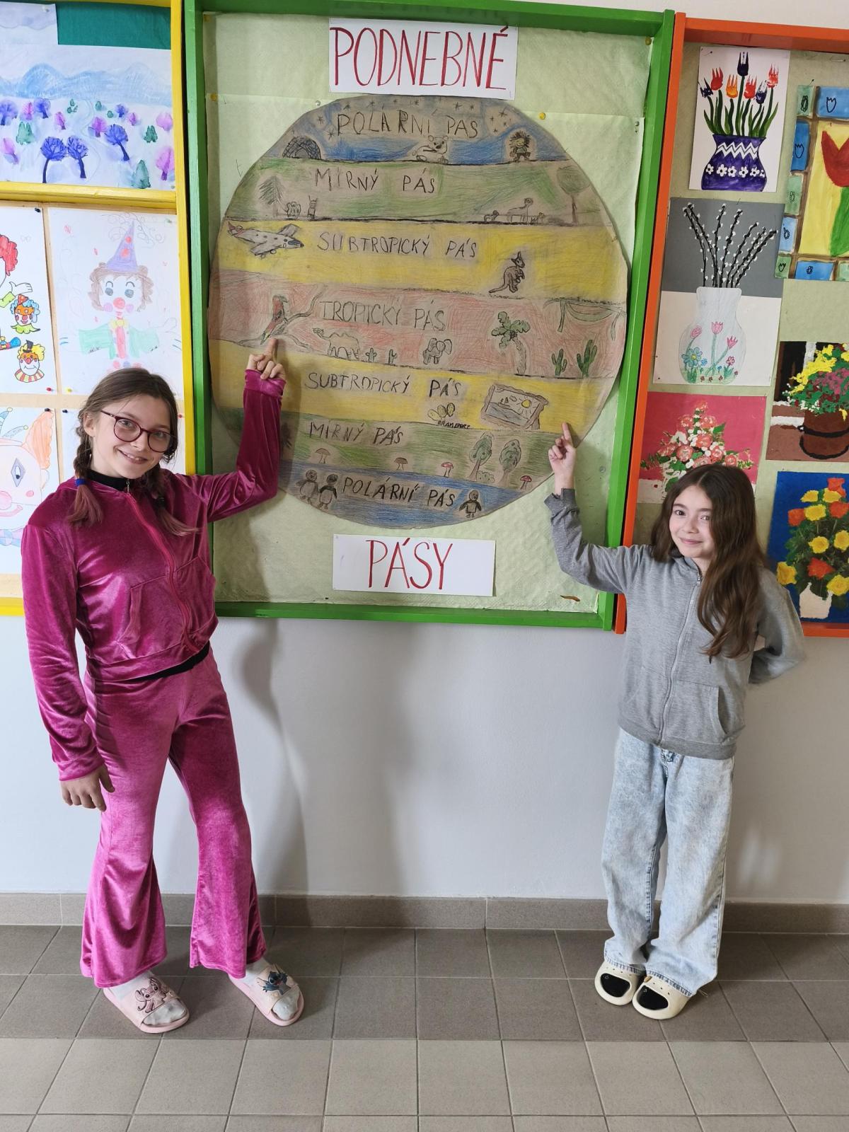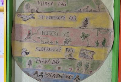 V přírodovědě jsme probírali téma Podnebné pásy. Zaujalo nás natolik, že jsme se rozhodli vyrobit si vlastní učební pomůcku. Pracovali jsme ve skupinách. Opakovací test díky tomu dopadl výborně. Svými výtvory jsme ozdobili naši třídu i nástěnku na chodbě...